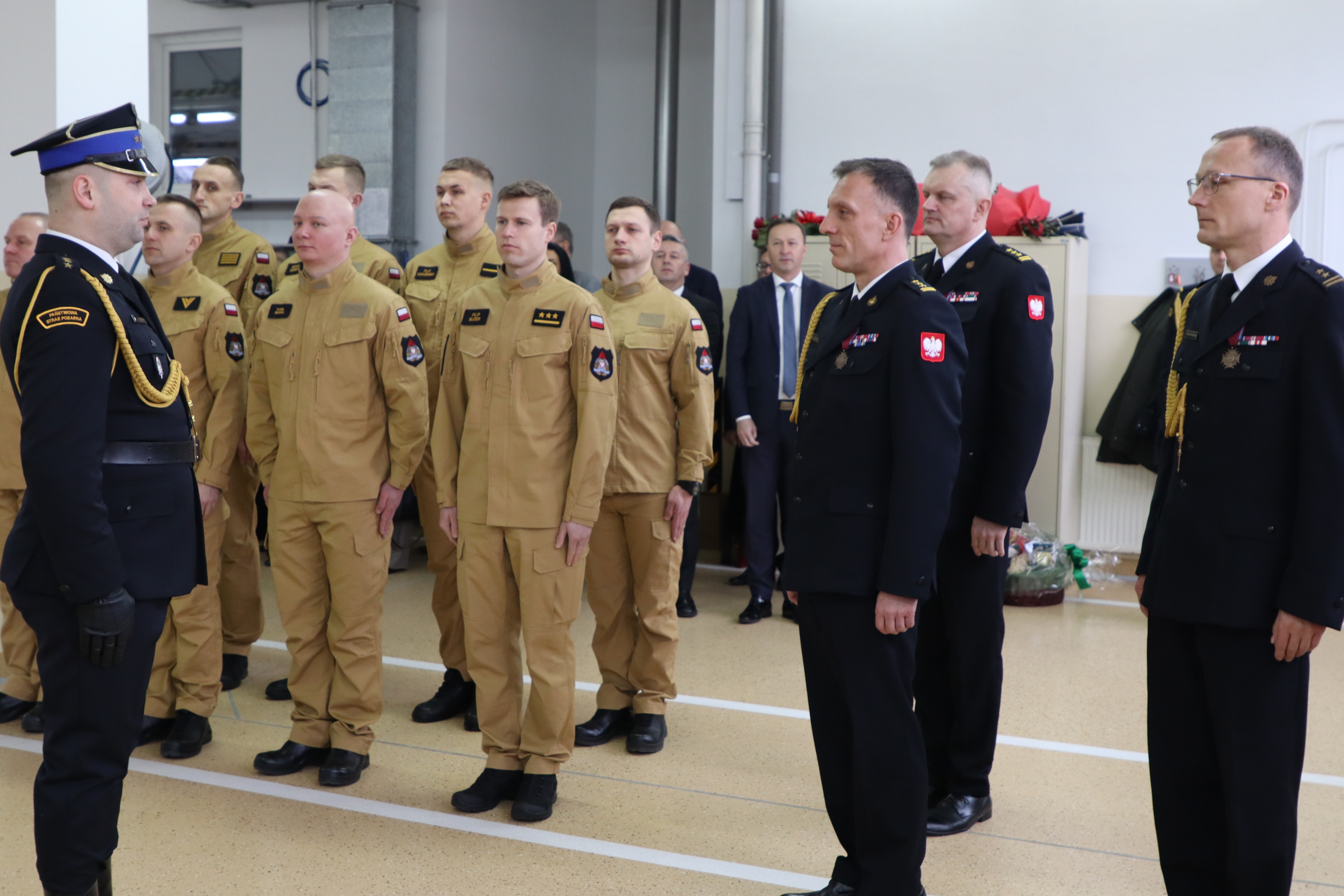 zapewniając o utrzymaniu wysokiego poziomu realizacji zadań oraz kontynuowania dotychczasowych standardów służby. Od przybyłych gości, otrzymał liczne wyrazy wsparcia oraz życzenia owocnej współpracy i wielu sukcesów. Na zakończenie st. bryg. Marcinowi Sokołowi wręczono pamiątkowy upominek w postaci szabli oraz kwiatów.