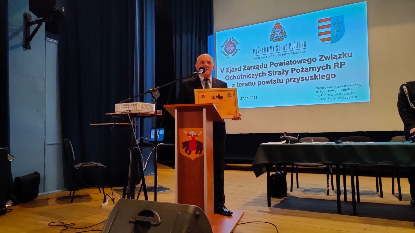 W dniu 27 listopada 2021 r. w Domu Kultury w Przysusze odbył się V Zjazd Zarządu Oddziału Powiatowego ZOSP RP w Przysusze. Zjazd rozpoczął się uroczystym odtworzeniem Hymnu Związku OSP RP. Spotkanie było doskonałą okazją do podsumowania działalności zarządu za okres 2016-2020.