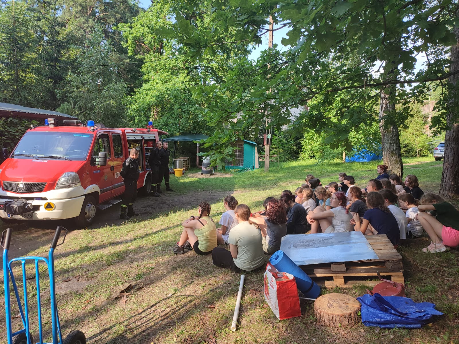 Wizyta strażaków z Komendy Powiatowej PSP w Przysusze w obozie harcerskim