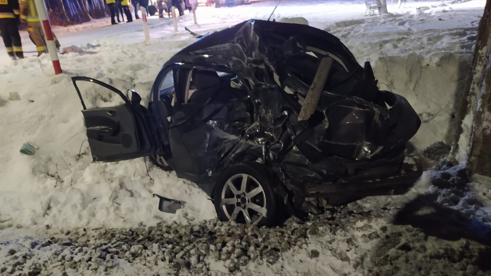 Po dojeździe na miejsce pierwszych zastępów JOP zastano samochód osobowy znajdujący się w rowie, dwie osoby poszkodowane znajdują się w odległości kilku metrów poza pojazdem, pierwsza poniosła smierć na miejscu, u drugiej pomimo wdrożonej resuscytacji krążeniowo oddechowej, przybyły na miejsce lekarz stwierdził zgon.