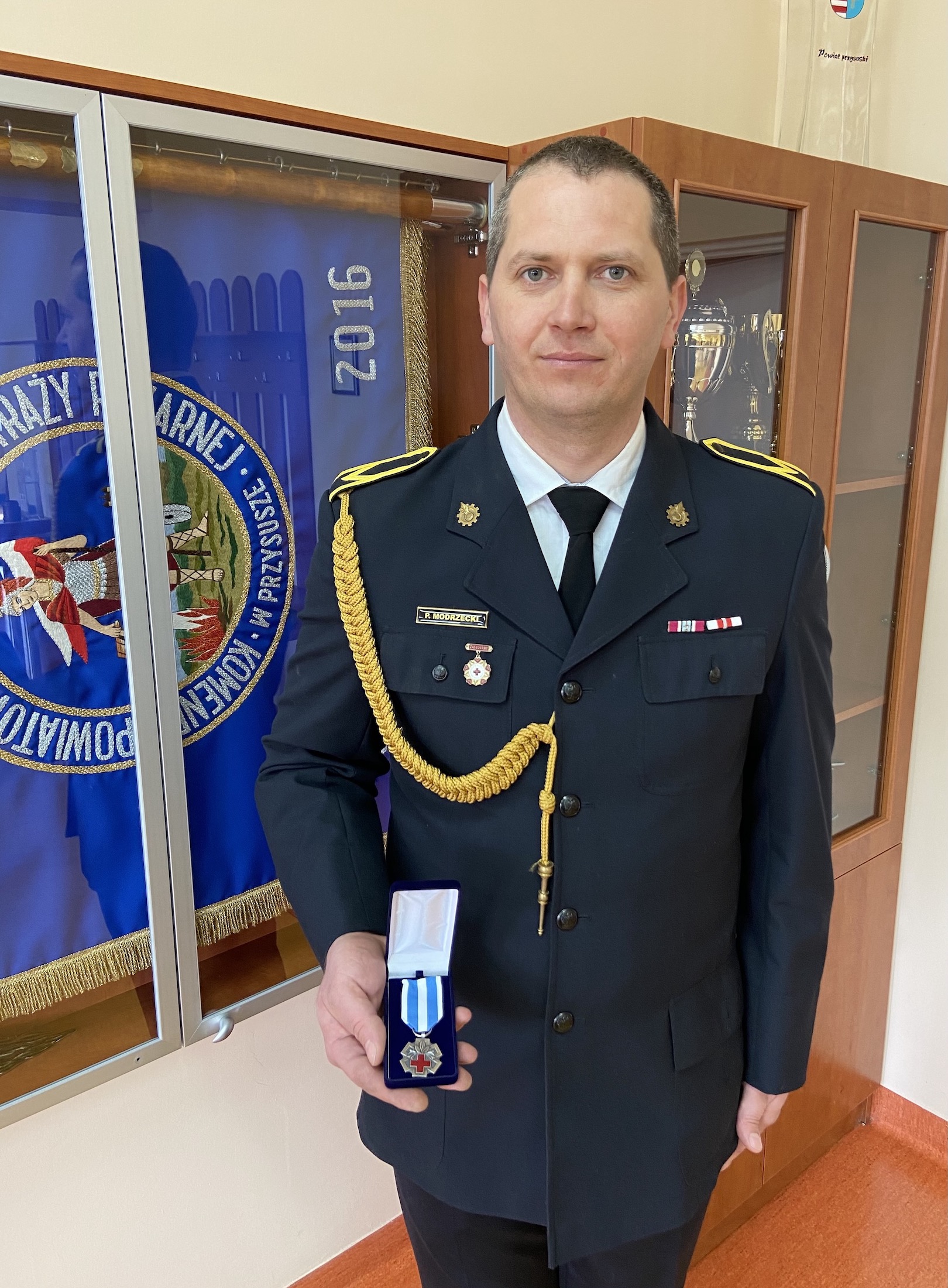 We wtorek 9 marca ogn. Piotr Modrzecki uhonorowany został ministerialnym orderem „Honorowego Dawcy Krwi – Zasłużony dla Zdrowia Narodu”. To niezwykle ważne i prestiżowe odznaczenie nadawane honorowym dawcom krwi w uznaniu wybitnych zasług na rzecz ratowania ludzkiego życia i zdrowia oraz aktywnej działalności w ruchu honorowego krwiodawstwa.