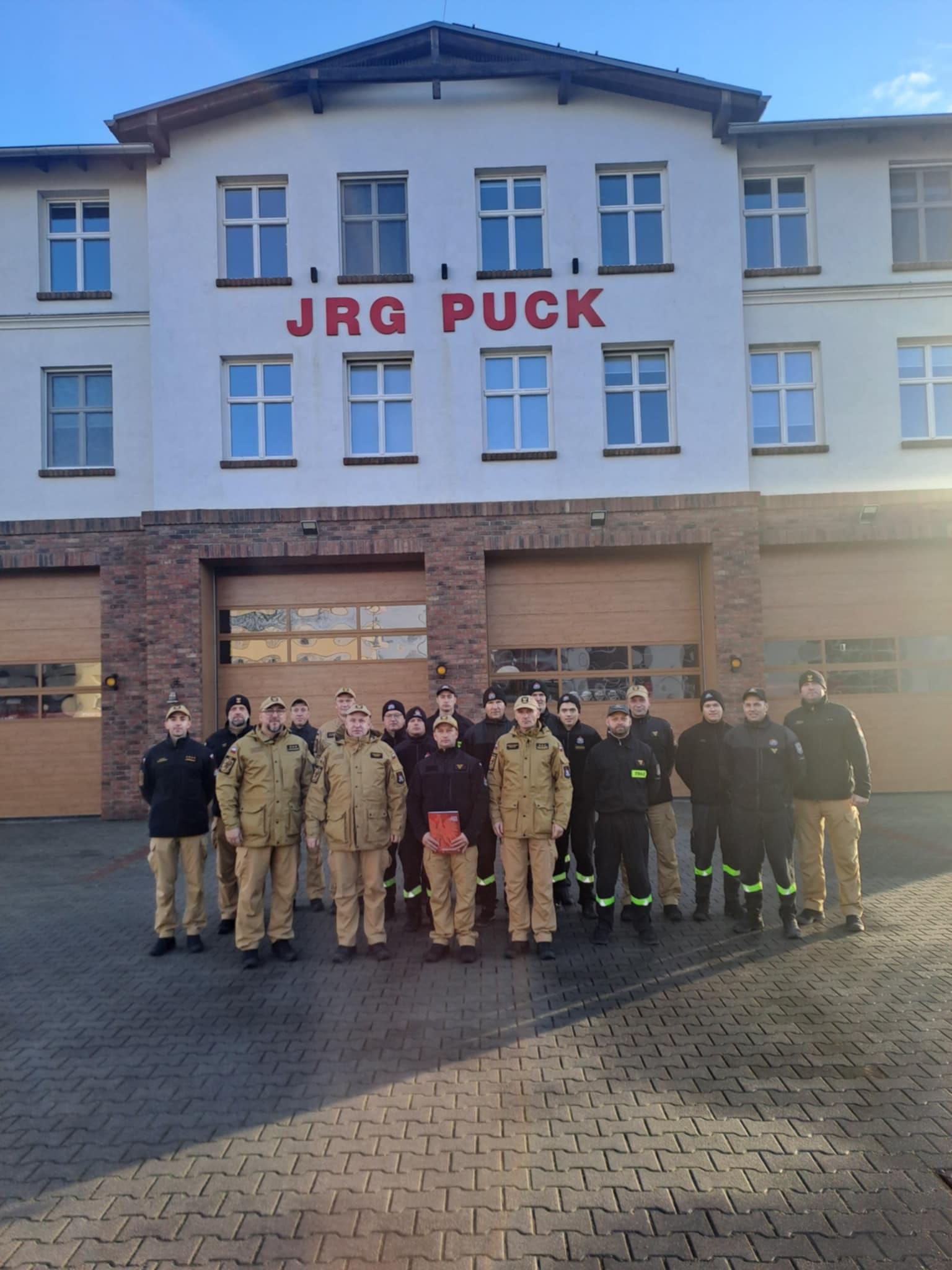 W uroczystości udział wzięli: Zastępca Pomorskiego Komendanta Wojewódzkiego PSP st. bryg. Bartłomiej Mollin, Komendant Powiatowy PSP w Pucku bryg. Wojciech Wanat, Zastępca Komendanta kpt. Krzysztof Minga, dowódca Jednostki Ratowniczo-Gaśniczej st. kpt. Maciej Humanowski, zastępca dowódcy JRG st. asp. Adam Liss oraz funkcjonariusze z Jednostki Ratowniczo-Gaśniczej.