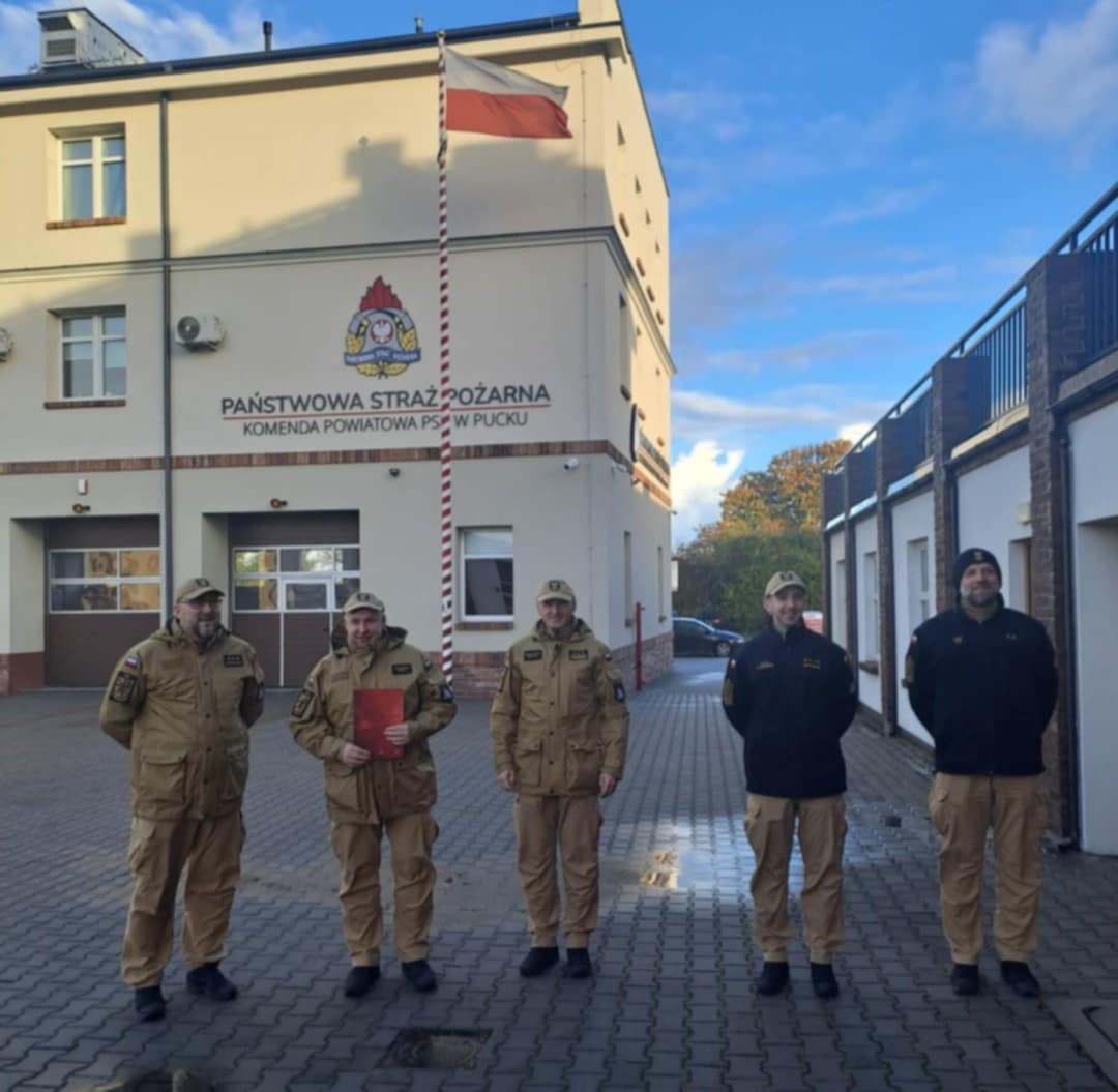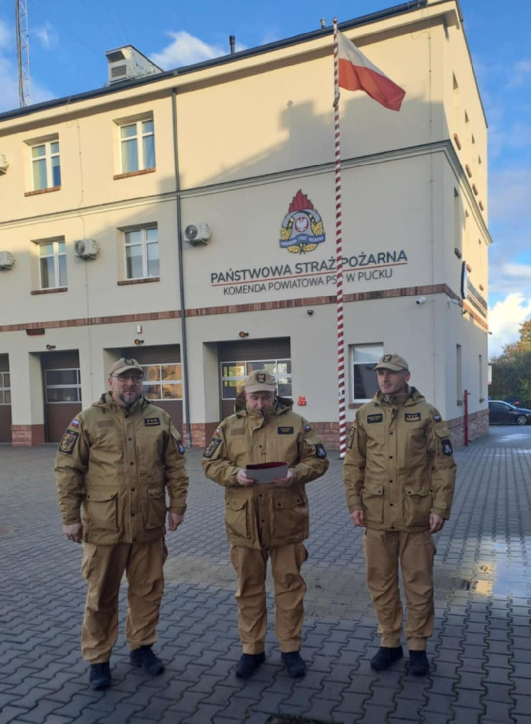 28 października 2025 roku, podczas uroczystej zmiany służby w Jednostce Ratowniczo-Gaśniczej w Pucku, starszy ogniomistrz Paweł Myszke otrzymał awans na stanowisko operatora sprzętu.