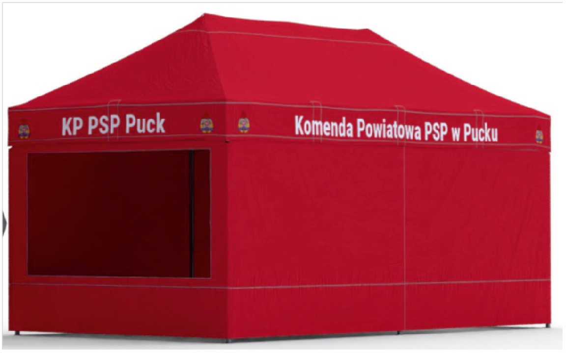• zakup 2 namiotów na potrzeby przeprowadzenia uroczystości wręczenia sztandaru Komendzie Powiatowej PSP w Pucku oraz prowadzenia działalności prewencyjnej w zakresie ochrony ppoż.;