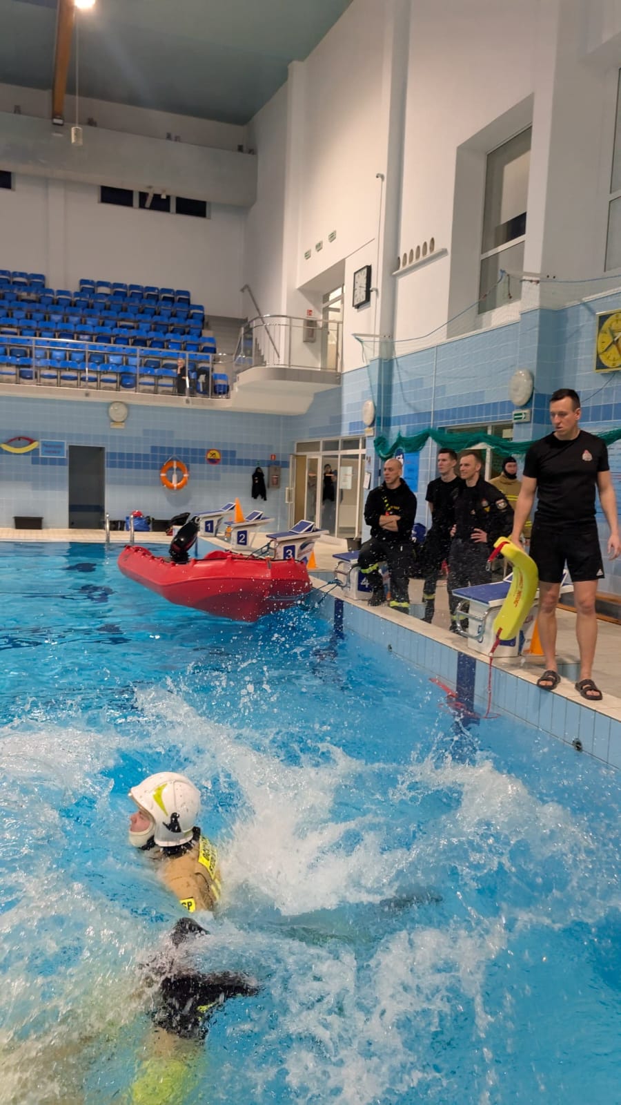 Głównym celem przedsięwzięcia było zweryfikowanie reakcji strażaka wyposażonego w Środki Ochrony Indywidualnej w sytuacji, gdy z różnych nieprzewidzianych przyczyn znajdzie się w wodzie. Przeprowadzone ćwiczenia dostarczyły cennych wniosków oraz umożliwiły poszerzenie wiedzy i umiejętności w zakresie działań ratowniczych prowadzonych w tego typu warunkach.