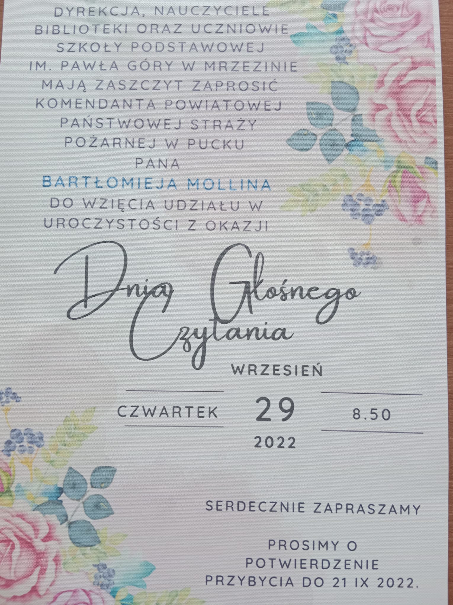 29 września 2022 r. na zaproszenie Dyrektora, nauczycieli, uczniów i biblioteki Szkoły Podstawowej im. Pawła Góry w Mrzezinie zastępca komendanta powiatowego PSP w Pucku mł. bryg. Sławomir Deja uczestniczył w uroczystości Dnia Głośnego Czytania.