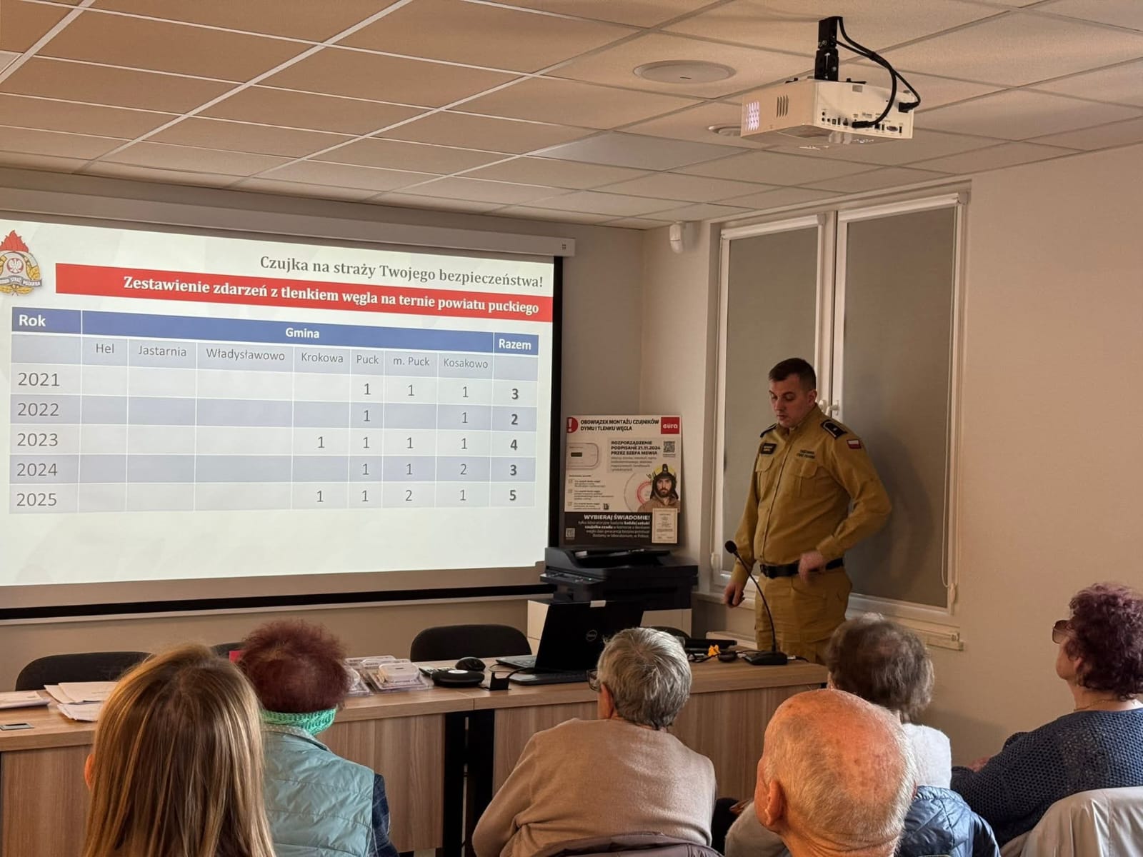 6 listopada 2025 roku w Komendzie Powiatowej Państwowej Straży Pożarnej w Pucku odbyło się spotkanie skierowane do seniorów, mające na celu zwiększenie świadomości w zakresie bezpieczeństwa pożarowego oraz zagrożeń związanych z tlenkiem węgla (czadem).