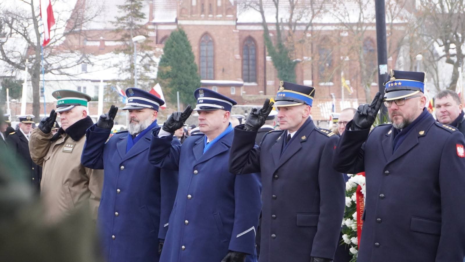 W uroczystościach udział wzięli przedstawiciele służb mundurowych, w tym Państwowej Straży Pożarnej: