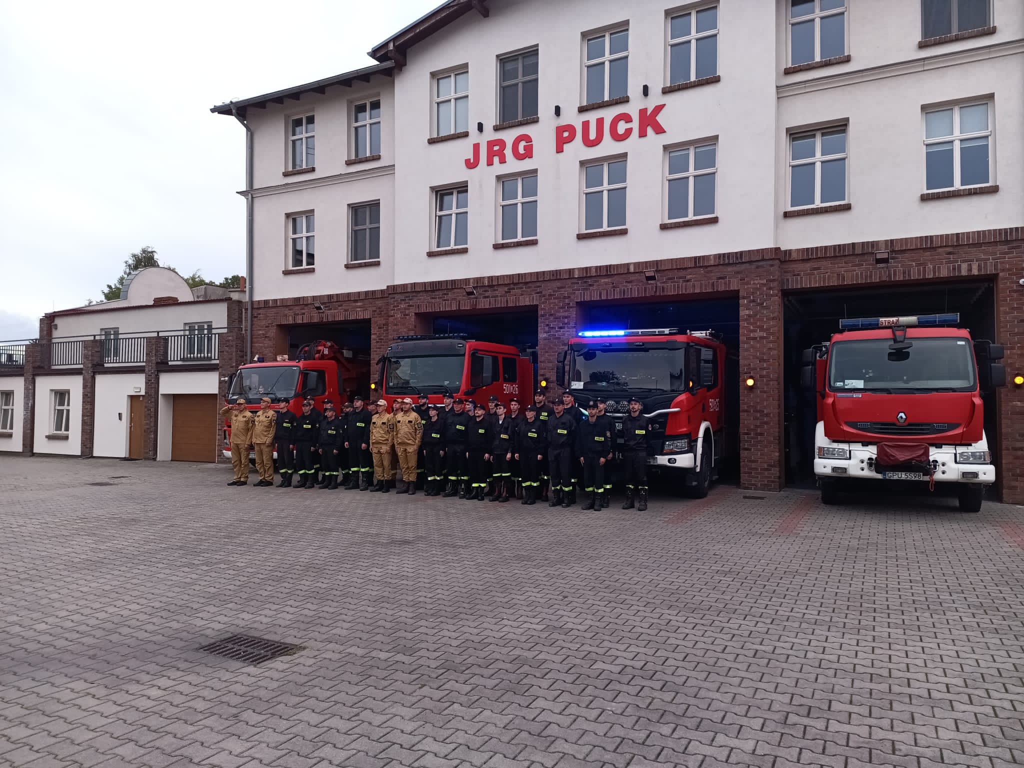 Druhny i druhowie uczestniczą w szkoleniu podstawowym strażaków-ratowników OSP, które odbywa się w Komendzie Powiatowej PSP w Pucku.