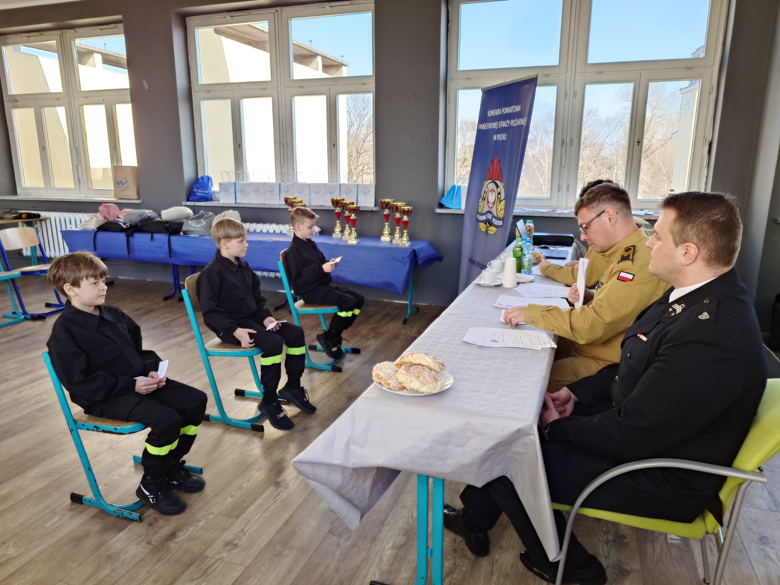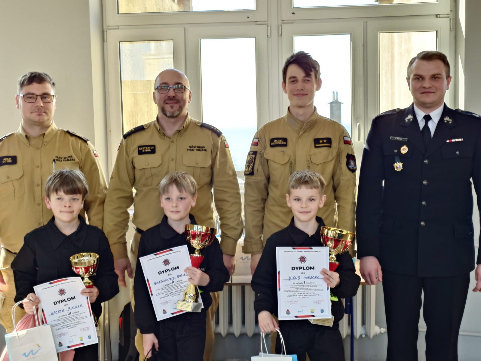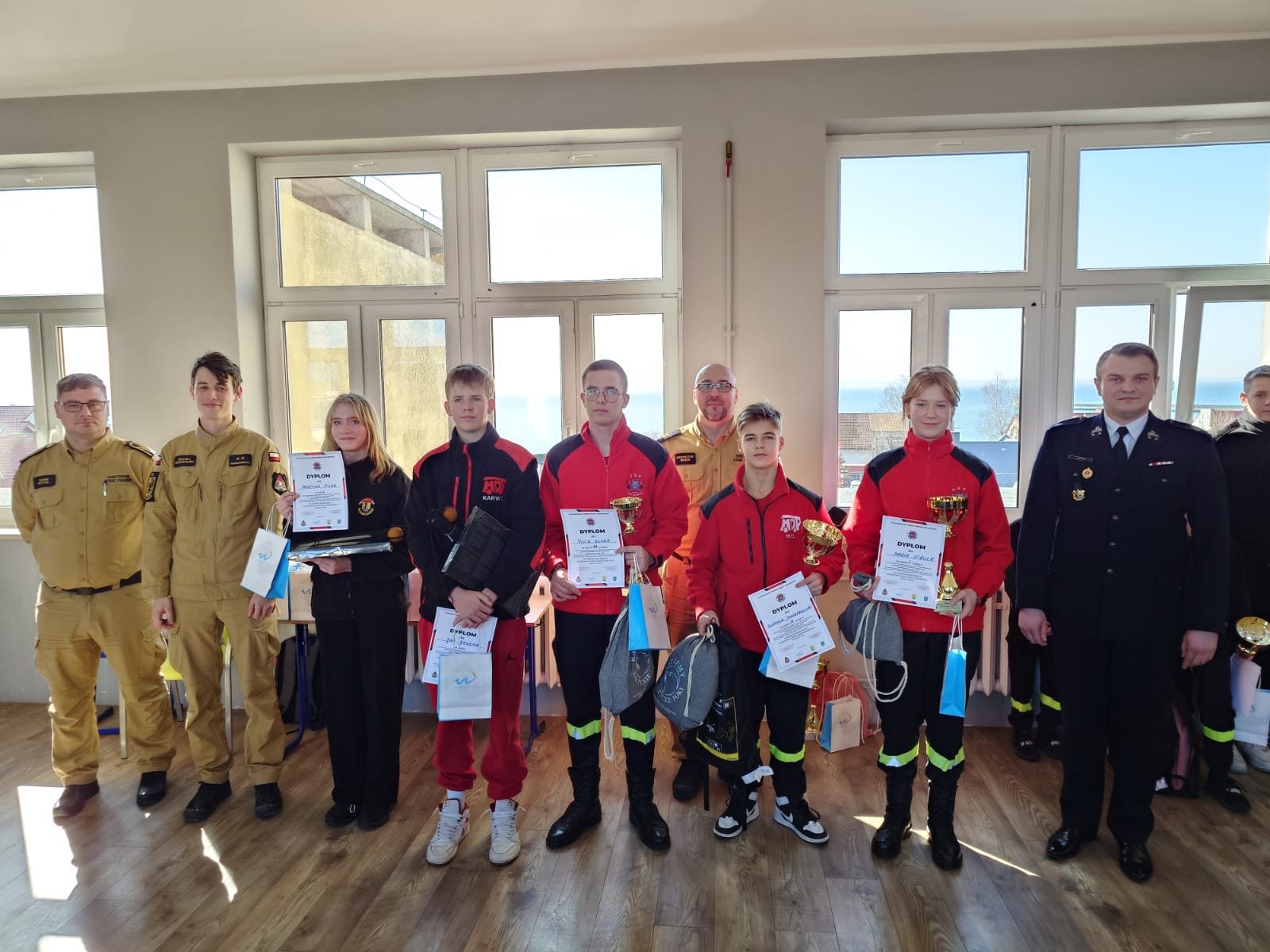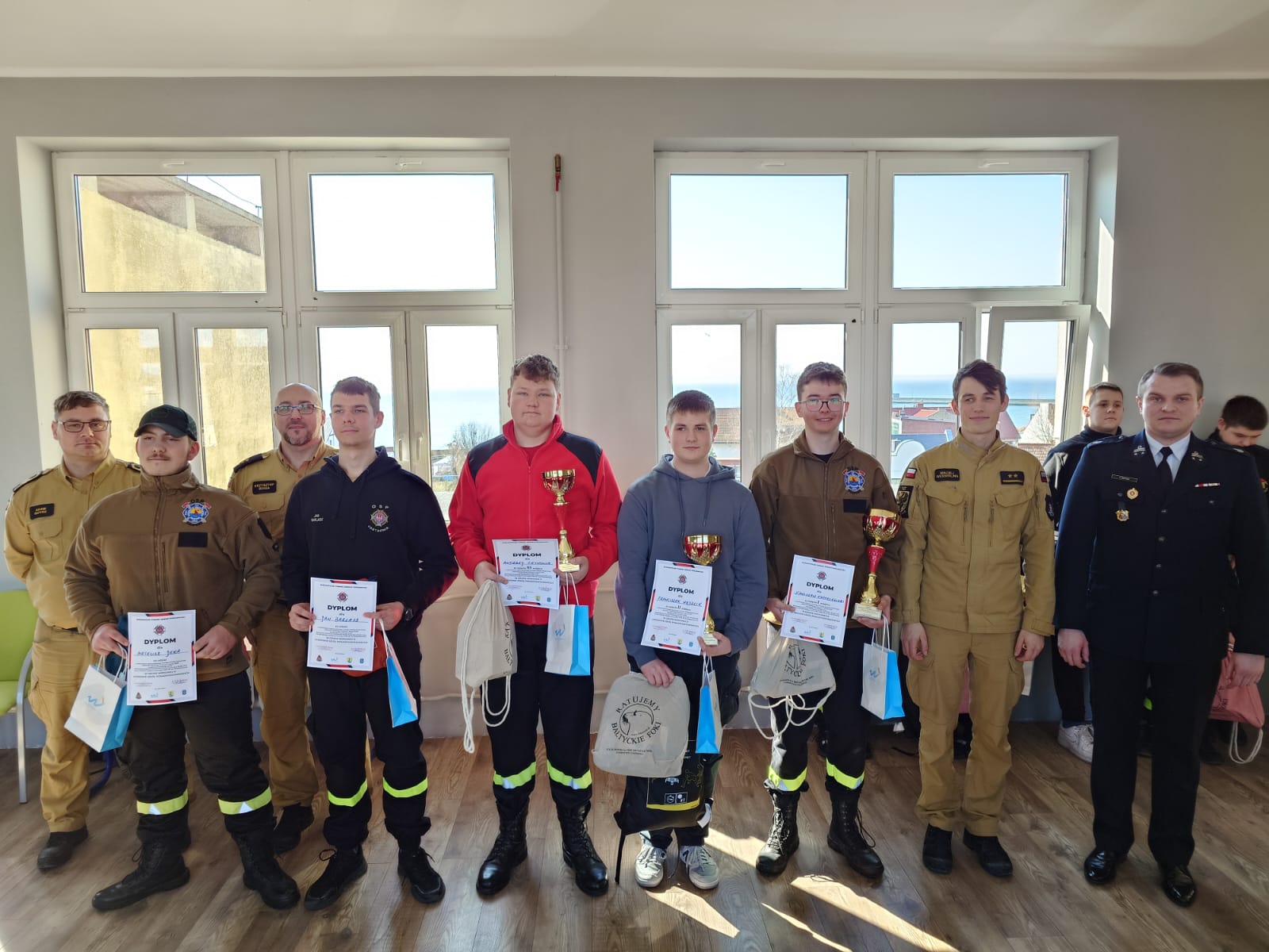 Na zakończenie turnieju puchary oraz dyplomy wręczyli Zastępca Komendanta Powiatowego PSP w Pucku, kpt. Krzysztof Minga, oraz Prezes Zarządu Miejsko-Gminnego ZOSP RP, dh. Aron Motycki. Komendant w swoim przemówieniu podkreślił, jak istotne jest szerzenie wiedzy o zagrożeniach pożarowych, a także zachęcał młodzież do dalszego rozwijania umiejętności, które mogą realnie wpłynąć na bezpieczeństwo mieszkańców. Wyraził również nadzieję, że wysoki poziom wiedzy uczestników przełoży się na ich zaangażowanie w działalność Ochotniczych Straży Pożarnych, a w przyszłości – także na wstępowanie w szeregi Państwowej Straży Pożarnej