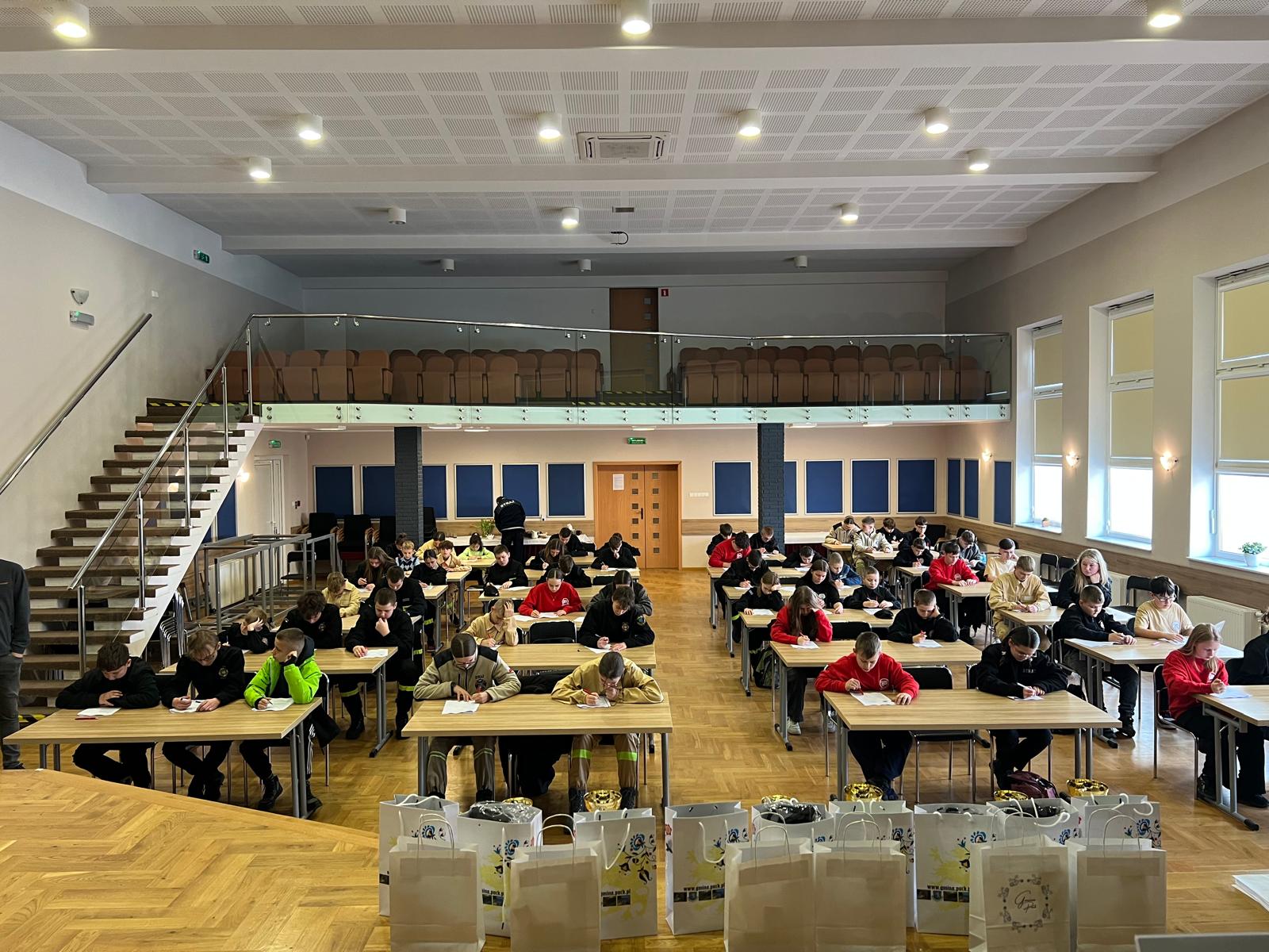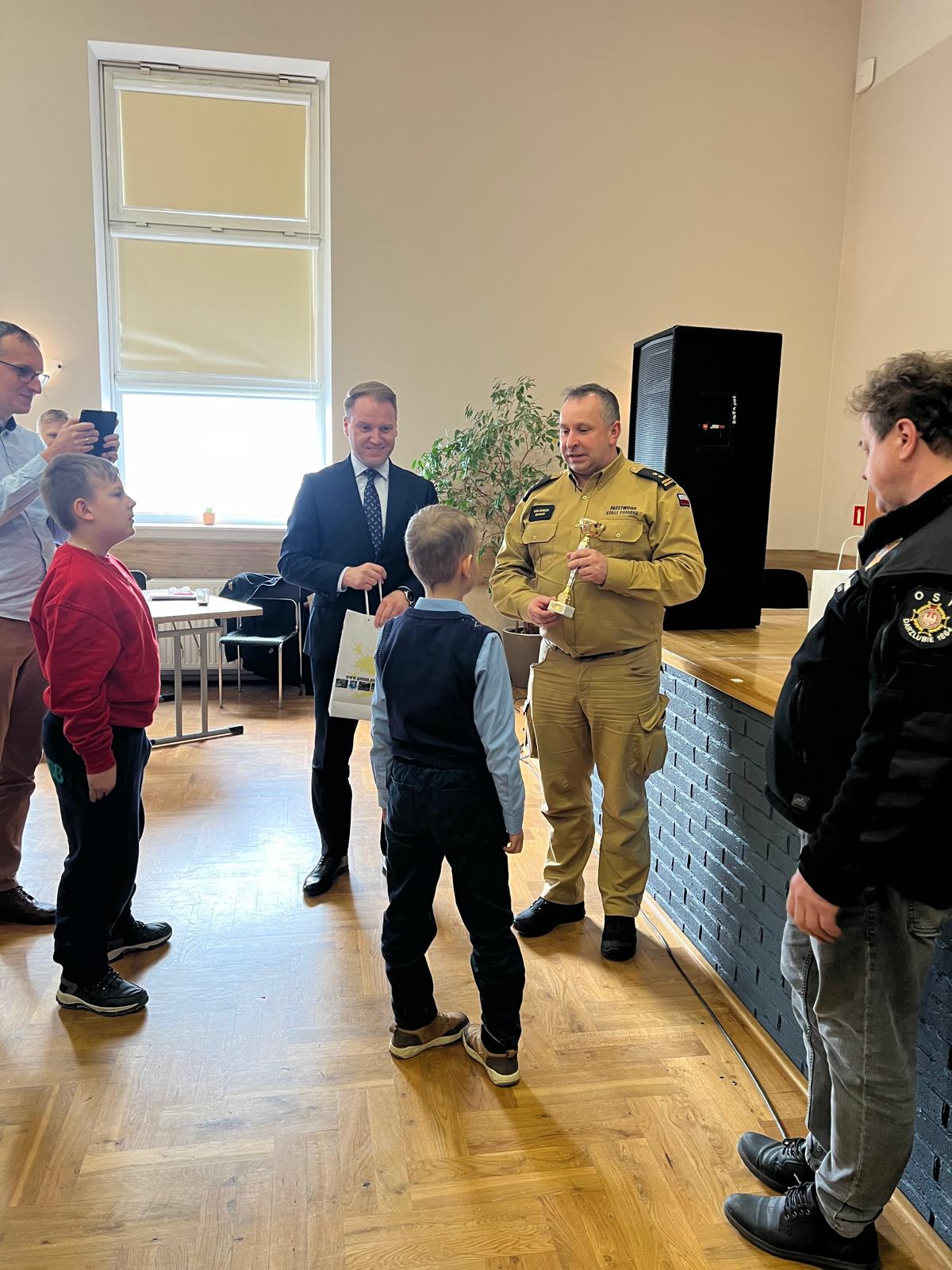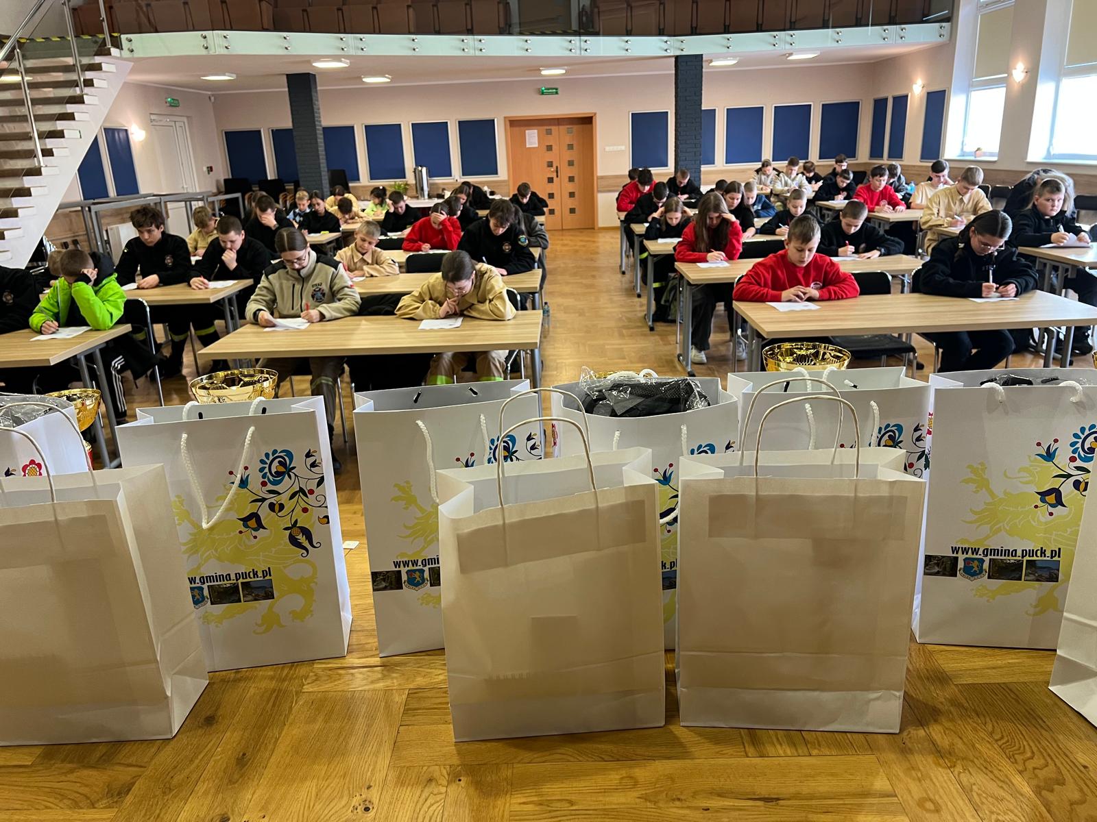 Puchary, dyplomy oraz nagrody rzeczowe wręczyli Komendant Powiatowy PSP w Pucku bryg. Wojciech Wanat oraz Wójt Gminy Puck Marcin Nikrant, którzy byli bardzo zadowoleni z wysokiej frekwencji i zaangażowania uczestników. Podkreślili, że tematyka pożarnicza cieszy się dużym zainteresowaniem wśród dzieci i młodzieży, co świadczy o rosnącej świadomości młodych ludzi. Zaznaczyli również, jak ważne jest promowanie wiedzy o bezpieczeństwie pożarowym, które przyczynia się do odpowiedzialności i lepszego przygotowania na ewentualne zagrożenia.