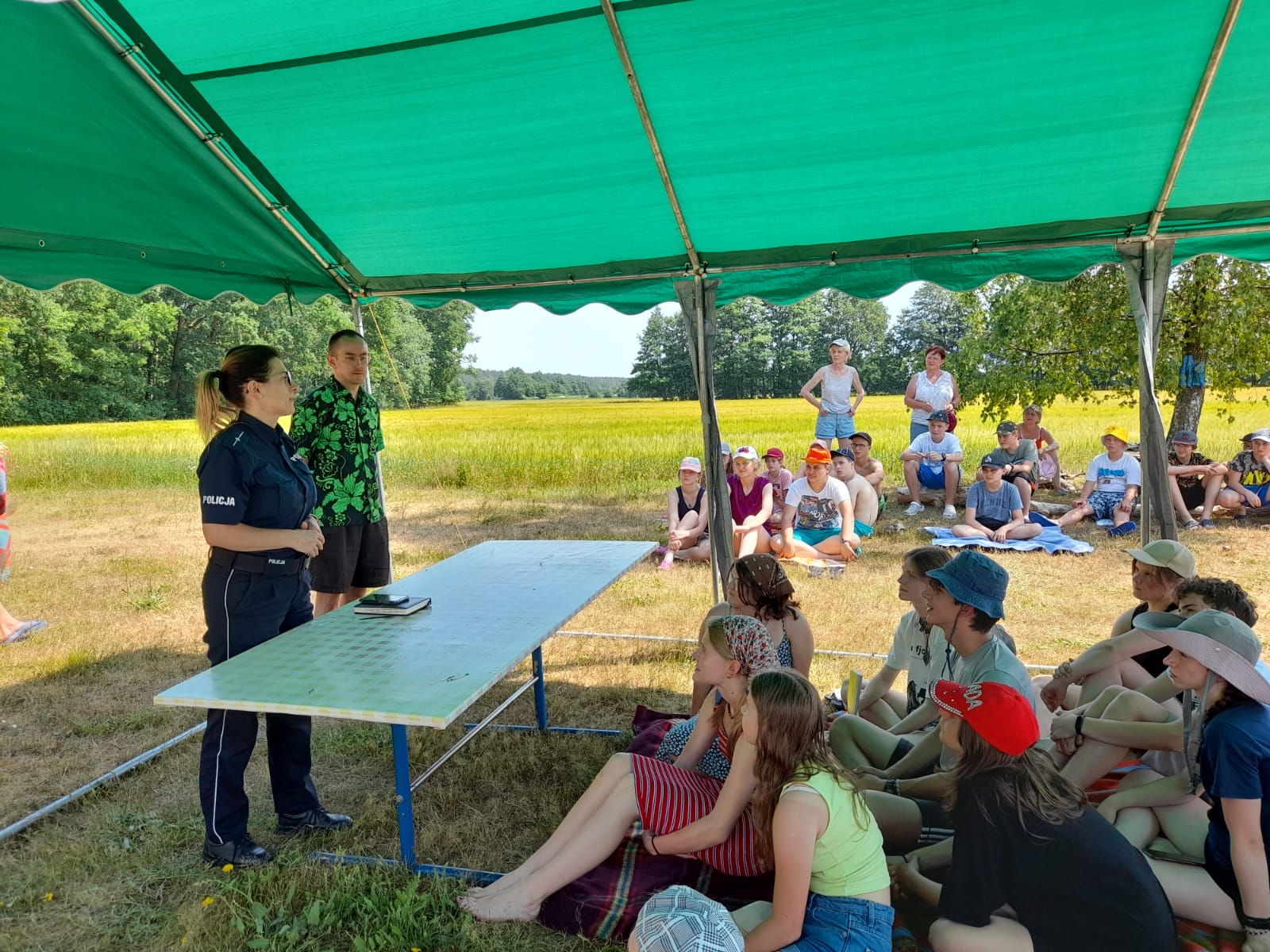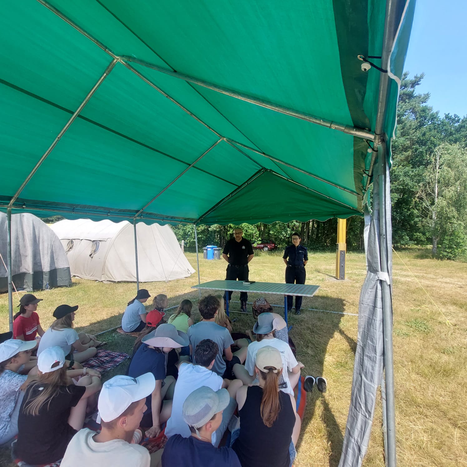 Strażacy i policjanci przeprowadzili również pogadankę z uczestnikami obozów. Dokonano: