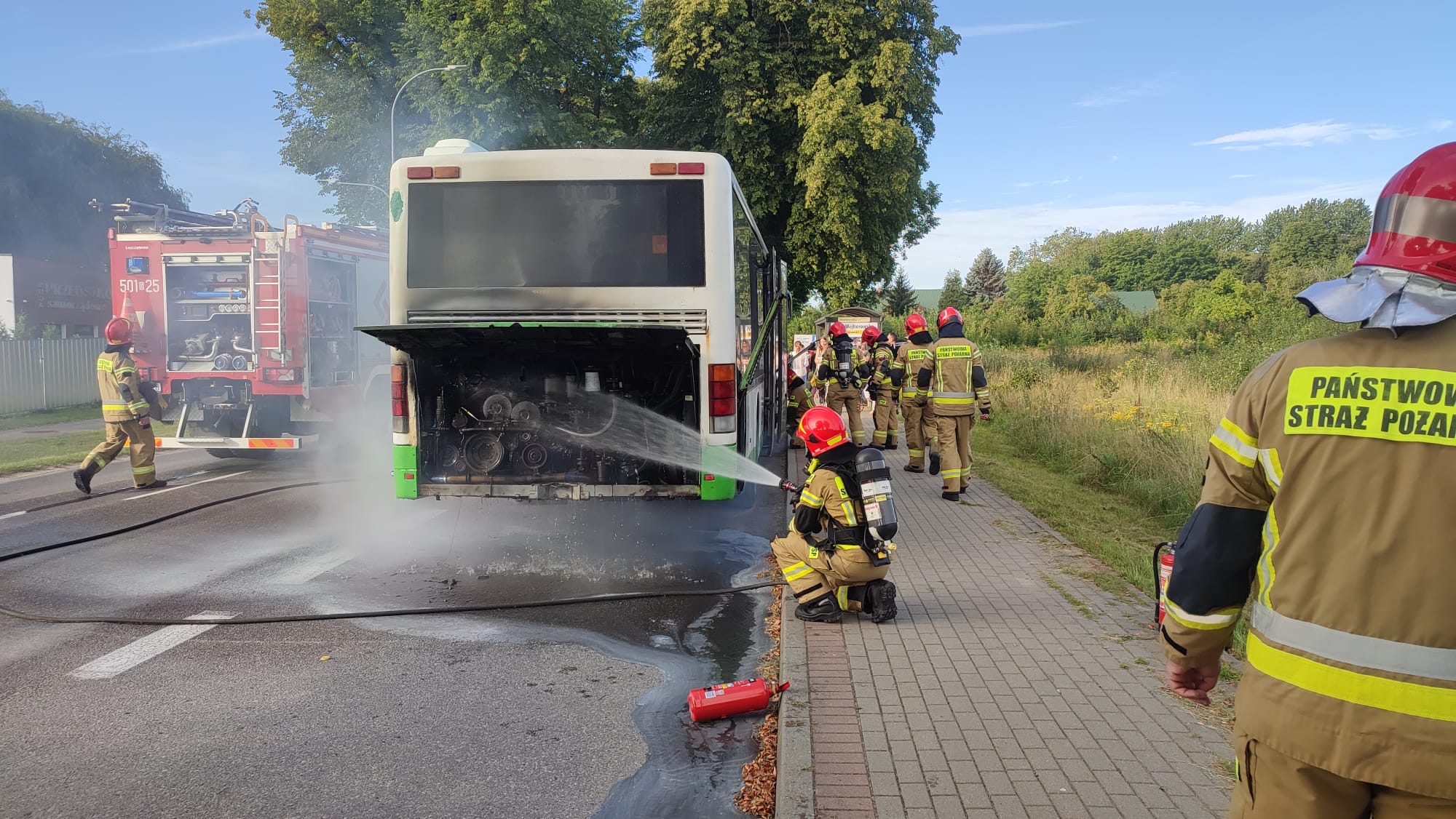 Pożar komory silnika autobusu w Pucku