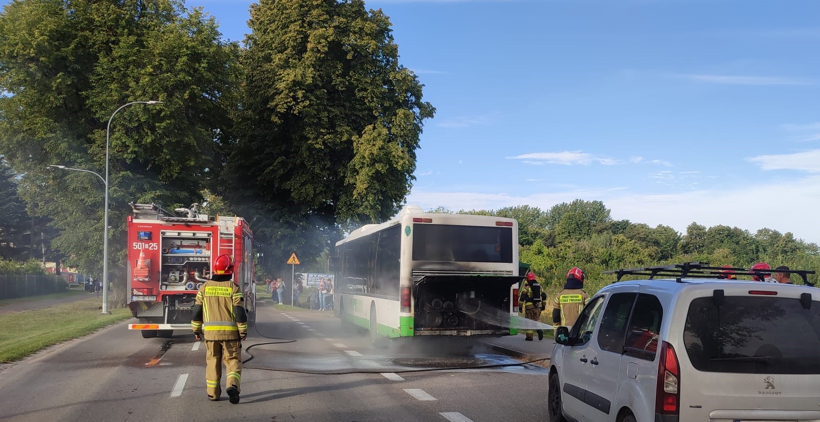 Po przybyciu ratowników stwierdzono, że z komory silnika wydobywa się dym. Wszyscy pasażerowie samodzielnie opuścili pojazd przed przybyciem służb.