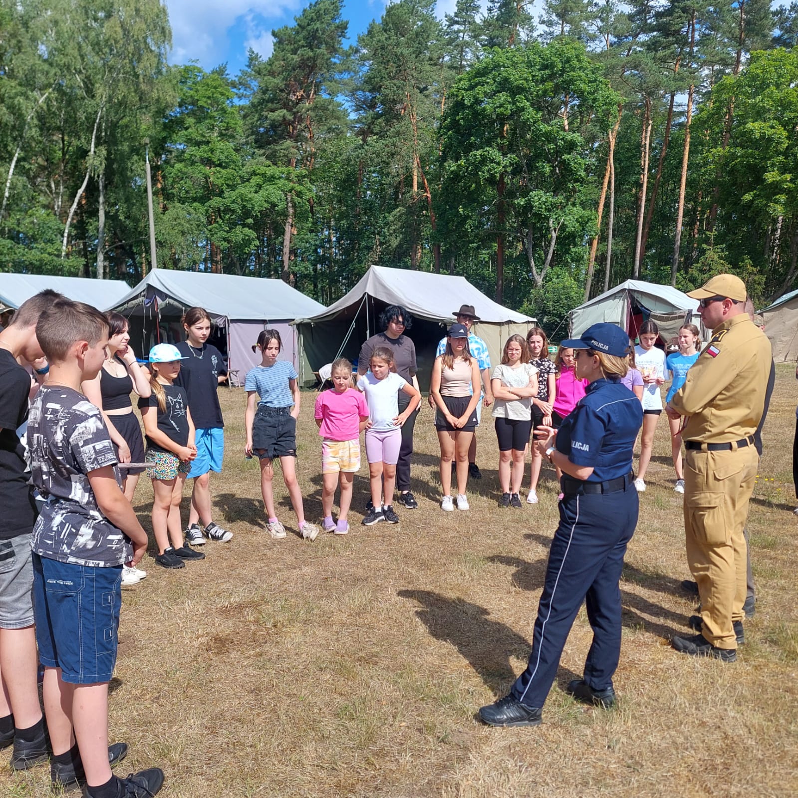 Strażacy i policjanci przeprowadzili również pogadanki z uczestnikami obozów. Dokonano: