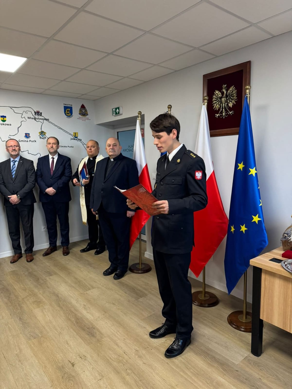 17 grudnia 2025 r. o godzinie 11:00 w Komendzie Powiatowej Państwowej Straży Pożarnej w Pucku odbyło się uroczyste spotkanie opłatkowe.