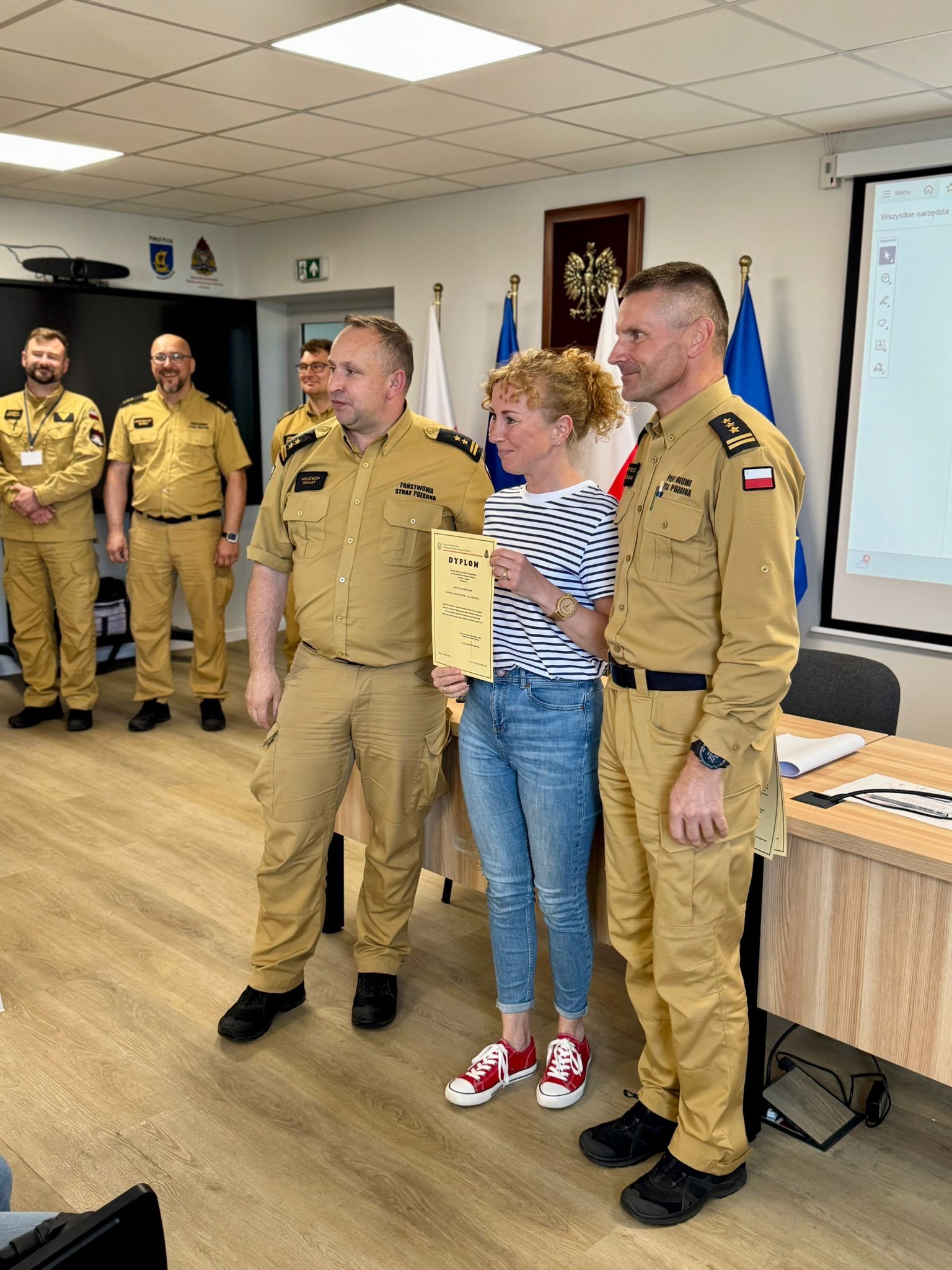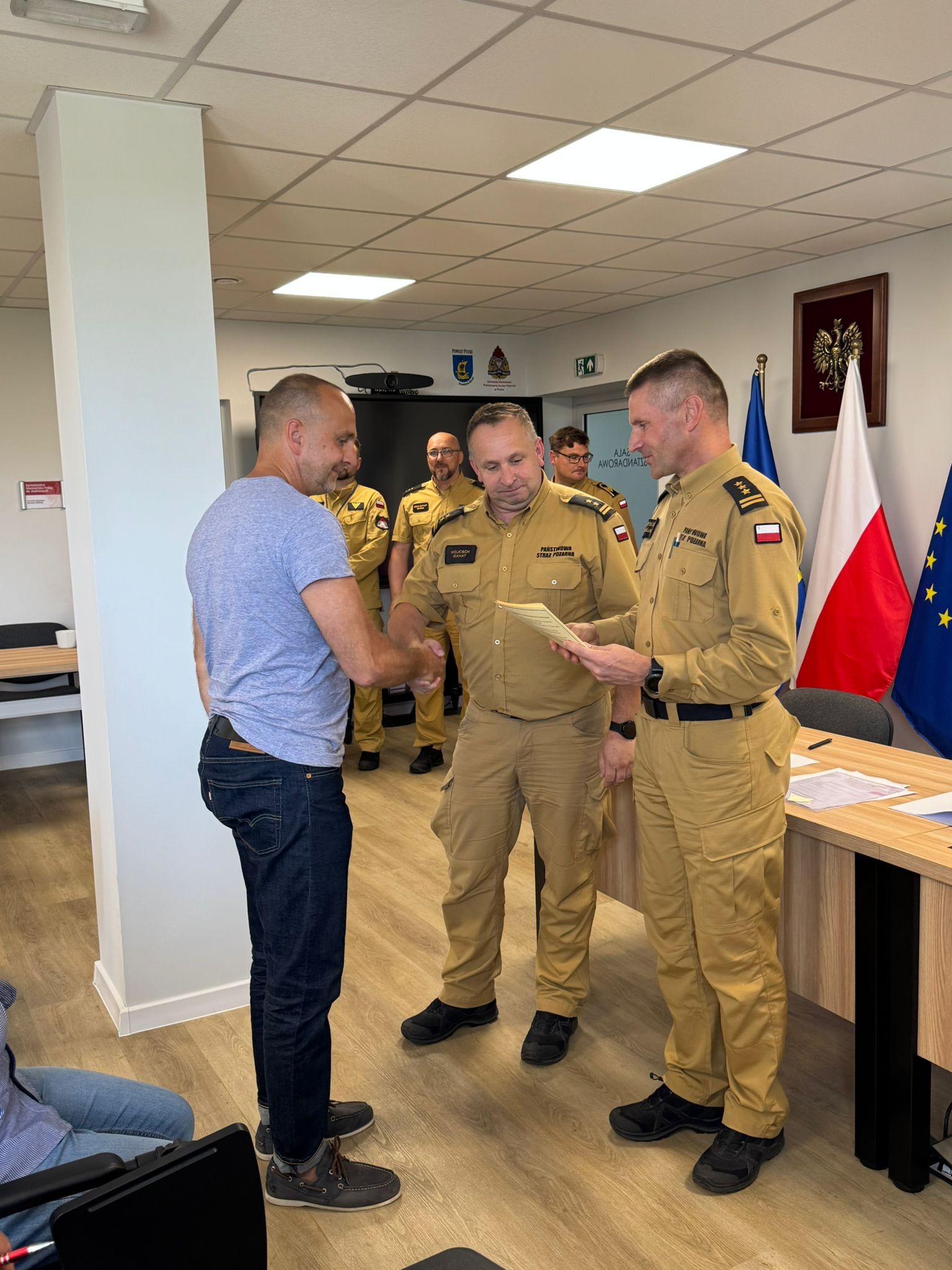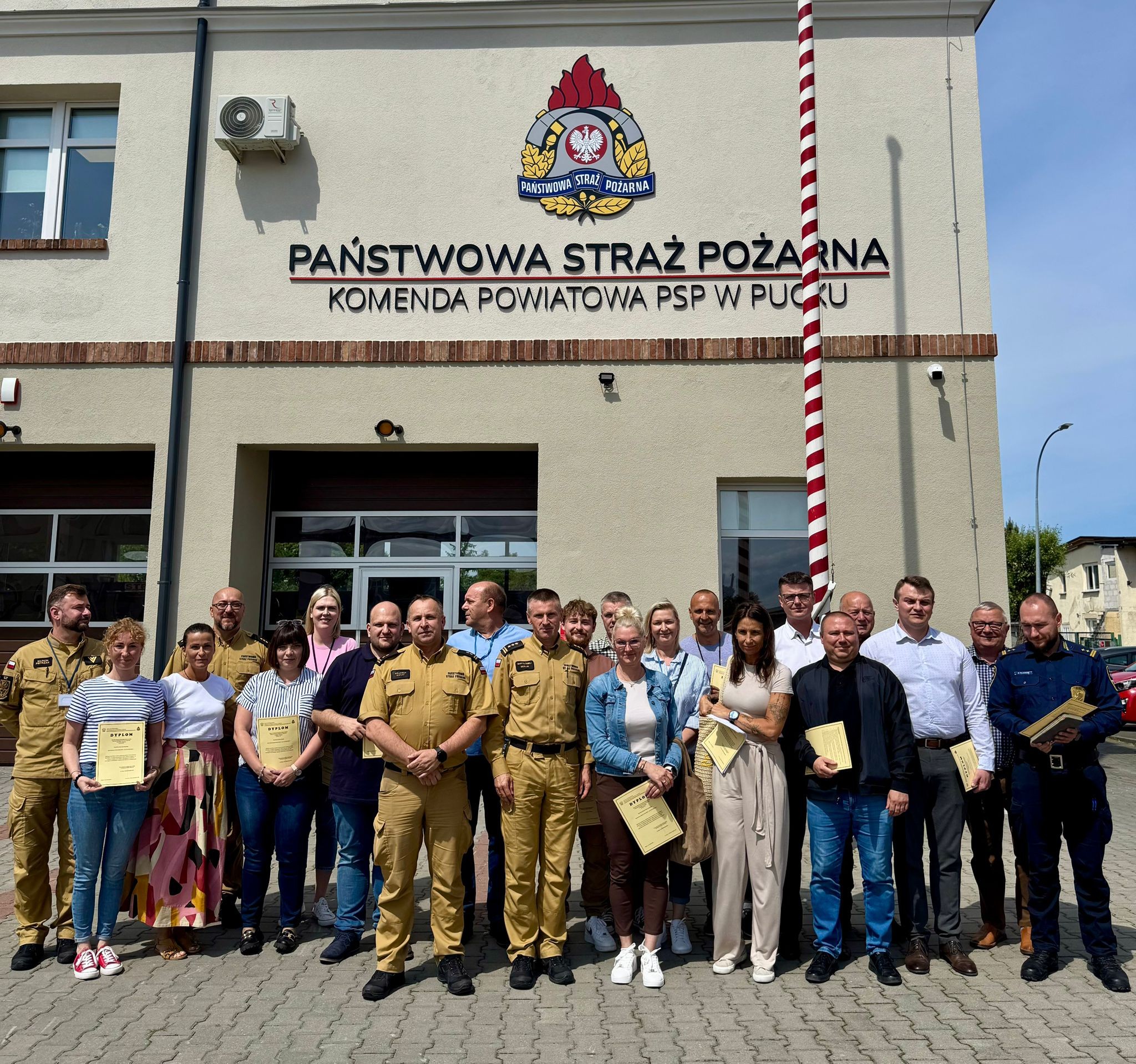 W uroczystym zakończeniu udział wzięli m.in.: Zastępca Pomorskiego Komendanta Wojewódzkiego PSP, st. bryg. Bartłomiej Mollin; Komendant Powiatowy PSP w Pucku, bryg. Wojciech Wanat; Zastępca Komendanta Powiatowego, kpt. Krzysztof Minga, oraz funkcjonariusze z KP PSP w Pucku.