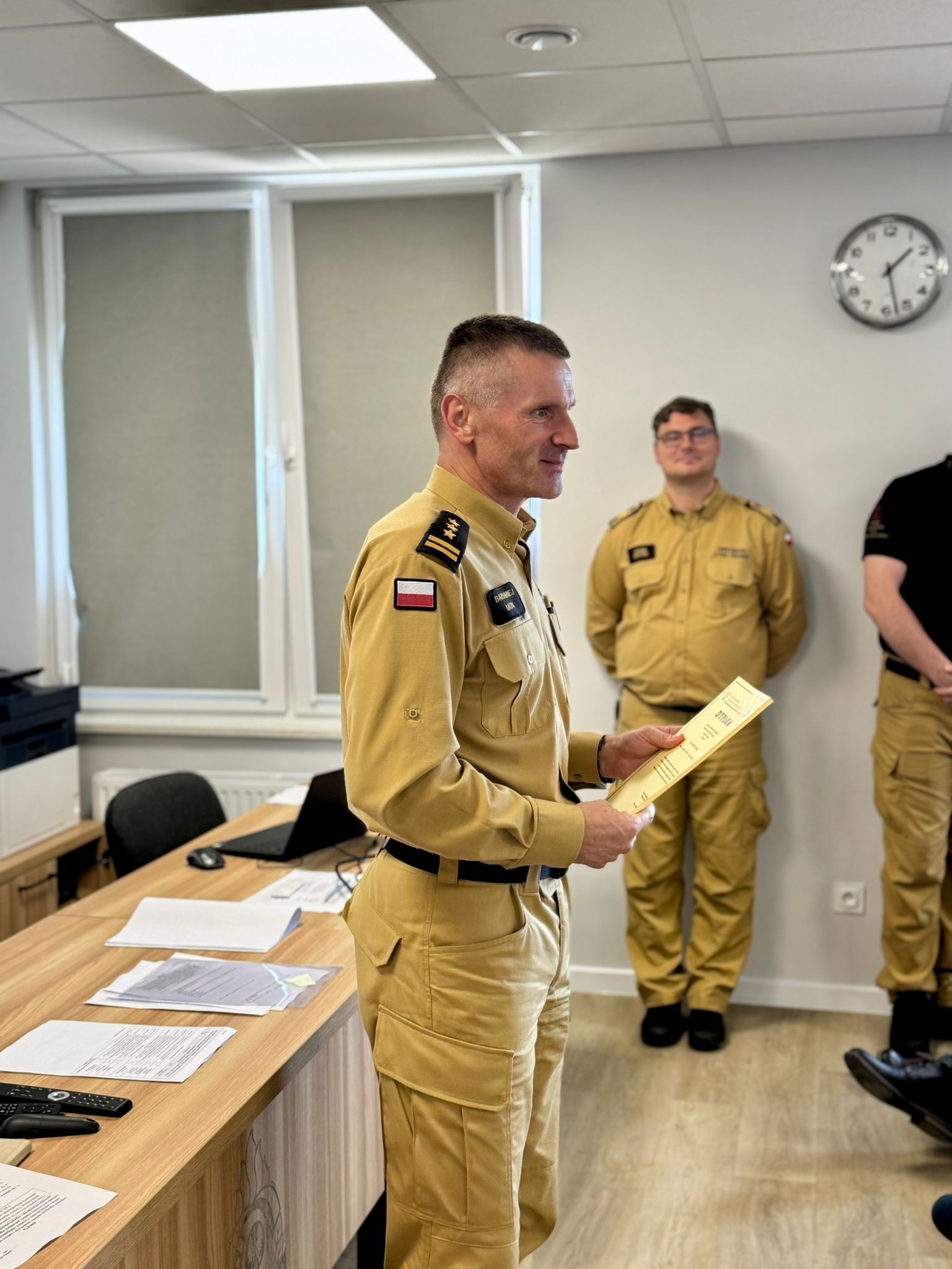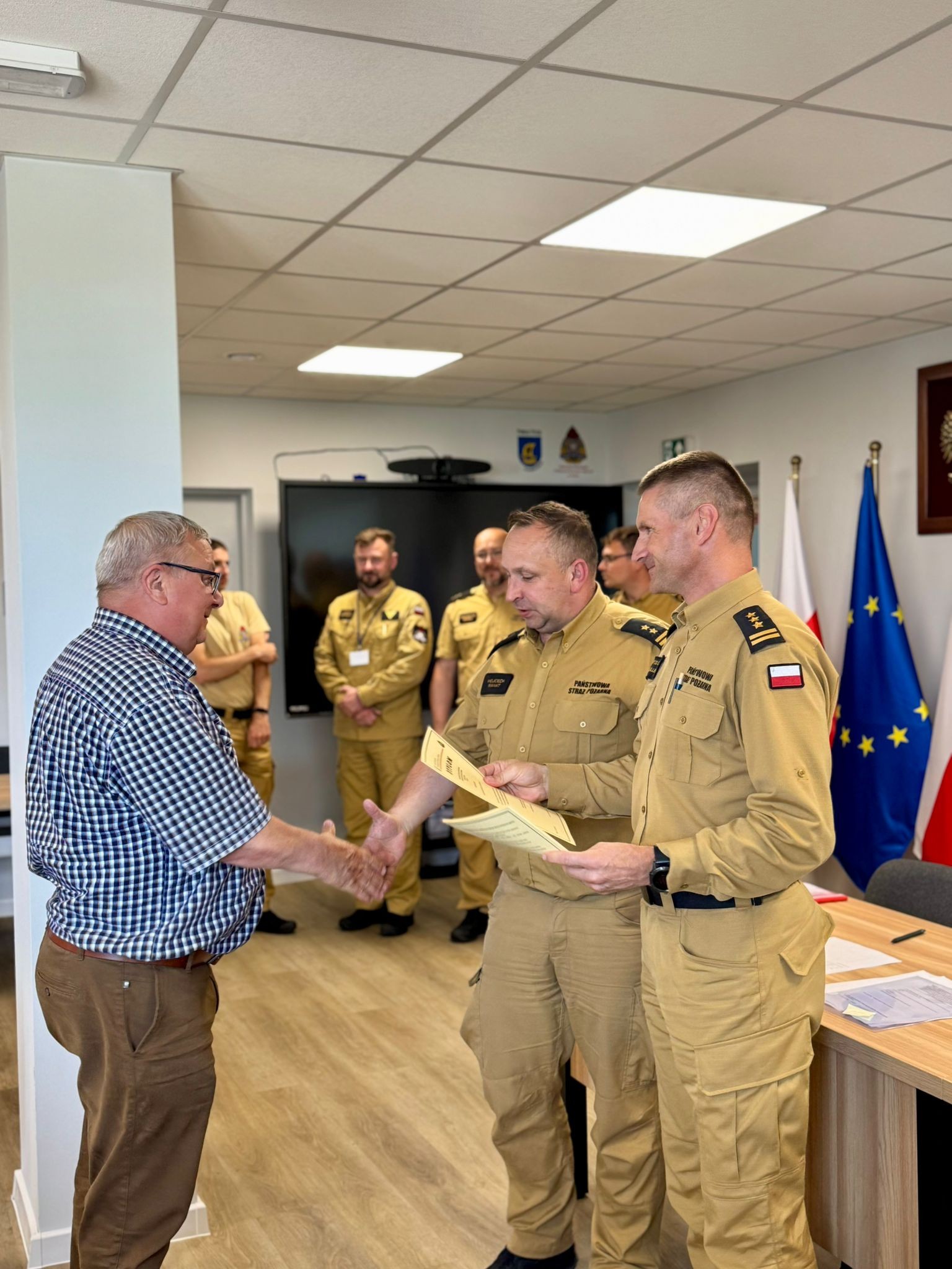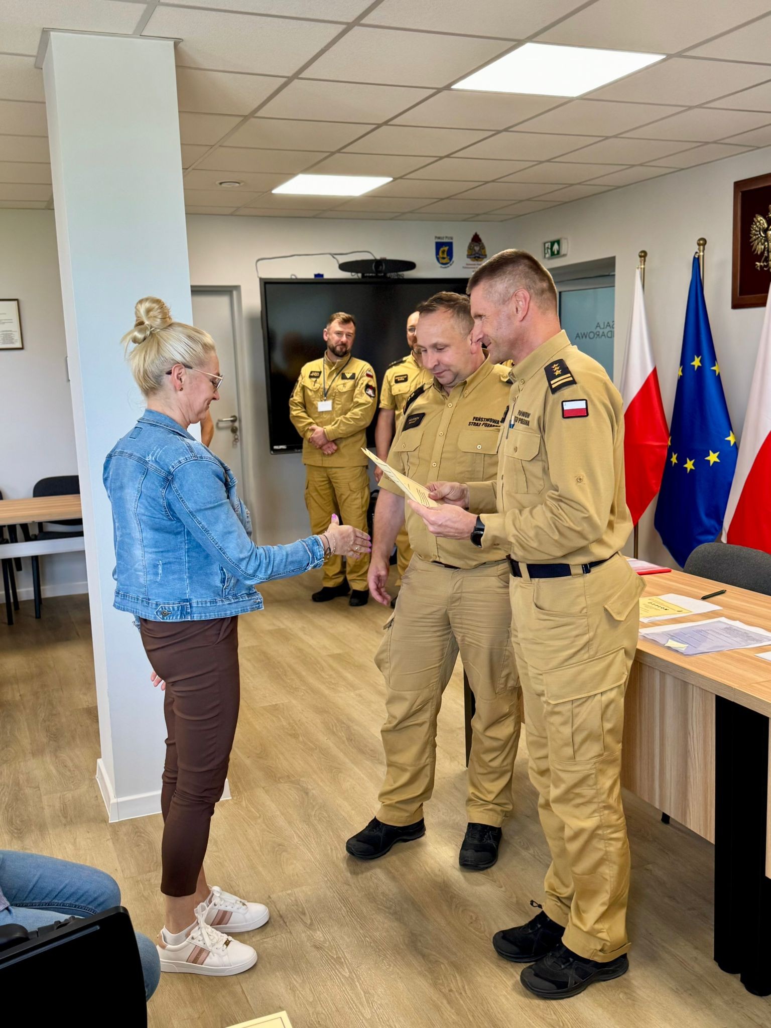 W uroczystym zakończeniu udział wzięli m.in.: Zastępca Pomorskiego Komendanta Wojewódzkiego PSP, st. bryg. Bartłomiej Mollin; Komendant Powiatowy PSP w Pucku, bryg. Wojciech Wanat; Zastępca Komendanta Powiatowego, kpt. Krzysztof Minga, oraz funkcjonariusze z KP PSP w Pucku.