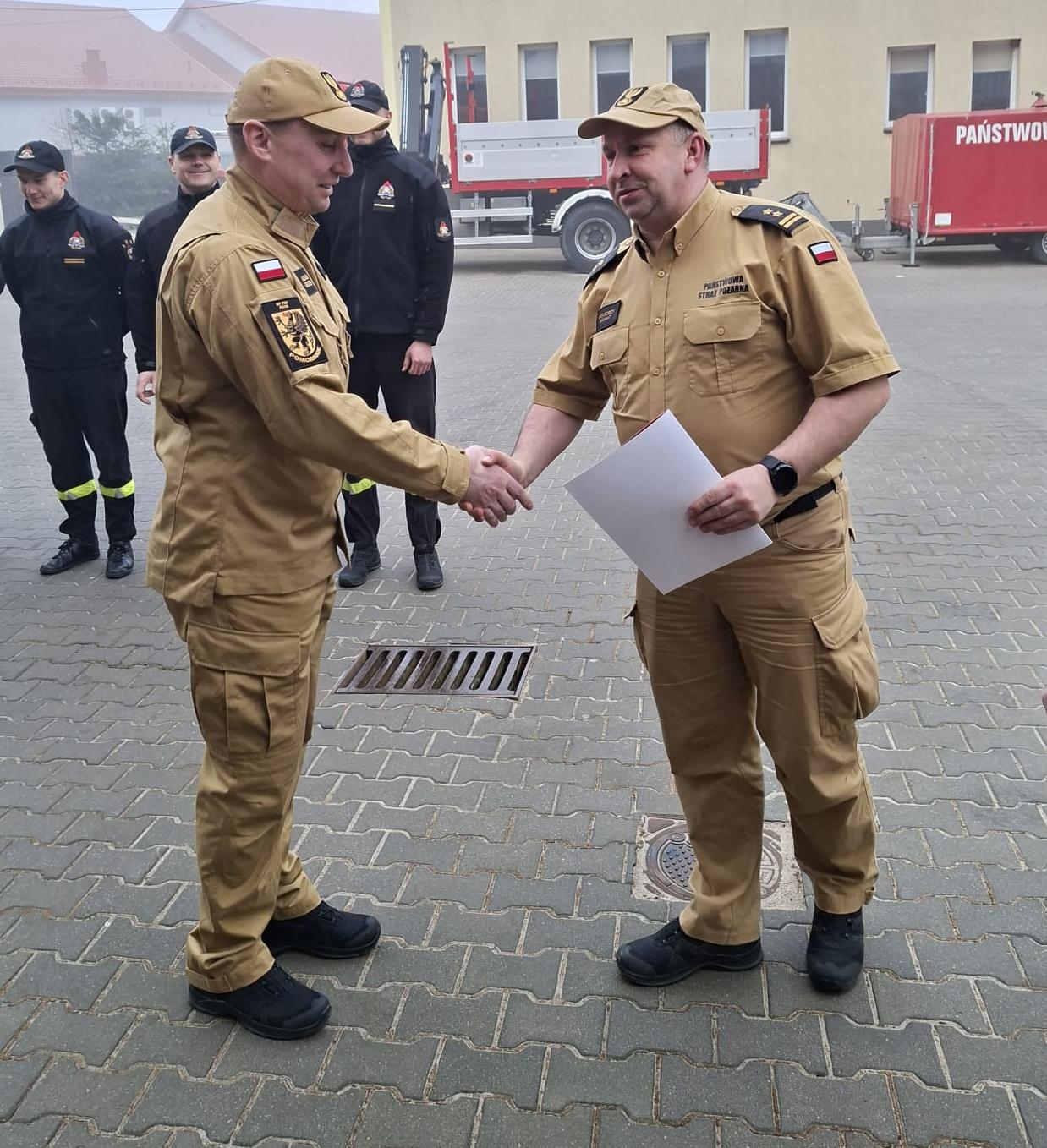 Komendant Powiatowy PSP w Pucku, bryg. Wojciech Wanat, wręczył nagrodę w obecności Zastępcy Dowódcy Jednostki Ratowniczo-Gaśniczej, Adama Liss, oraz funkcjonariuszy jednostki.