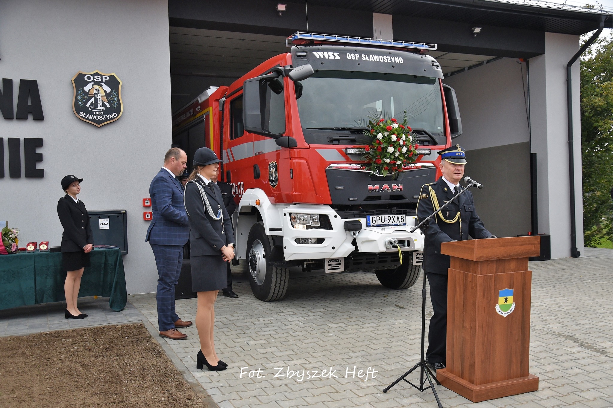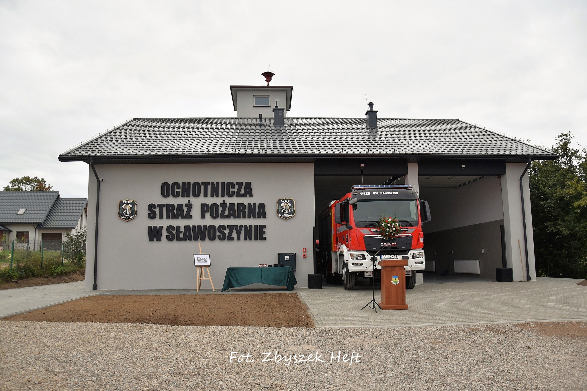 13 października 2023 r. przy strażnicy odbyła się uroczysta zbiórka z okazji 140-lecia jednostki, otwarcie wyremontowanej strażnicy oraz przekazanie samochodu dla OSP Sławoszyno. Oficjalnego przywitania gości dokonała Prezes Ochotniczej Straży Pożarnej w Sławoszynie dh Karolina Majcher.