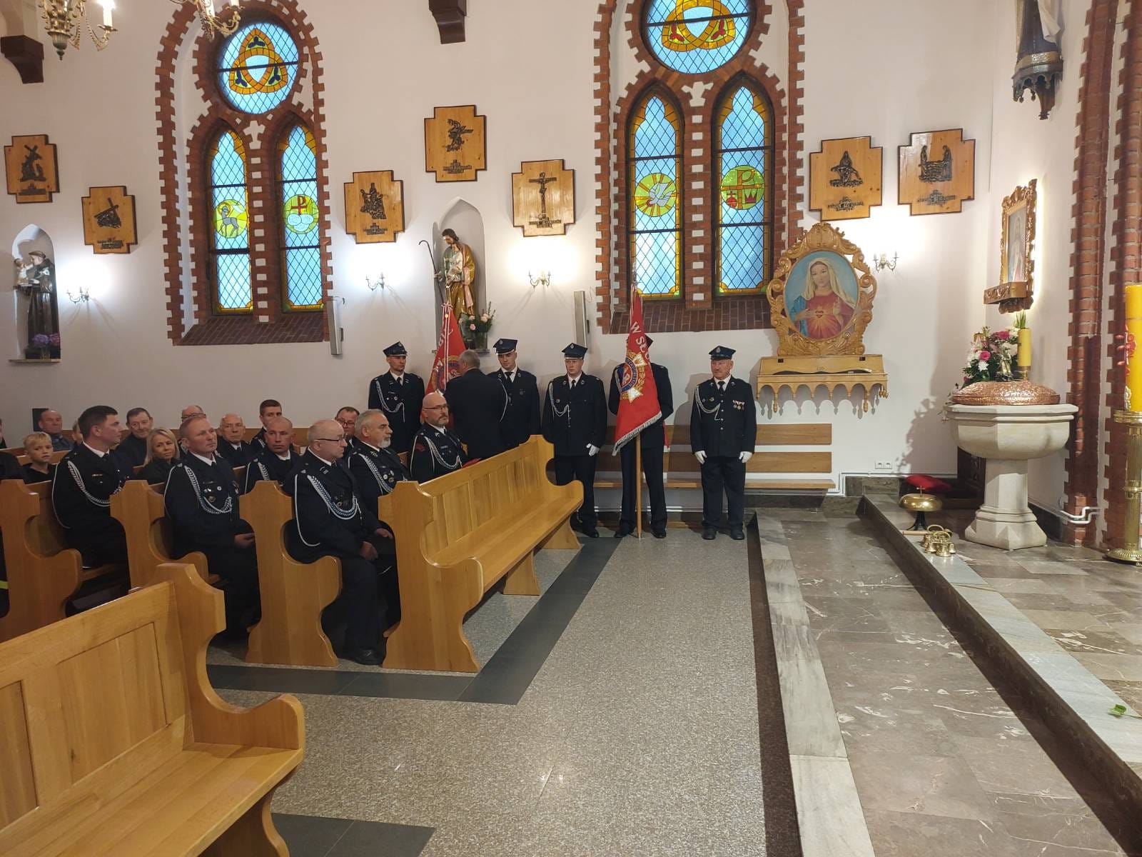 Po uroczystej Mszy Św, nabryg. Piotr Socha - pomorski komendant wojewódzki PSP w Gdańsku w asyście st. bryg. Bartłomieja Mollin - komendanta powiatowego PSP w Pucku, wręczyli wyróżniającym się Druhom listy gratulacyjne.