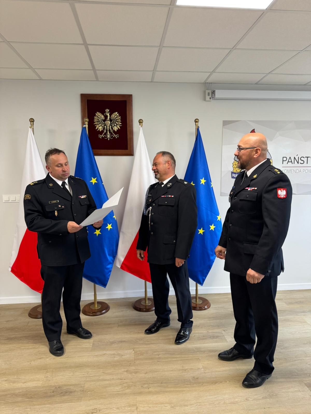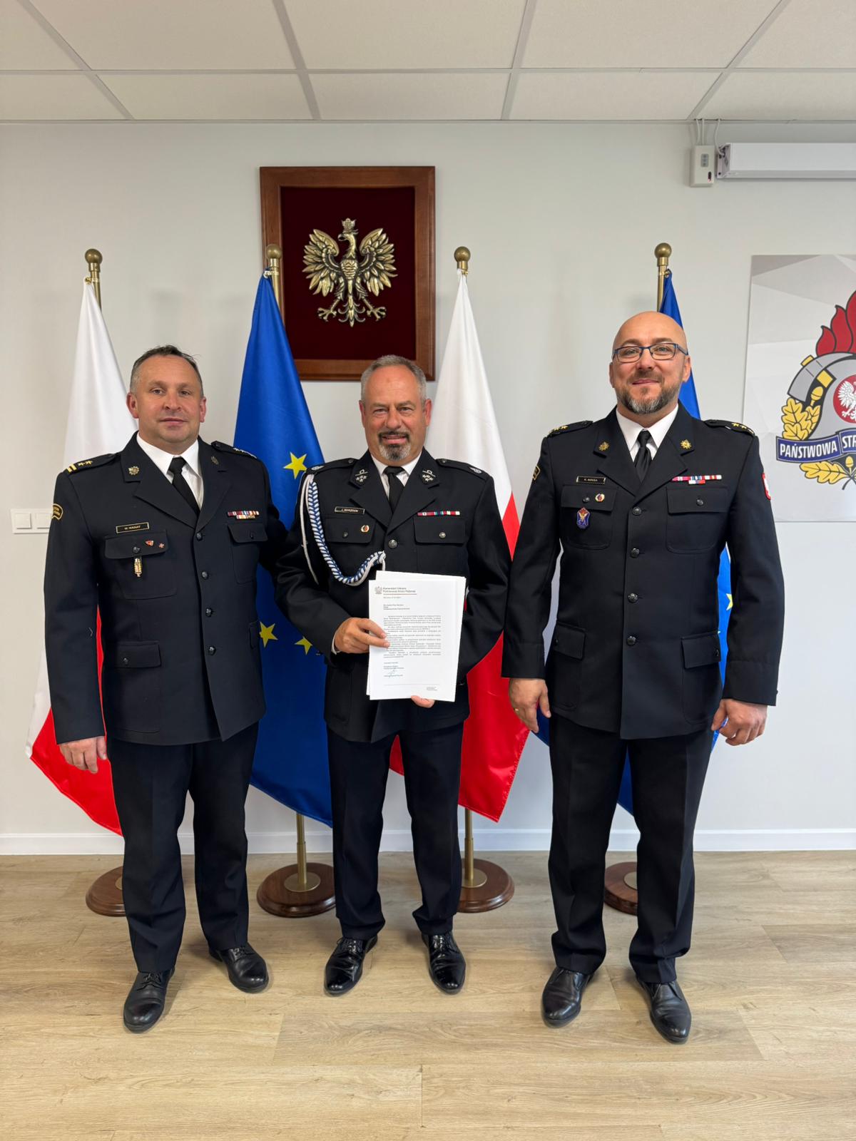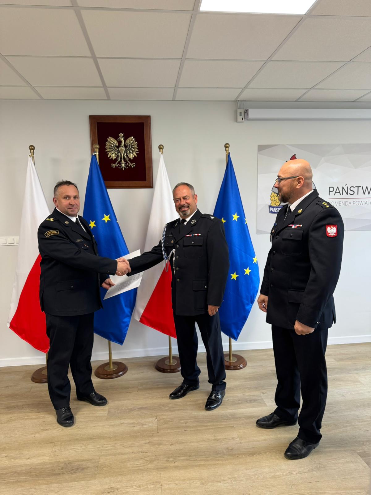 30 maja 2025 r. w siedzibie Komendy Powiatowej Państwowej Straży Pożarnej w Pucku Komendant Powiatowy PSP bryg. Wojciech Wanat, wraz ze swoim Zastępcą, kpt. Krzysztofem Mingą, wręczyli promesę na zakup ciężkiego samochodu ratowniczo-gaśniczego.