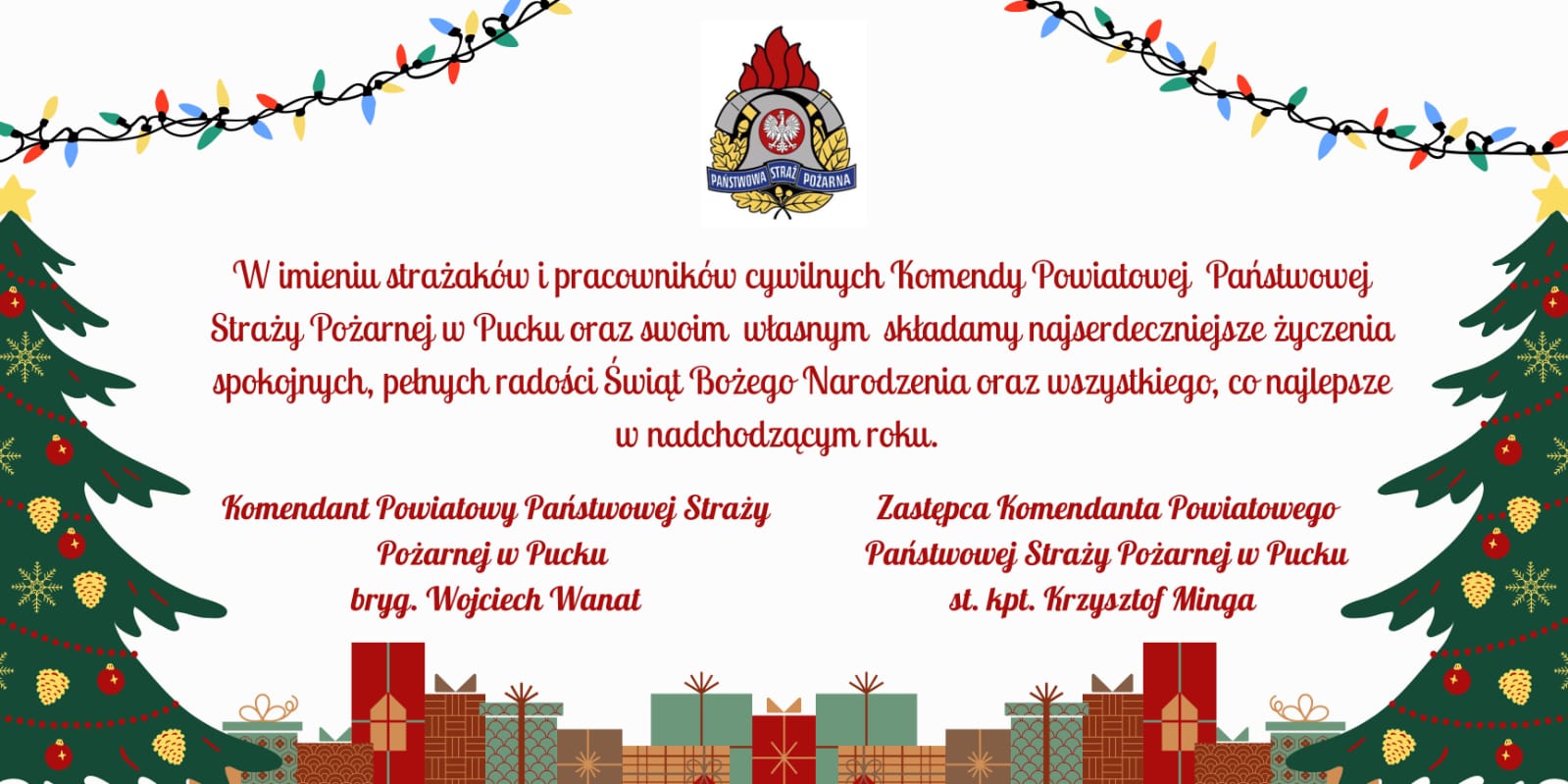 Życzenia świąteczno-noworoczne kierownictwa Komendy Powiatowej PSP w Pucku 23.12.2025 Zdjęcia (1) Pokaż zdjęcie 1 z galerii.