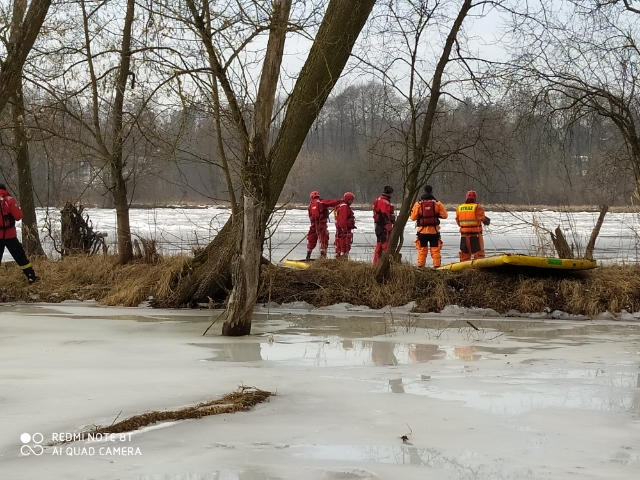 W związku ze zdarzeniem, które miało miejsce 21 lutego 2021 r. trwa akcja poszukiwawcza zaginionego mężczyny. Strażacy, ratownicy WOPR oraz Specjalistyczna Grupa Ratownictwa Wodno - Nurkowego z Jednostki Ratowniczo - Gaśniczej nr 1 z Warszawy kontynuują przeszukiwanie dna rzeki od miejsca w którym osoba zaginona była widziana ostani raz, w kierunku jej ujścia.
