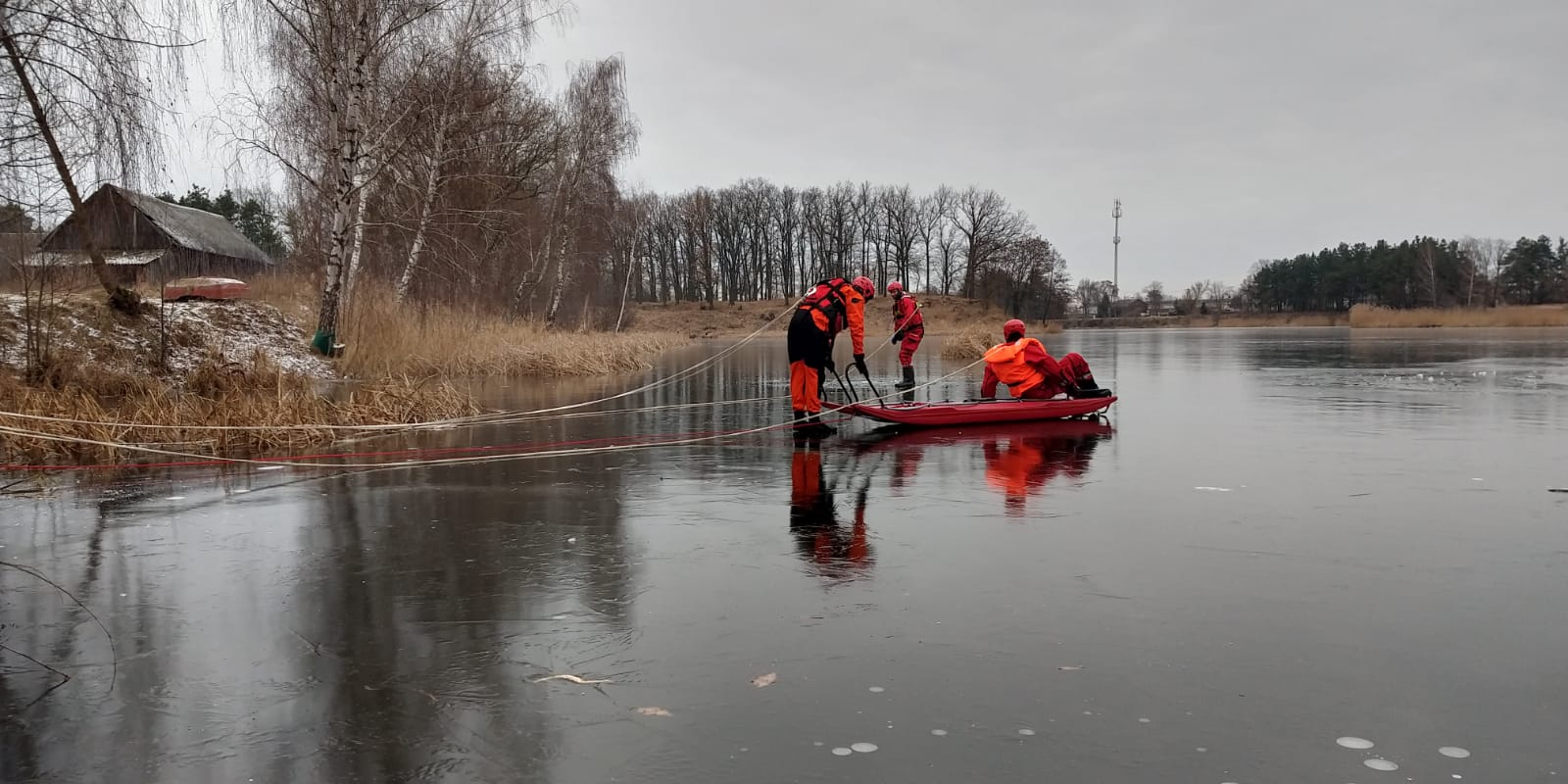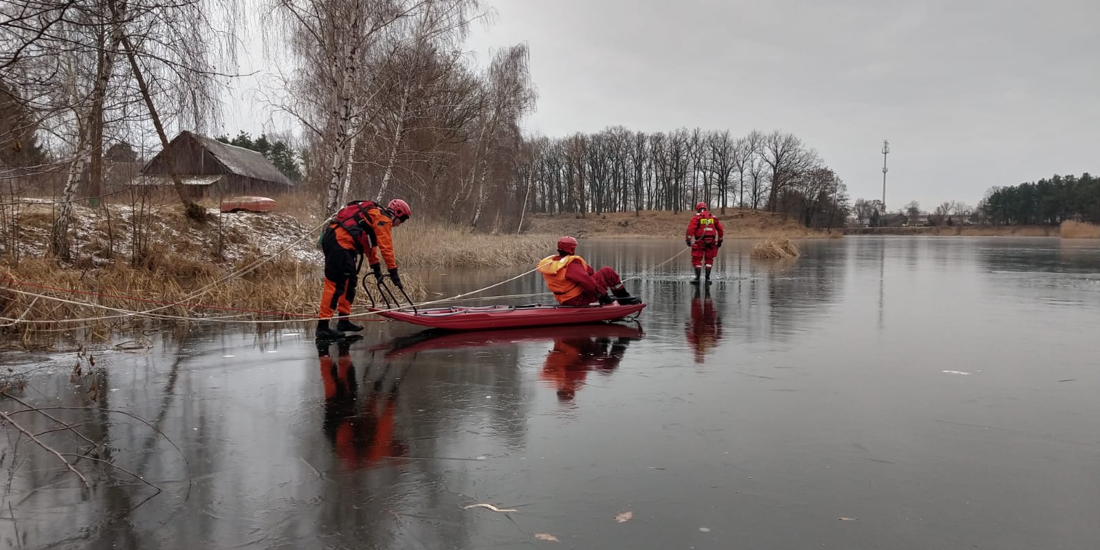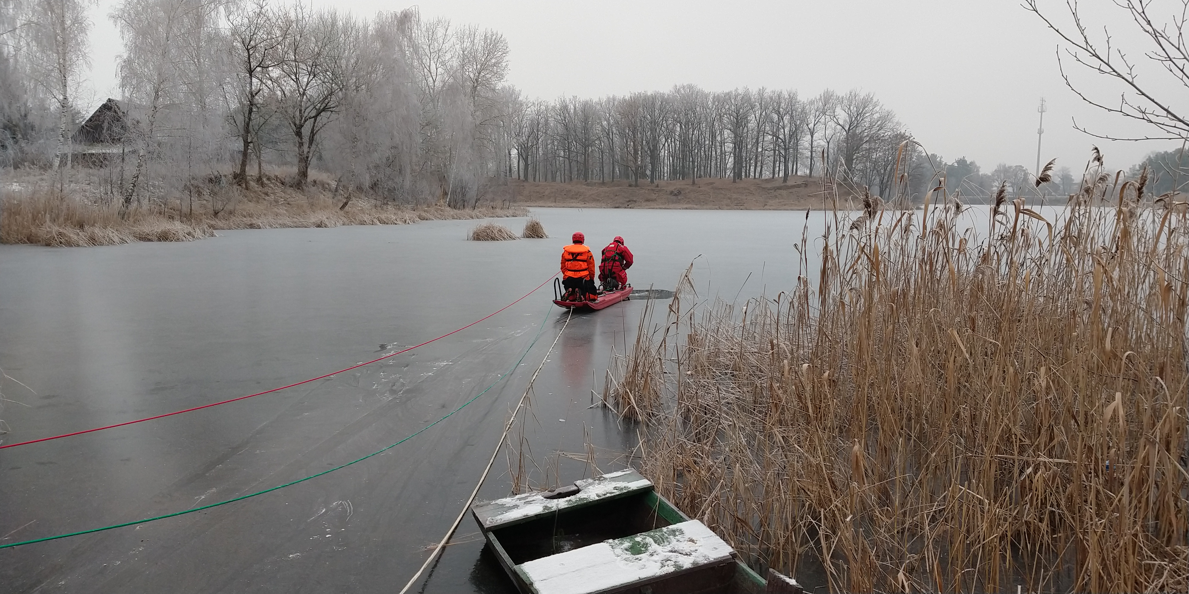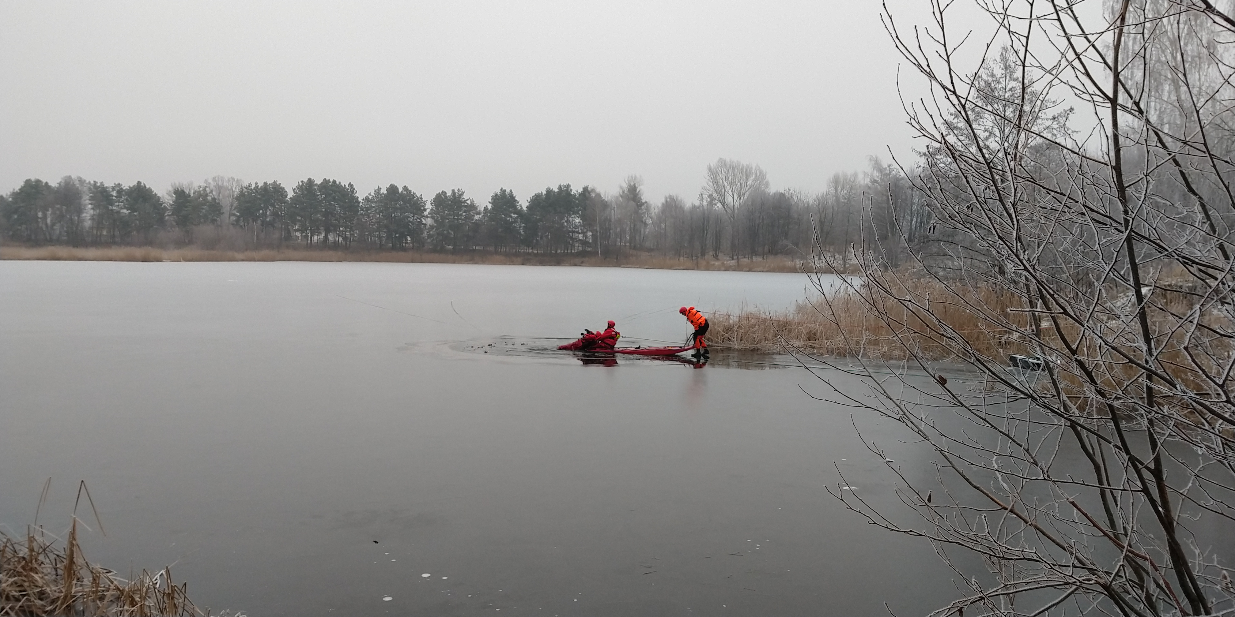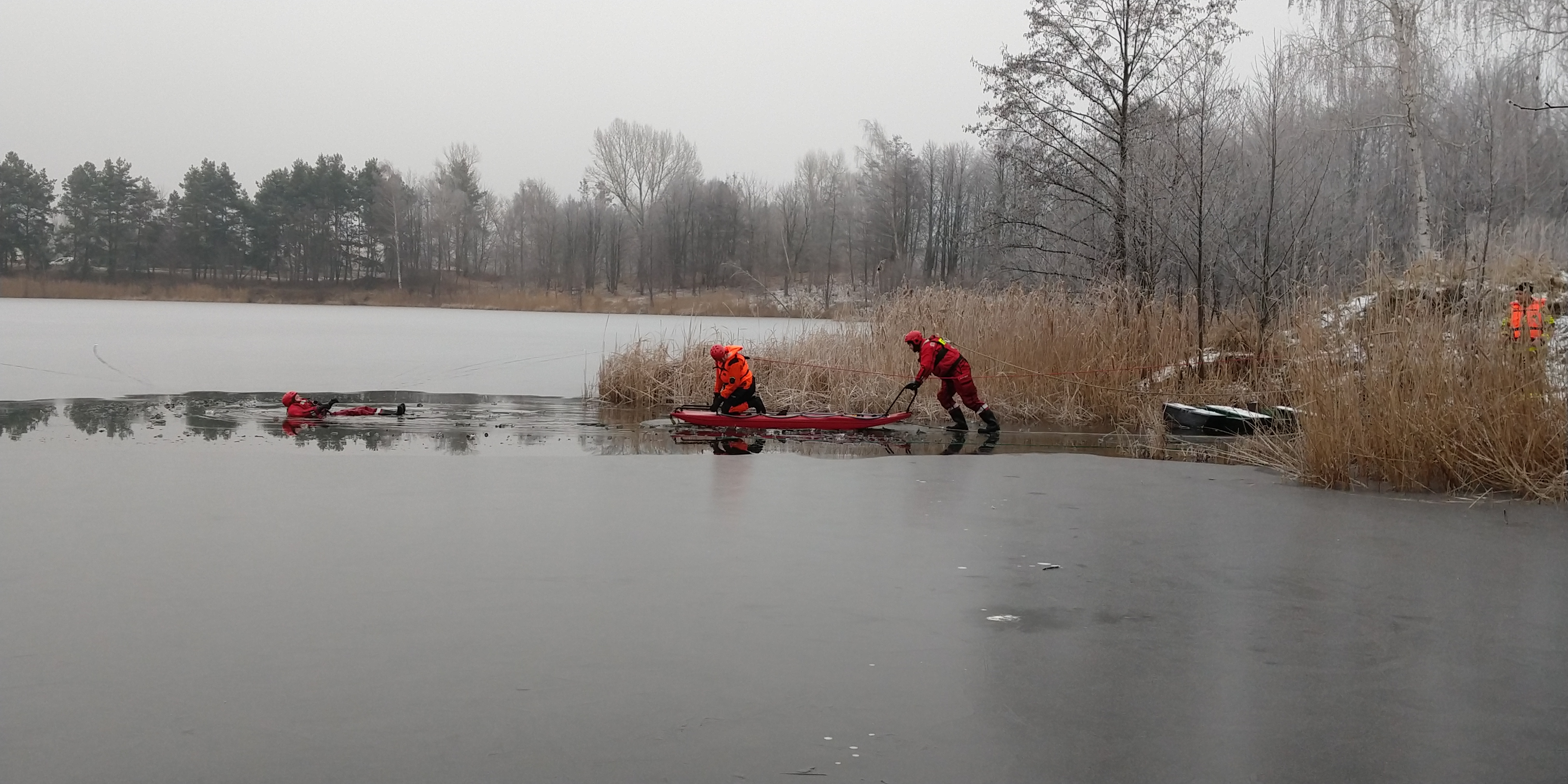 W dniach 11 - 12 stycznia 2022 roku strażacy z Jednostki Ratowniczo - Gaśniczej z Komendy Powiatowej PSP w Pułtusku ćwiczyli na zamarzniętym zbiorniku wodnym. Warunki atmosferyczne sprzyjały zorganizowaniu ćwiczeń z zakresu ratownictwa wodno - lodowego.