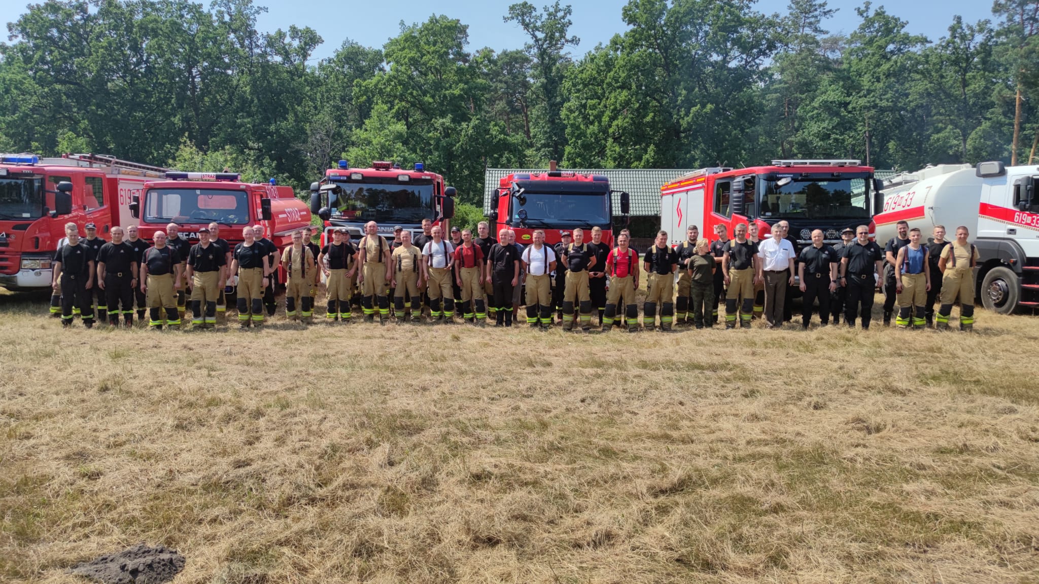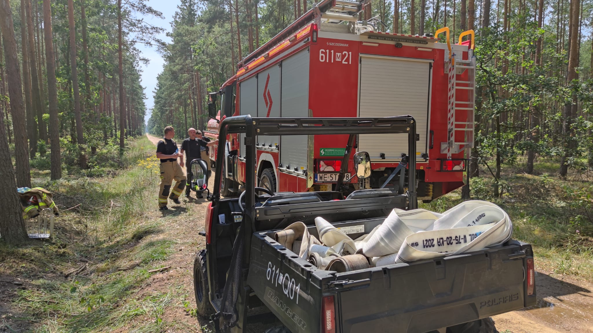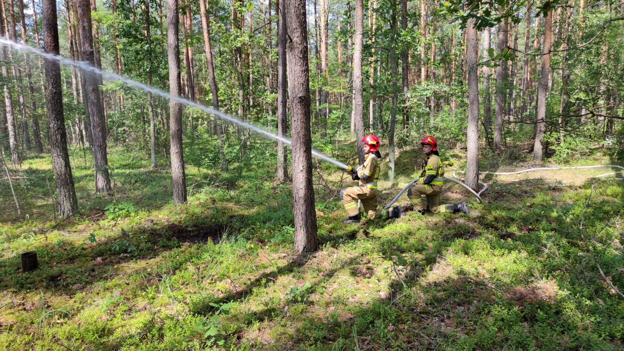 i Ochotniczej Straży pożarnej okazało się, że pali się ok. 1 ha lasu i niezbędne do działań są dodatkowe siły i środki. Do działań w czasie rzeczywistym dysponowano kolejne samochody pożarnicze. Z uwagi na duże zapotrzebowanie na wodę podjęto decyzję o wykonaniu punktu czerpania wody przy zbiorniku przeciwpożarowym oraz poprowadzeniu magistrali wężowej