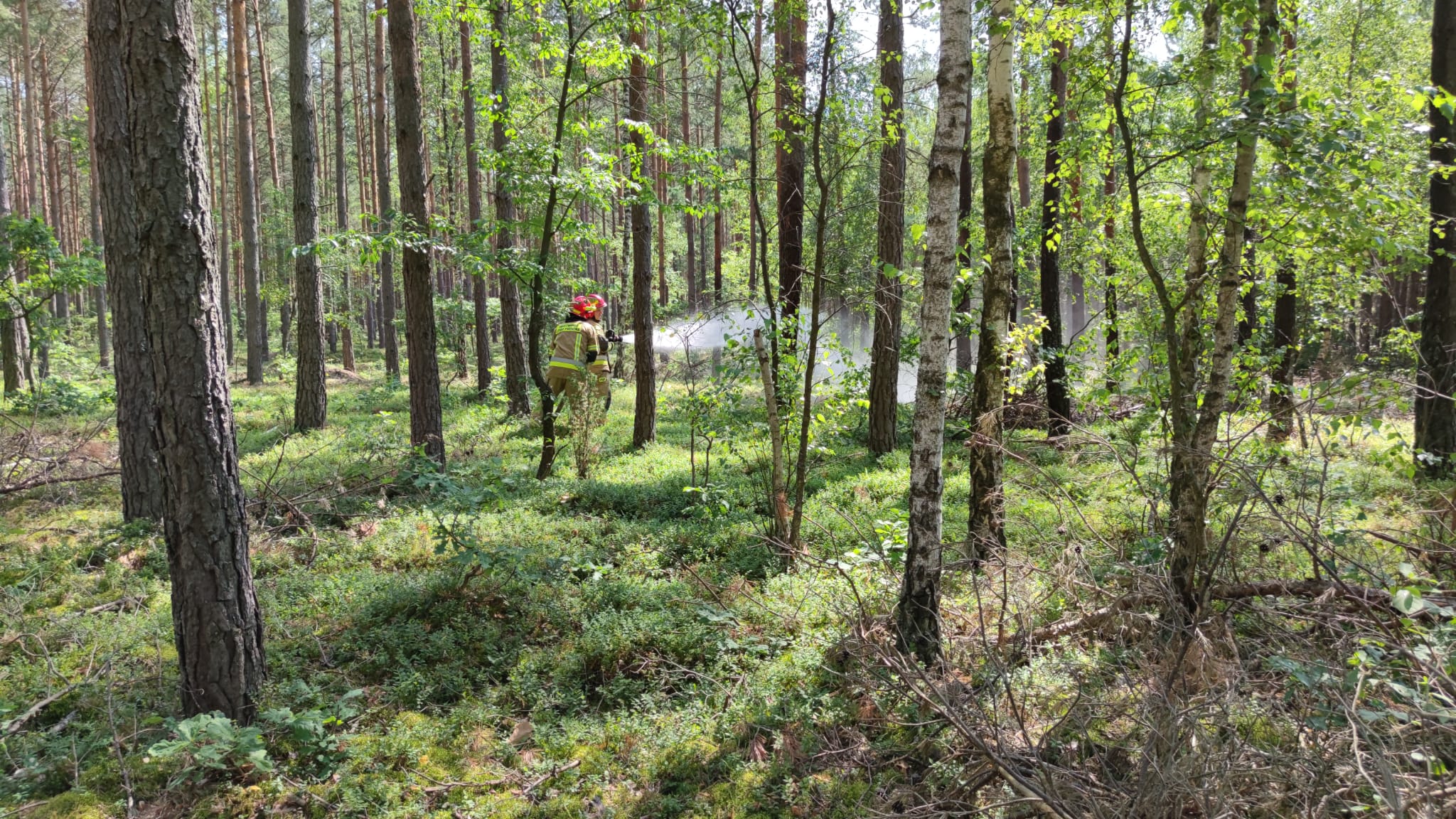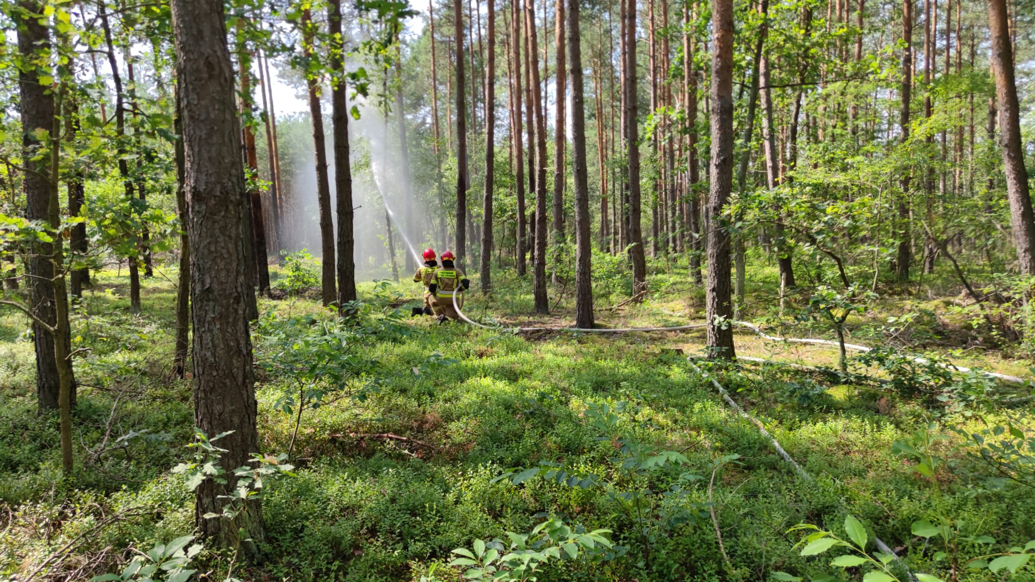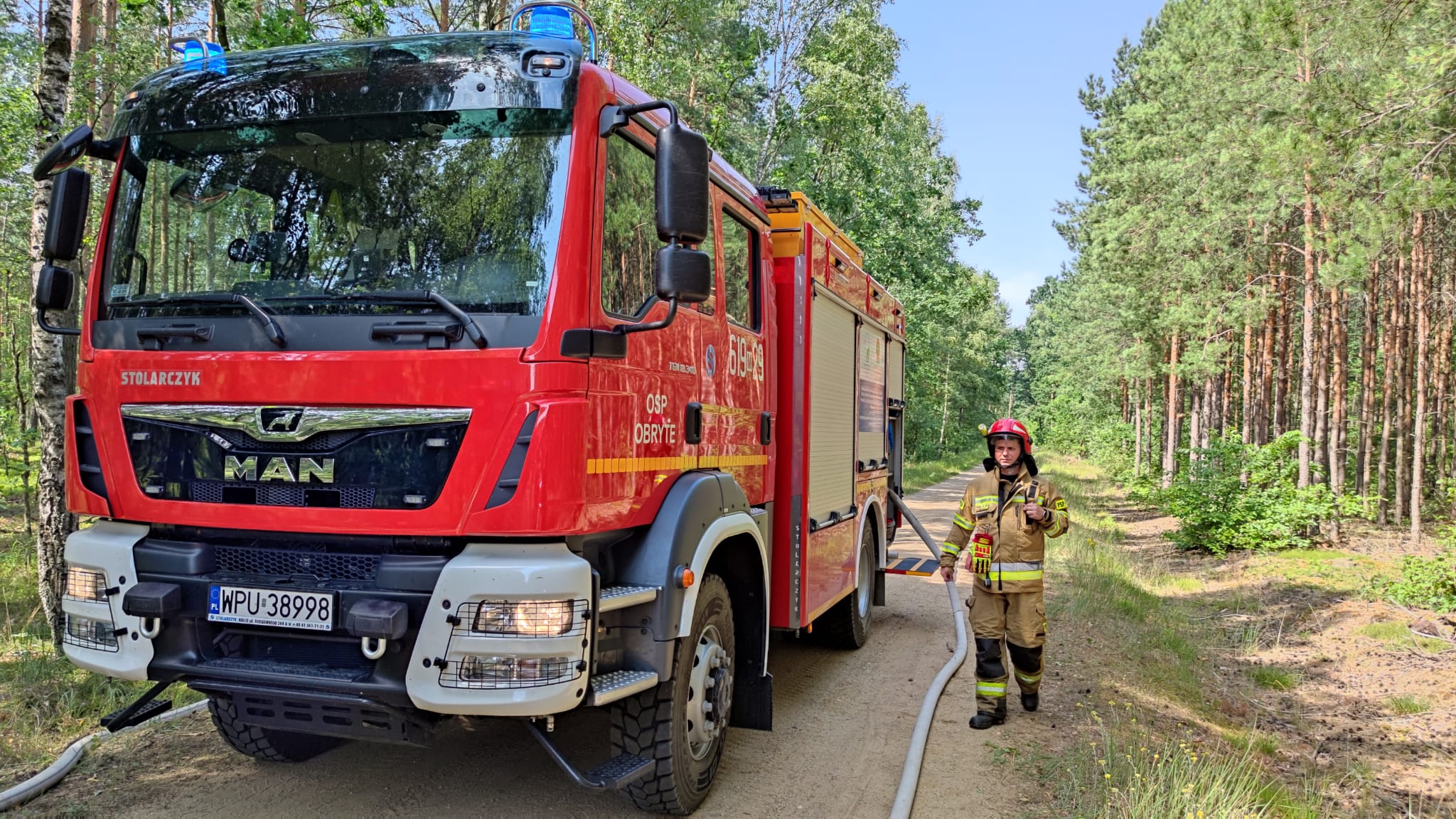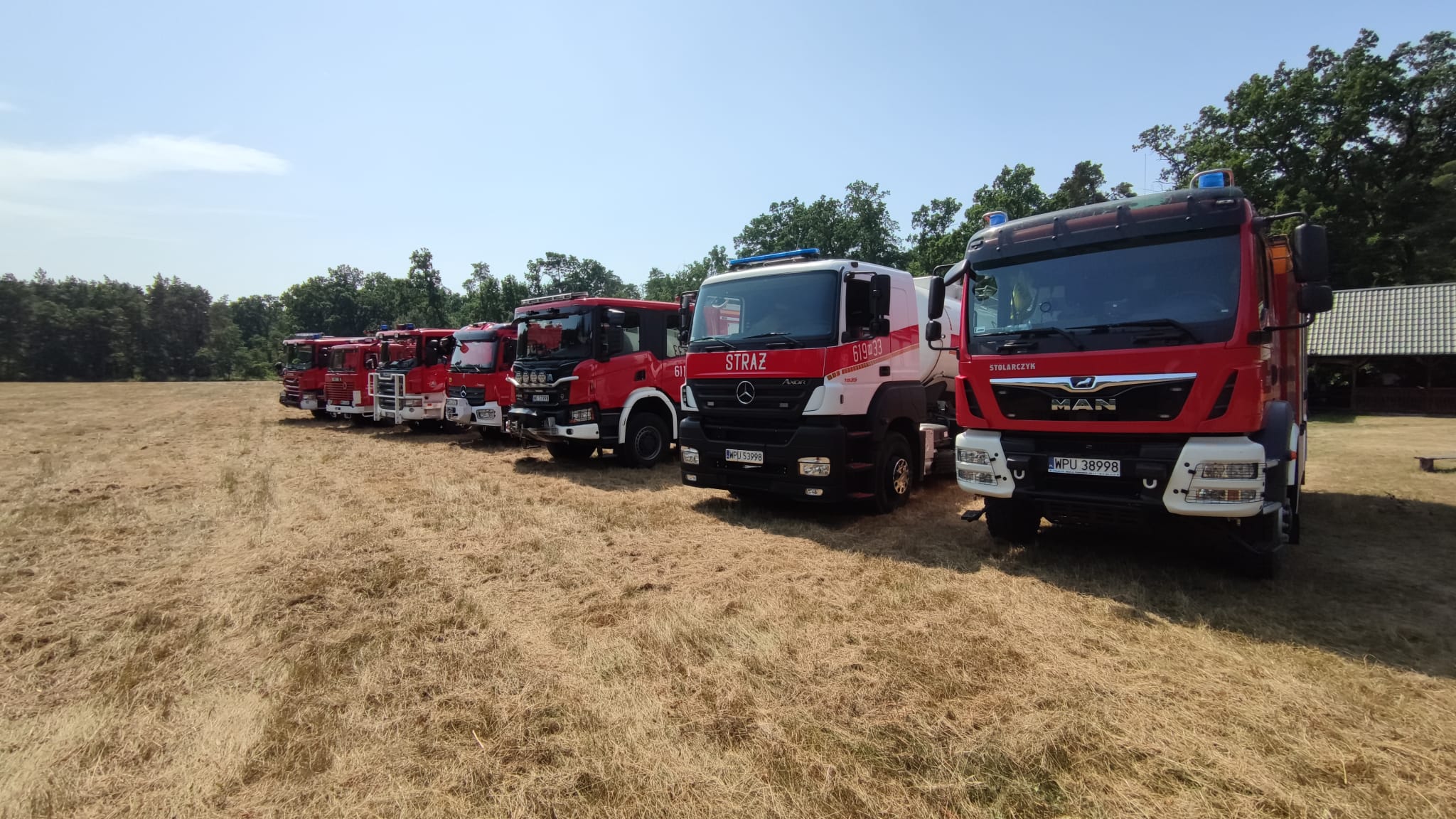 i Ochotniczej Straży pożarnej okazało się, że pali się ok. 1 ha lasu i niezbędne do działań są dodatkowe siły i środki. Do działań w czasie rzeczywistym dysponowano kolejne samochody pożarnicze. Z uwagi na duże zapotrzebowanie na wodę podjęto decyzję o wykonaniu punktu czerpania wody przy zbiorniku przeciwpożarowym oraz poprowadzeniu magistrali wężowej