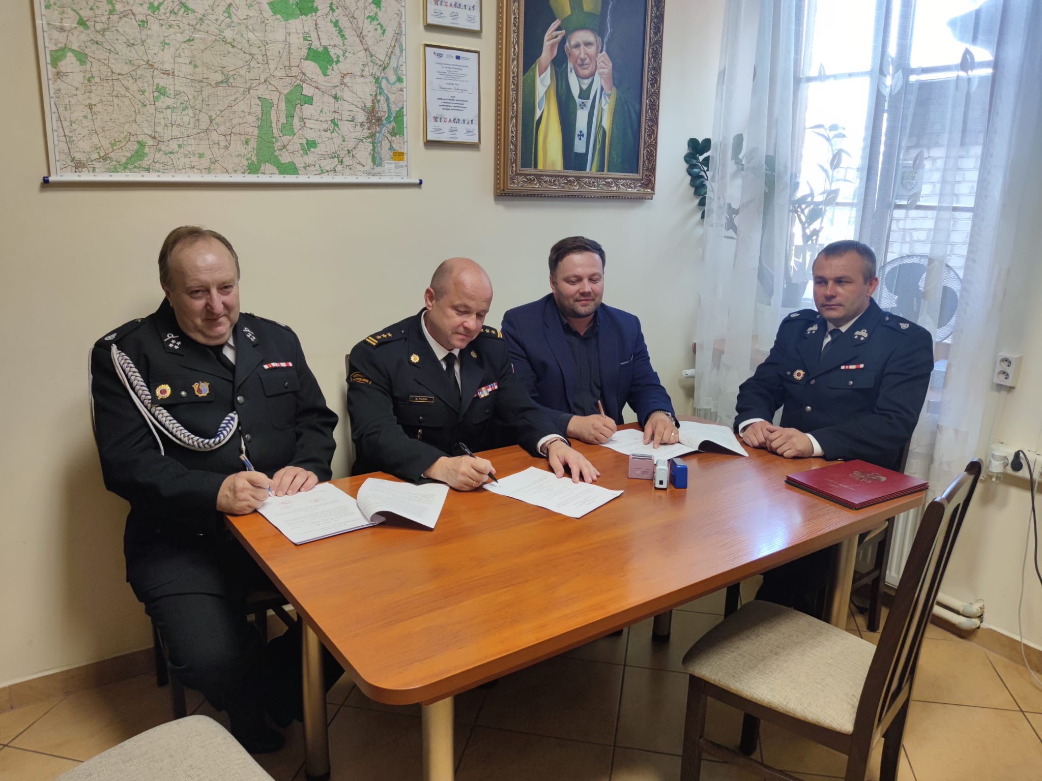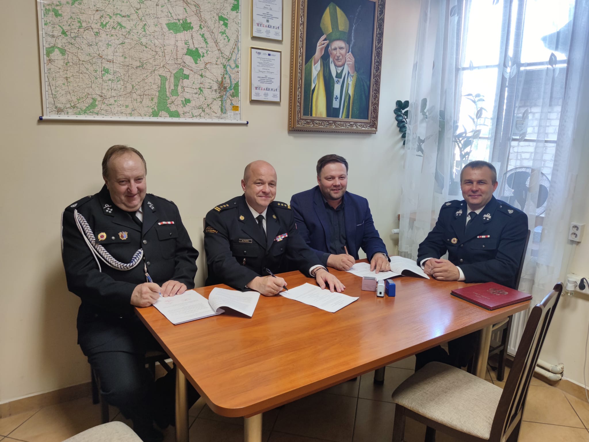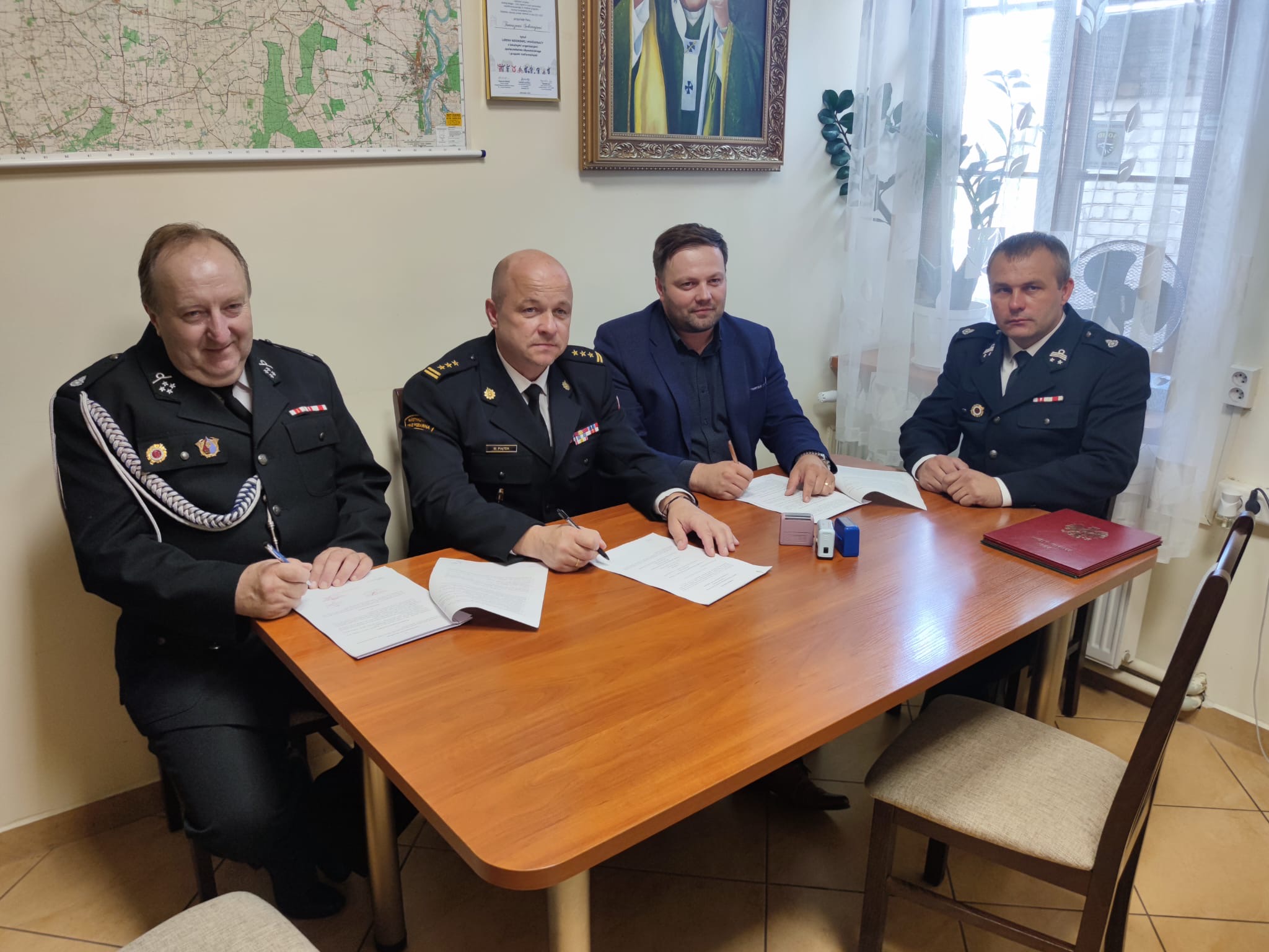 Dokument podpisali: Komendant Powiatowy PSP w Pułtusku st. bryg. Maciej Piątek, Wójt Gminy Gzy Tomasz Sobieraj oraz Prezes OSP Przewodowo – Majorat dh Krzysztof Sobczyński.