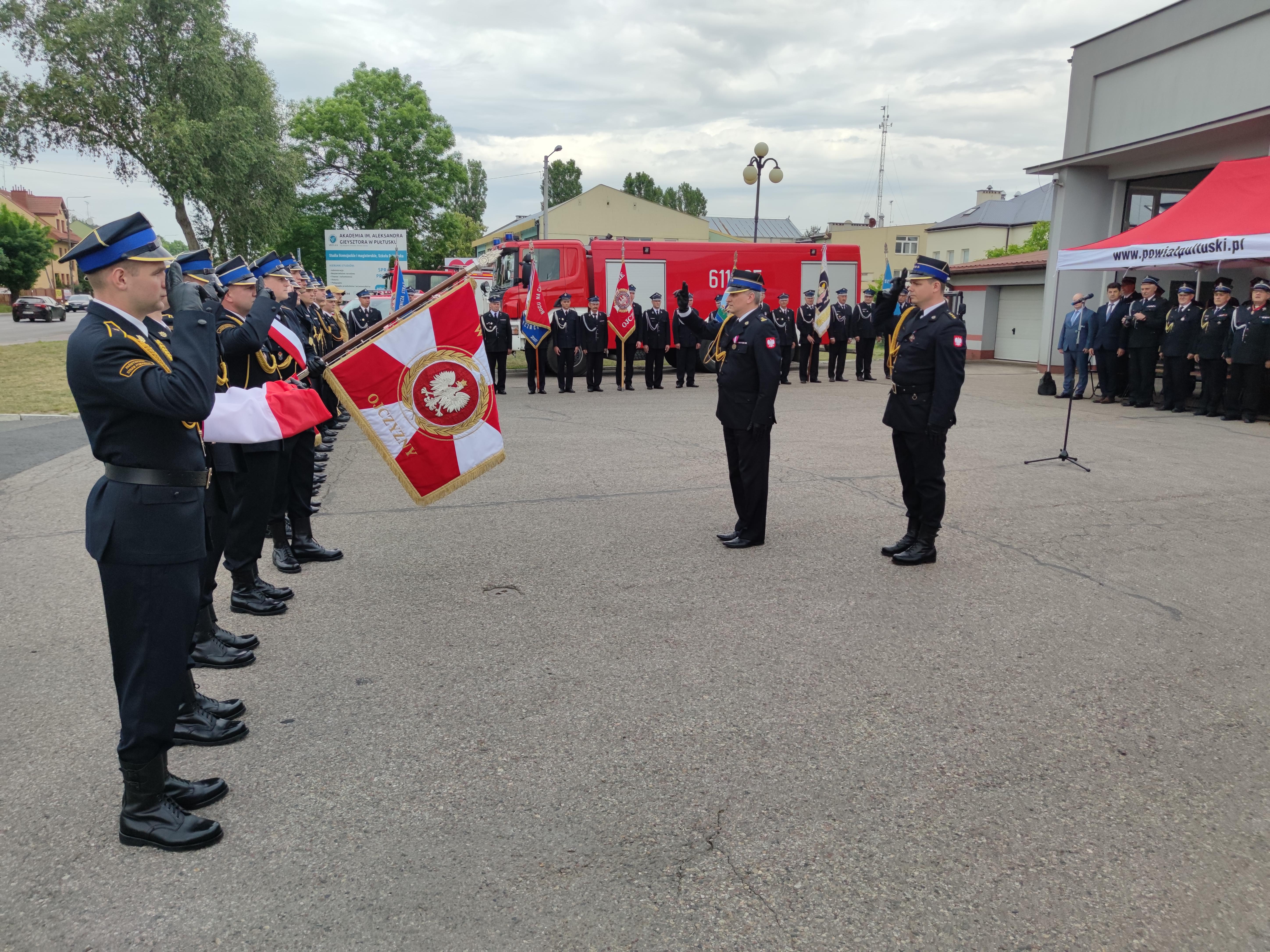 Obchody Powiatowego Dnia Strażaka zakończyły się odprowadzeniem sztandaru Komendy Powiatowej PSP w Pułtusku oraz meldunkiem o zakończeniu uroczystego apelu.