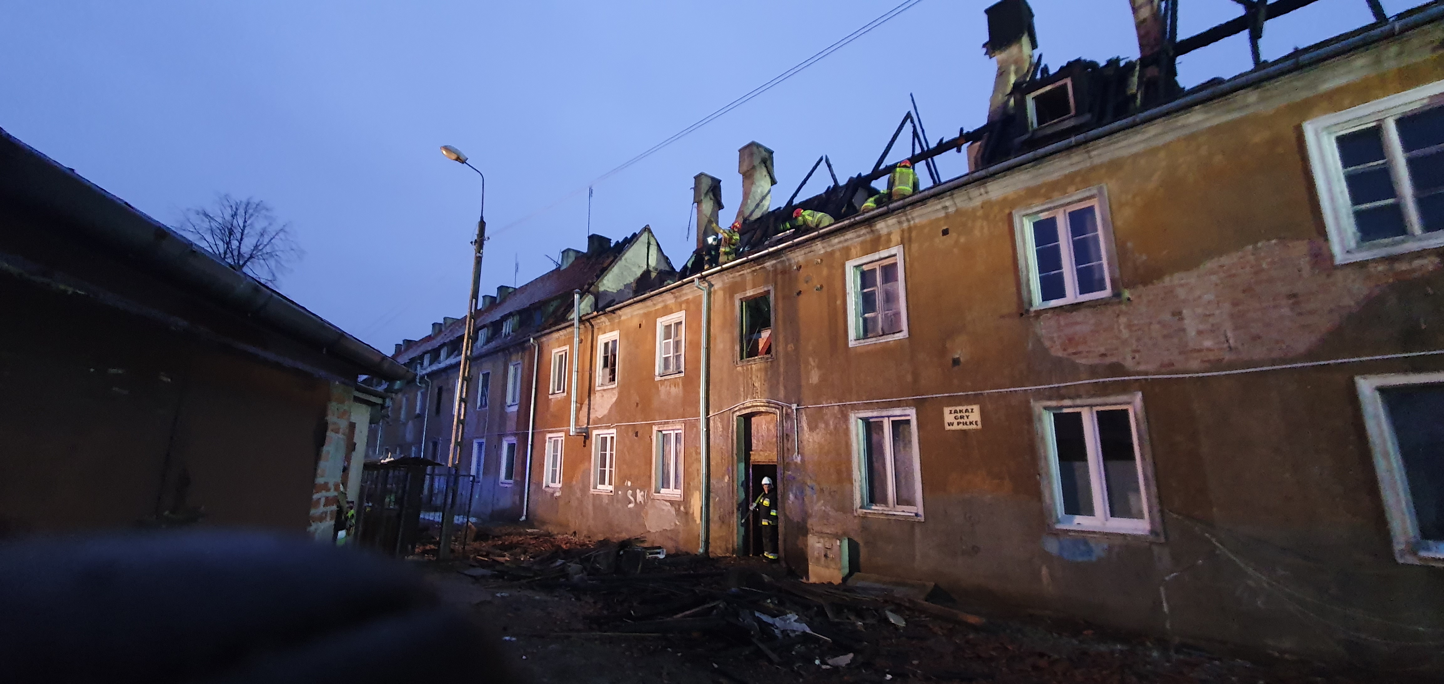 W dniu 29.12.2021 o godz. 2.58 do Dyżurnego Stanowiska Kierowania Komendanta Powiatowego w Pułtusku wpłynęło zgłoszenie o pożarze budynku wielorodzinnego na ul. Traugutta 26 w Pułtusku. Do działań w pierwszej fazie zadysponowano trzy zastępy z JRG w Pułtusku oraz jeden zastęp z OSP Głodowo. Po przybyciu na miejsce zdarzenia pierwszych zastępów zastano rozwinięty pożar poddasza na powierzchni ok. 250 m2. Z budynku strażacy ewakuowali 12 osób, które nie wymagały pomocy medycznej. Jedna osoba zamieszkująca budynek była podłączona do aparatu tlenowego. Kobieta została ewakuowana z budynku i przekazana przybyłemu na miejsce zdarzenia Zespołowi Ratownictwa Medycznego. Reszta mieszkańców opuściła budynek przed przybyciem jednostek straży pożarnej. Łącznie w wyniku zdarzenia budynek zmuszonych było opuścić 72 osoby, które otrzymały tymczasowe schronienie w pobliskim budynku szkoły.