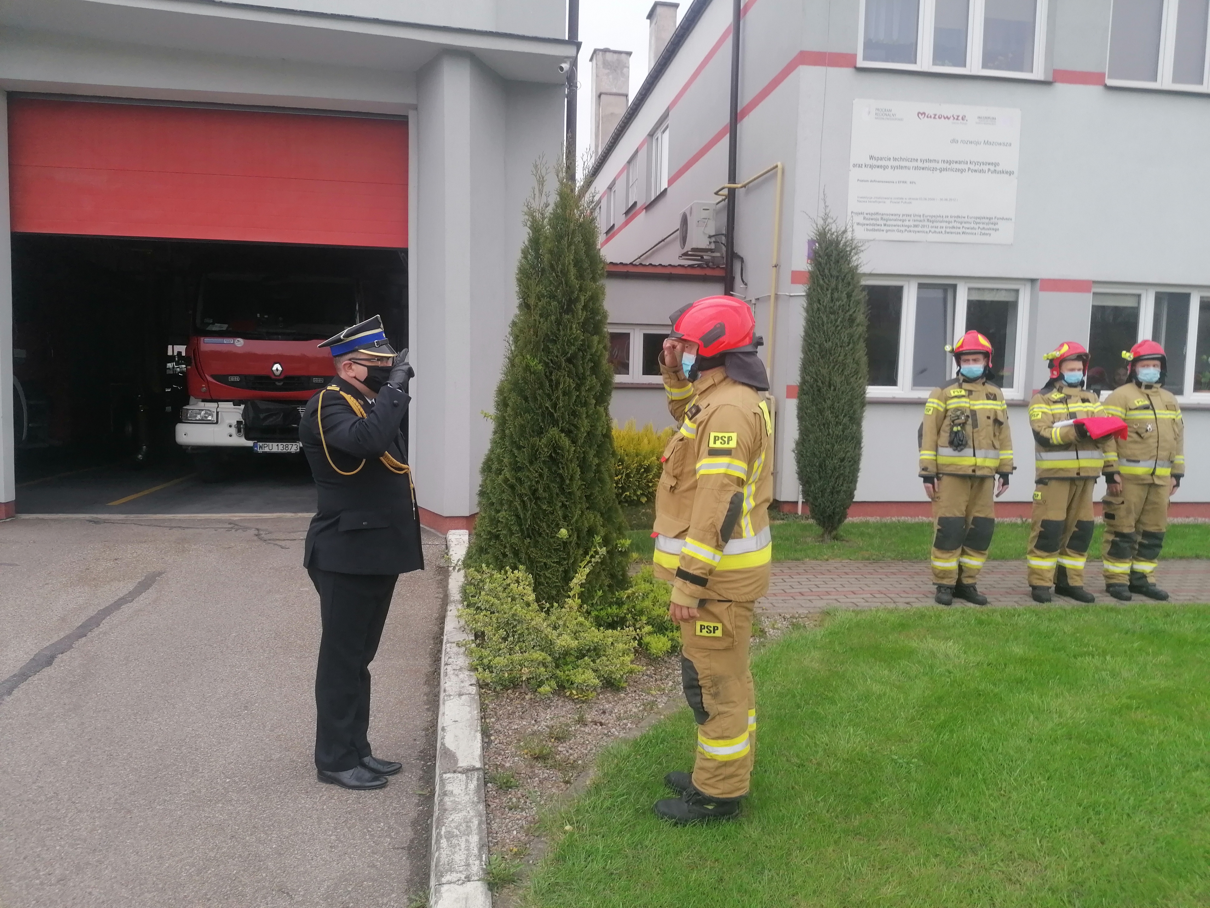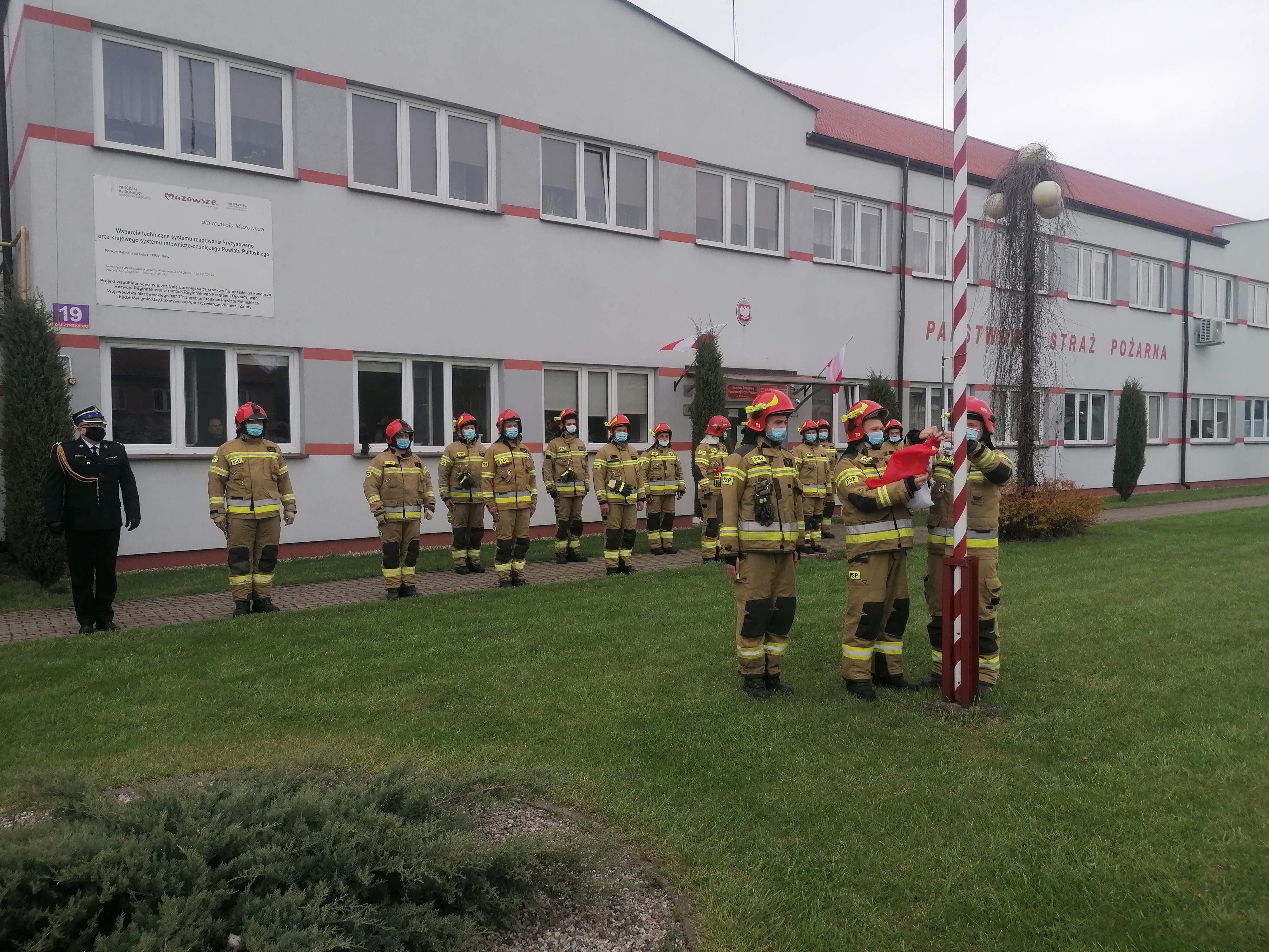 Uroczyste podniesienie flagi w Komendzie Powiatowej PSP w Pułtusku