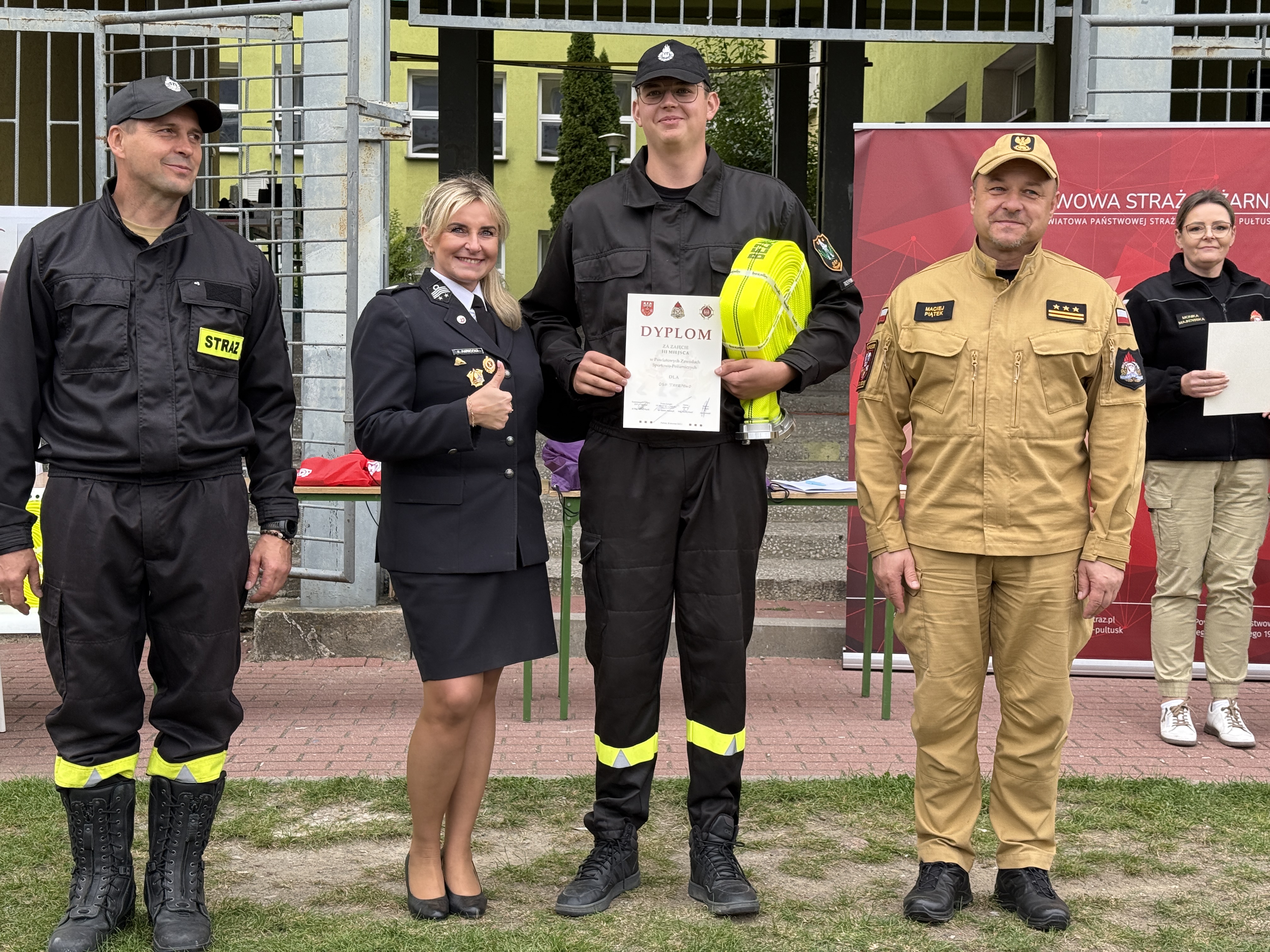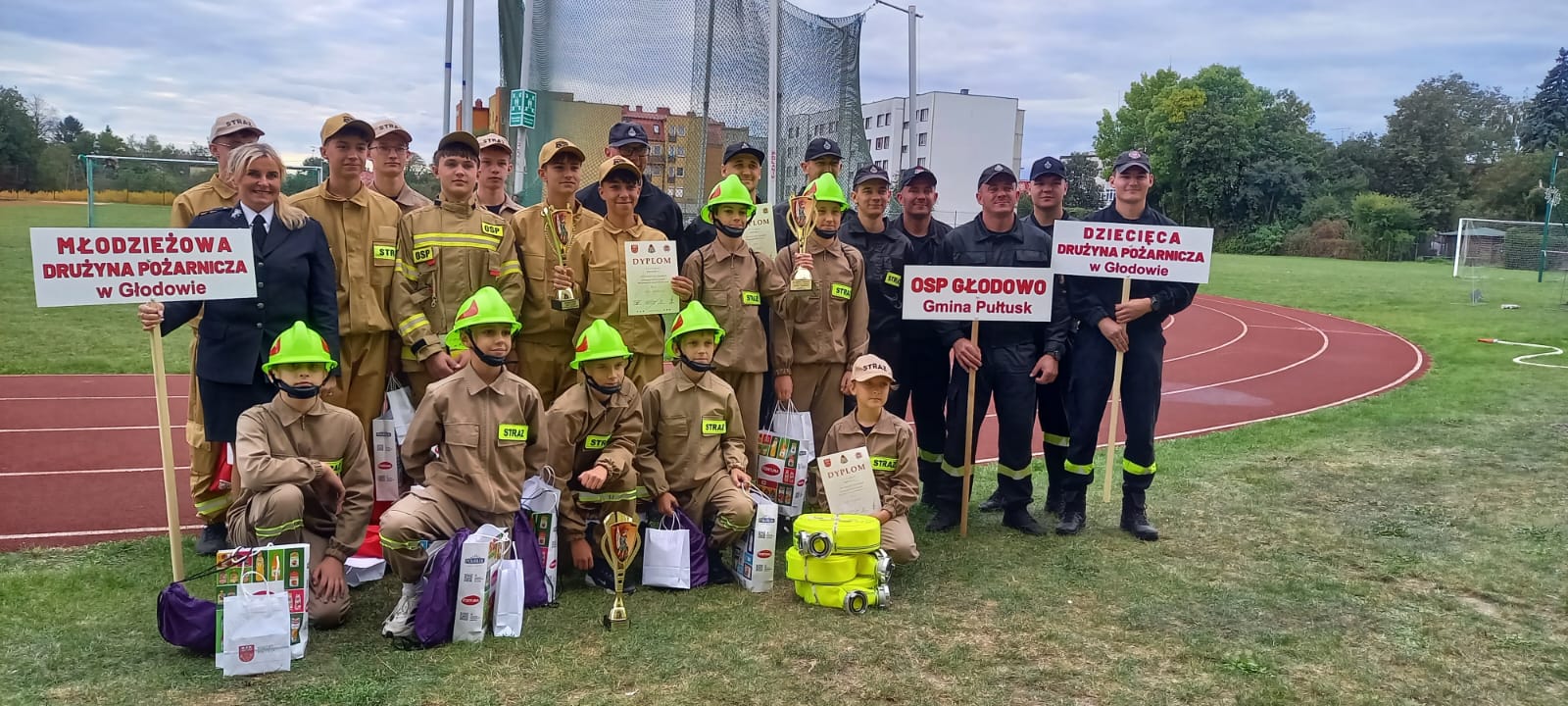 Szczególne podziękowania za ufundowanie nagród kierujemy do Starostwa Powiatowego w Pułtusku, dh Katarzyny Paprockiej – Dyrektora wykonawczego ZOW ZOSP RP województwa mazowieckiego, Grupie POLMLEK oraz firmie INSTALFIRE, które umiliły tegoroczne zawody. Dziękujemy również Dyrektorowi Szkoły Podstawowej nr 4, panu Krzysztofowi Łachmańskiemu za udostępnienie boiska na potrzeby zawodów.