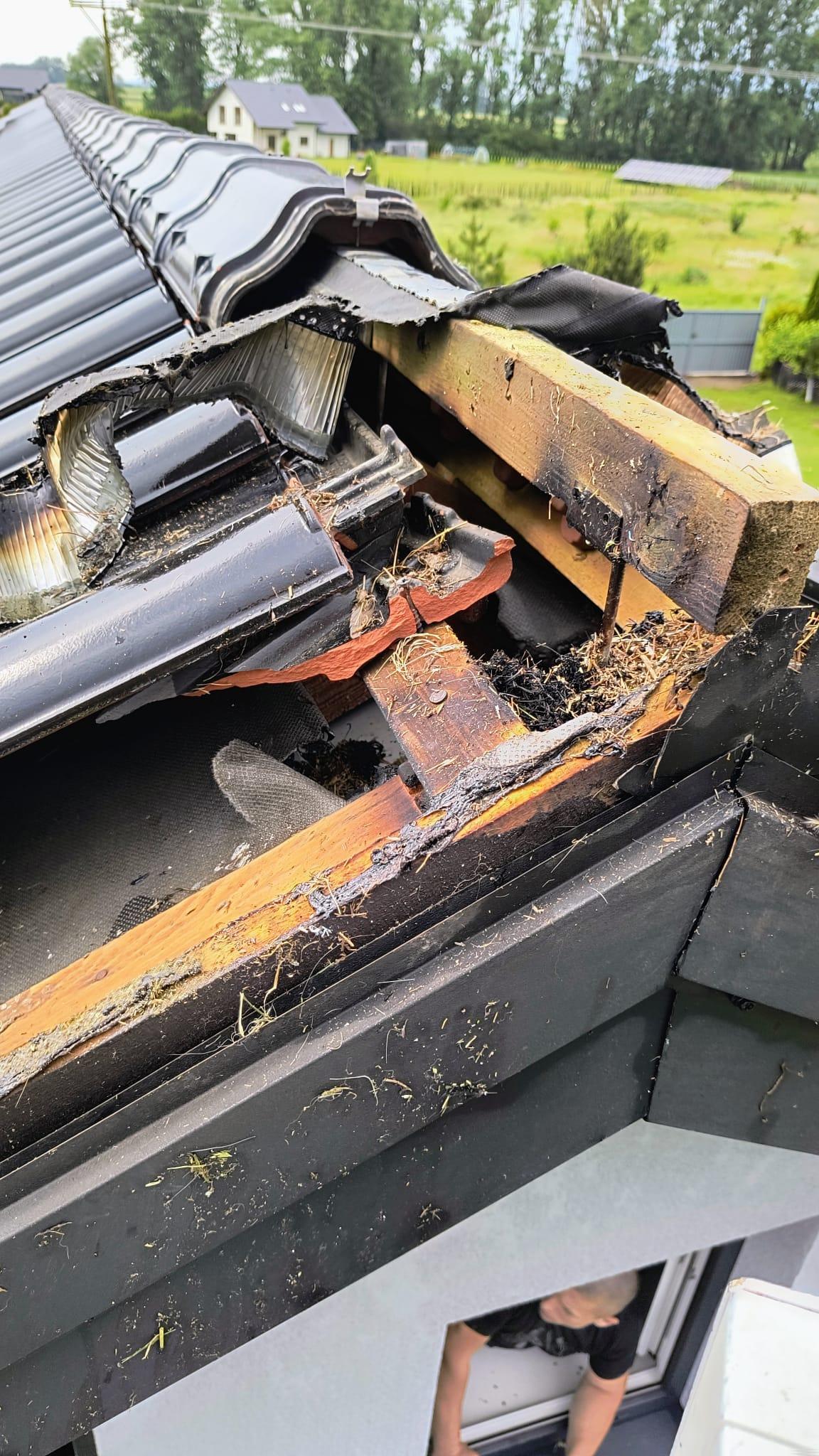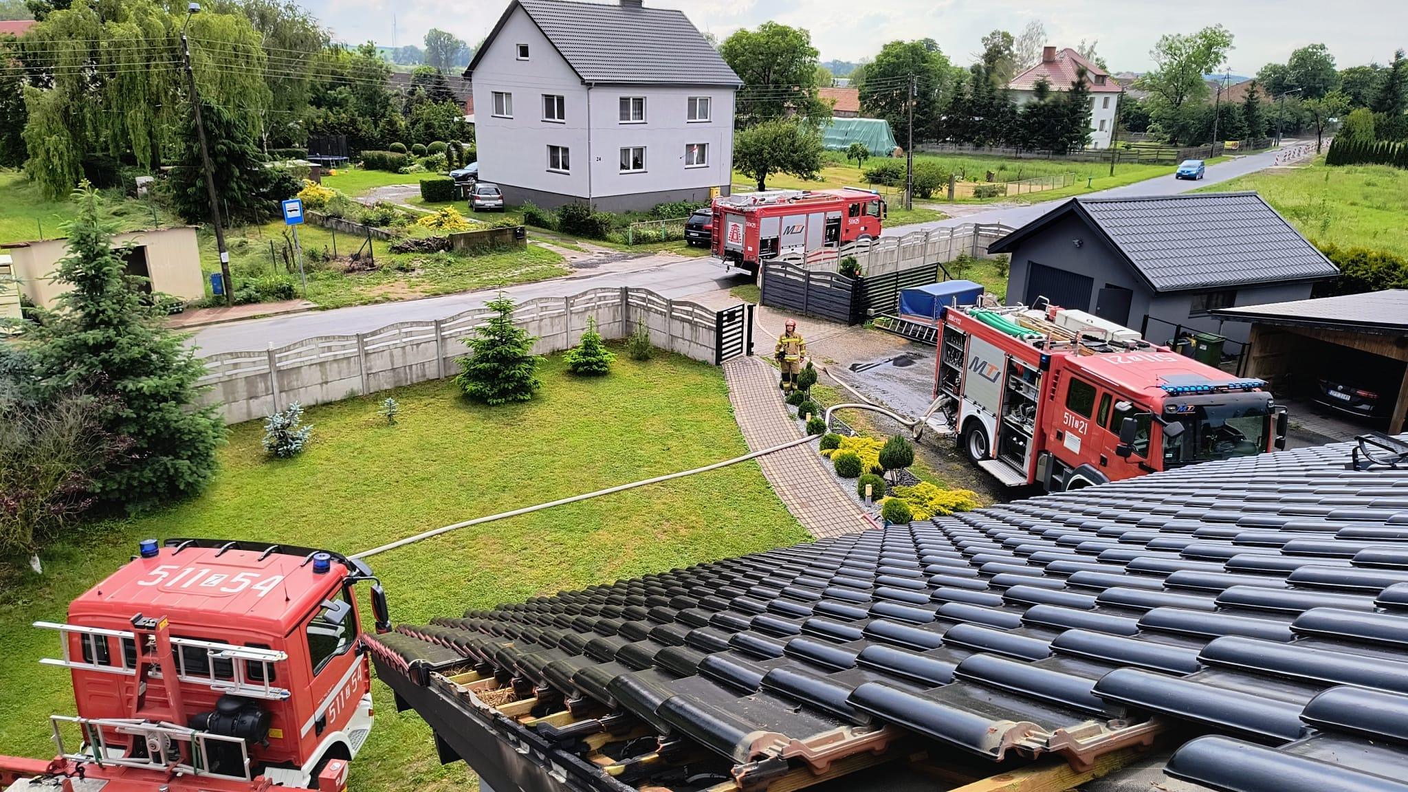 W poniedziałek 27 maja br. po godz. 15⁰⁰ do SKKP w Pyrzycach wpłynęło zgłoszenie o pożarze budynku mieszkalnego jednorodzinnego w miejscowości Rzepnowo. Okazało się, że w komin budynku uderzył piorun skutkiem czego było zapalenie się poddasza. Zabezpieczono miejsca zdarzenia, podano jeden prąd wody z drabiny wysuwanej dzięki czemu pożar został szybko opanowany i nie rozprzestrzenił się na dalszą część budynku. Po upewnieniu się że nie występują zarzewia ognia, zabezpieczono dach przy użyciu podnośnika SHD25.