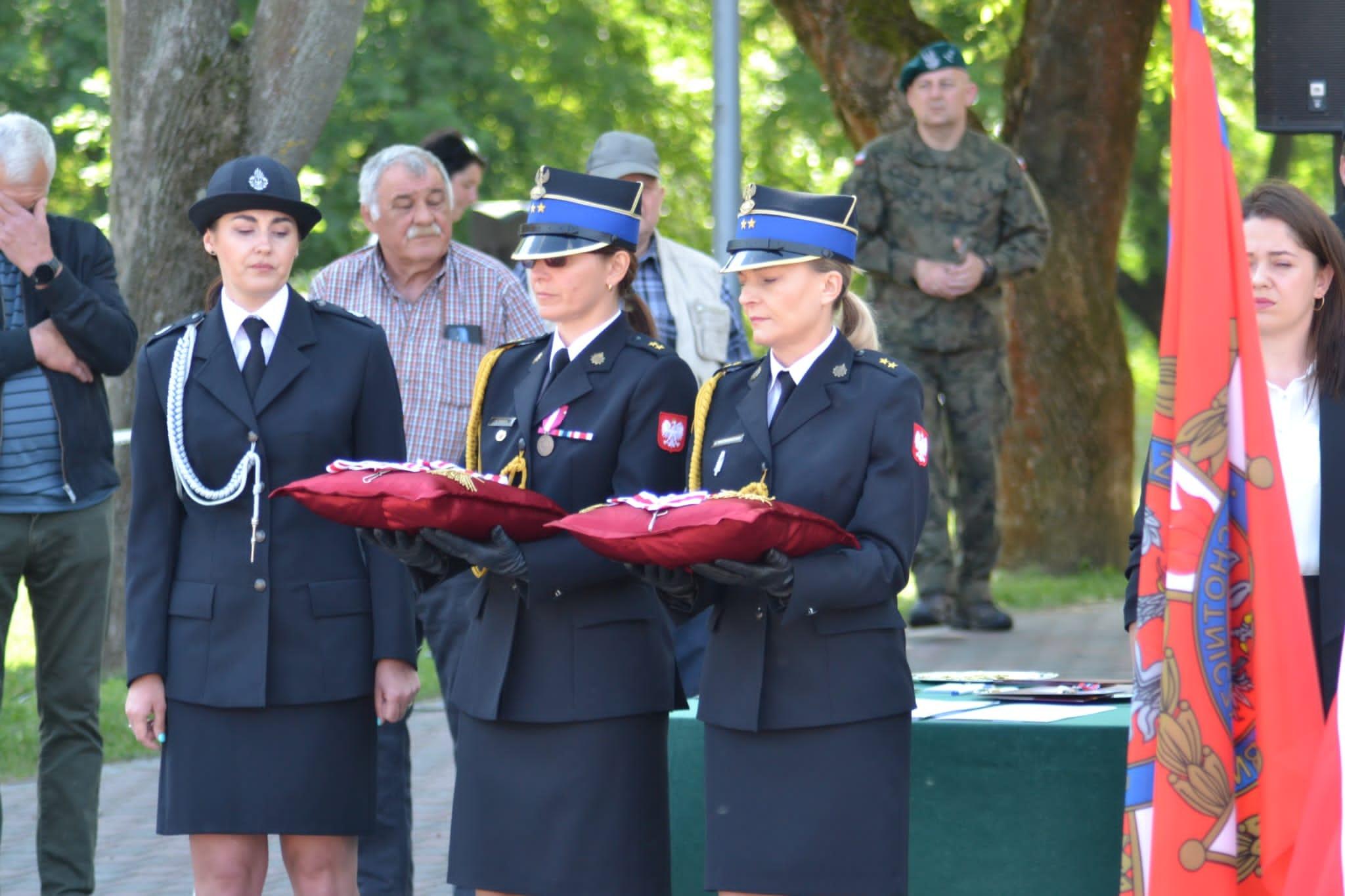 Wręczono także Odznakę Św. Floriana za zasługi dla społeczności lokalnej druhowi Januszowi Świercz. Brązowy Krzyż Św. Floriana otrzymała Starosta Ewa Gąsiorowska-Nawój.