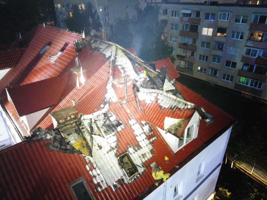 W wyniku pożaru częściowemu spaleniu uległ dach budynku oraz dwa mieszkania.