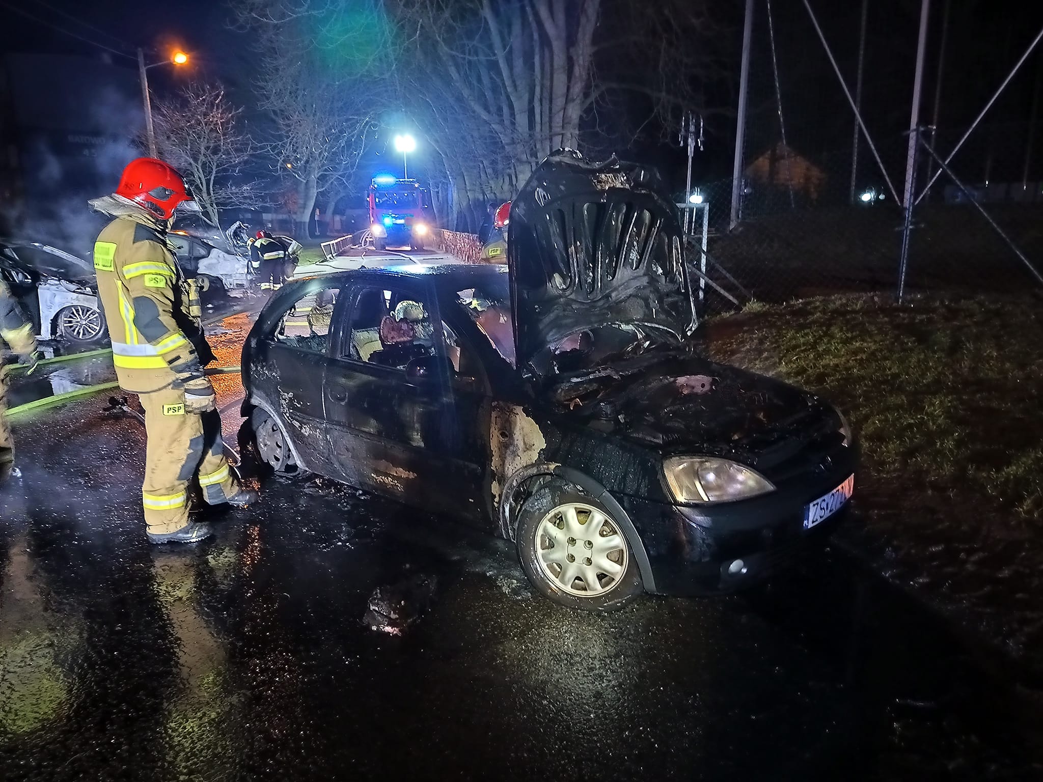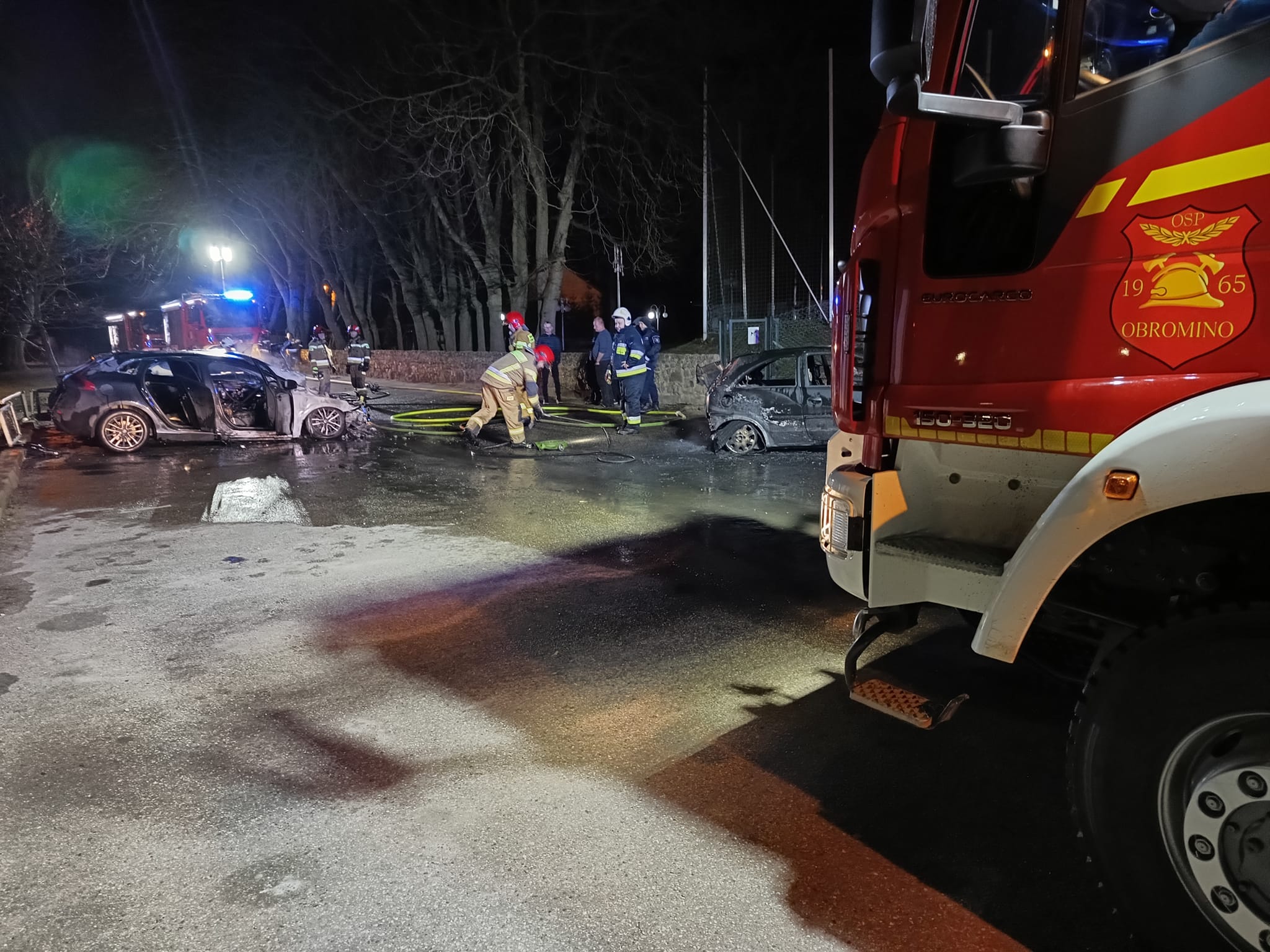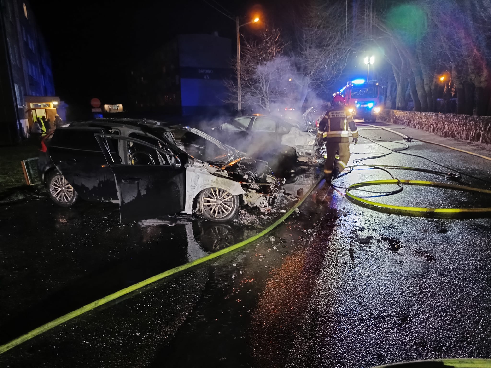 13.02.2024r. o godz. 22²⁴ dyżurny SKKP w Pyrzycach odebrał zgłoszenie o pożarze 2 samochodów osobowych w miejscowości Batowo. Po przybyciu na miejsce zdarzenia stwierdzono, że na parkingu palą się 3 samochody. Nasze działania polegały na zabezpieczeniu miejsca zdarzenia, podaniu 3 prądów wody w natarciu oraz jednego prądu piany gaśniczej.