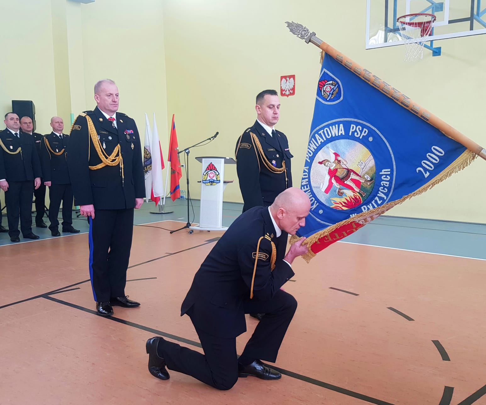 10 stycznia 2024 r. w siedzibie Komendy Powiatowej PSP w Pyrzycach odbyła się uroczystość pożegnania ze sztandarem Komendanta Powiatowego PSP przez mł. bryg. Roberta Dębczaka