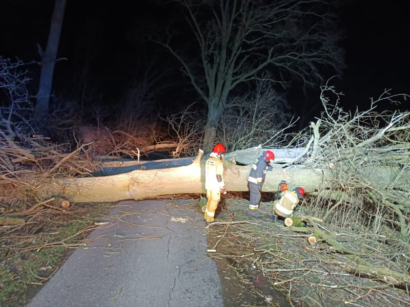 Pracowita noc i dzień zarówno Państwowej Straży Pożarnej jak i Ochotniczych Straży Pożarnych powiatu pyrzyckiego. Silne wiatry przechodzące w naszym rejonie połamały wiele drzew i narobiły dużo szkód. Od 18 do 19 lutego do godziny 10.00 odnotowano 65 zdarzeń. Z powodu braku prądu udostępniono agregat prądotwórczy mieszkańcom Pyrzyc, dla dzieci do zasilenia respiratorów. Rano doszło również do tragicznego pożaru mieszkania w budynku wielorodzinnym z ofiarą śmiertelną w miejscowości Barnim.