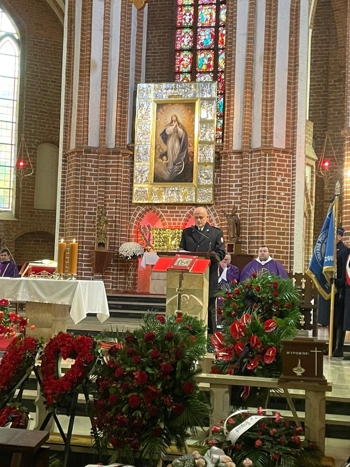 Na zakończenie mszy głos zabrał Komendant Powiatowy mł. bryg. Robert Dębczak, który przybliżył sylwetkę zmarłego kolegi.