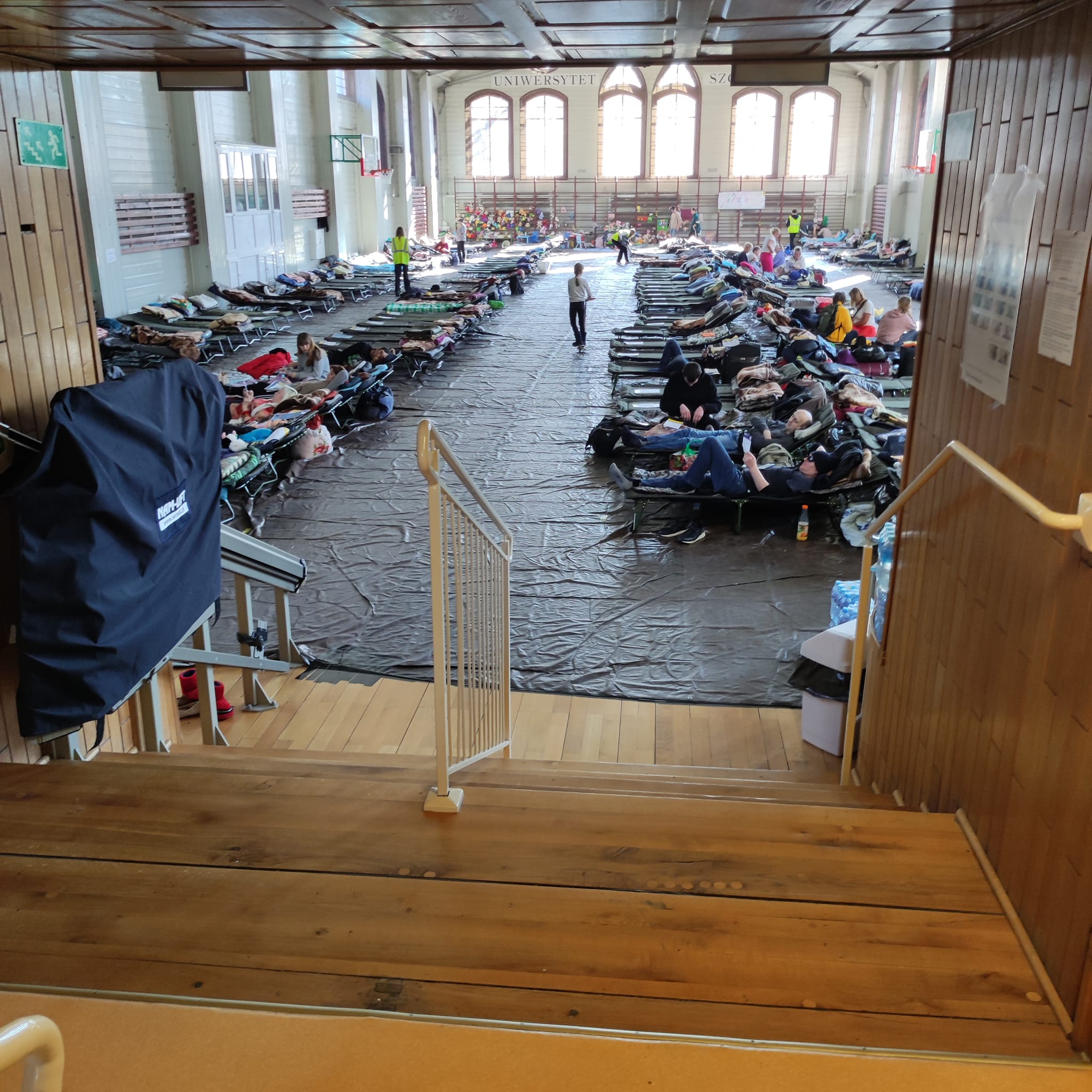W dniu dzisiejszym jeden z naszych funkcjonariuszy został oddelegowany do punktu noclegowego przy Punkcie Recepcyjnym w Szczecinie na ul. Sowińskiego. Strażak z uprawnieniami ratownika medycznego pomaga w zabezpieczeniu koordynacji działań związanych z uchodźcami.
