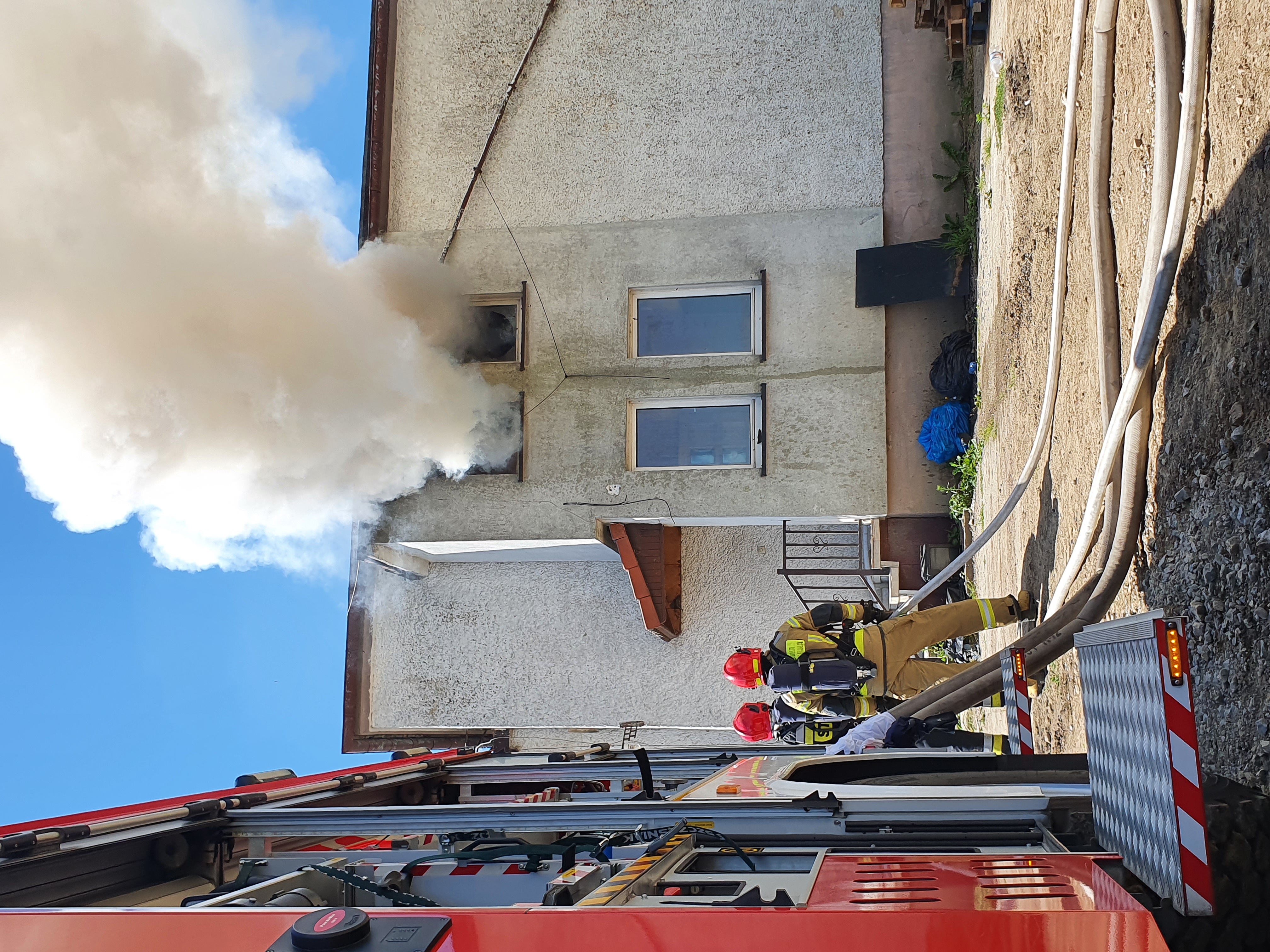 W dniach 6 – 9 lipca raciborscy strażacy mieli okazję wykorzystać do ćwiczeń przewidziany do rozbiórki budynek mieszkalny przy ul. Cieszyńskiej. Zrealizowano łącznie osiem scenariuszy pożaru wewnątrz budynku. Trenowano koordynację działań pomiędzy rotami, stosowanie „zmiękczania” pożaru z zewnątrz i środka budynku, wykorzystanie wentylacji nadciśnieniowej podczas natarcia na pożar i stosowania różnych technik operowania prądem gaśniczym. Analizowano również rozkład temperatur wokół spalanego drewna i gazach pożarowych.