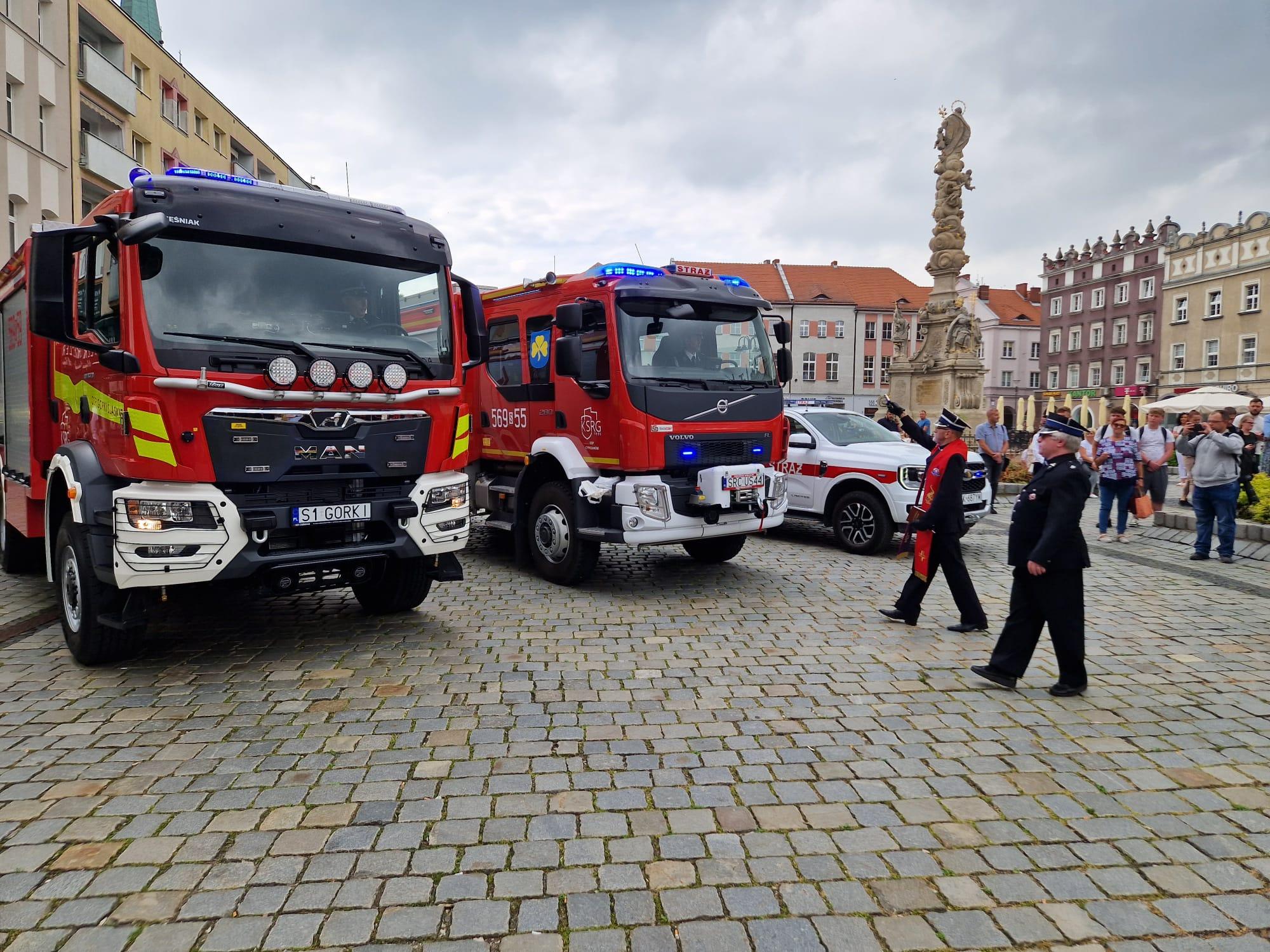 Podczas uroczystości przedstawiciele duchowieństwa dokonali poświęcenia nowych samochodów będących na wyposażeniu KP PSP w Raciborzu, OSP w Górkach Śląskich i OSP w Cyprzanowie.