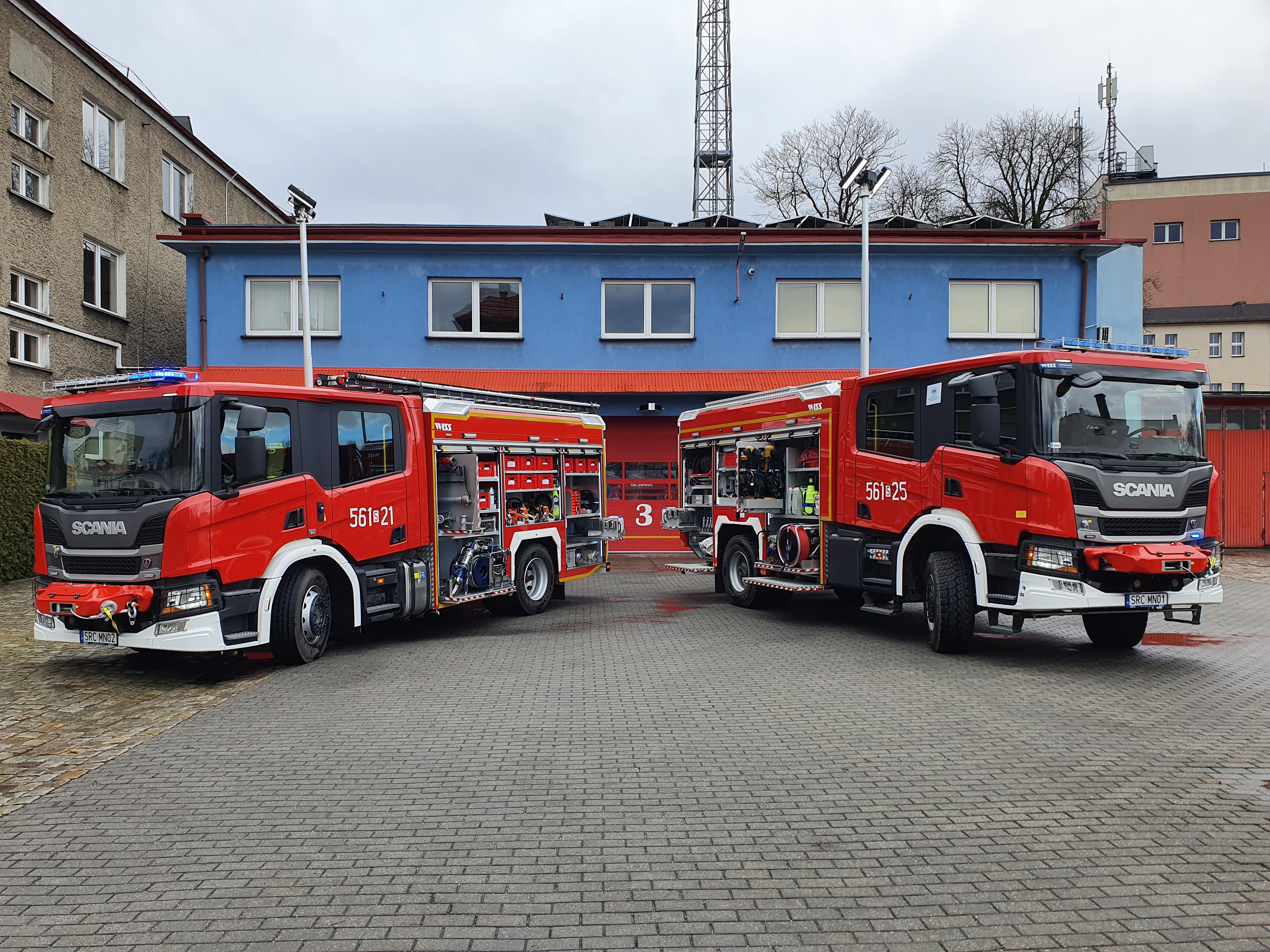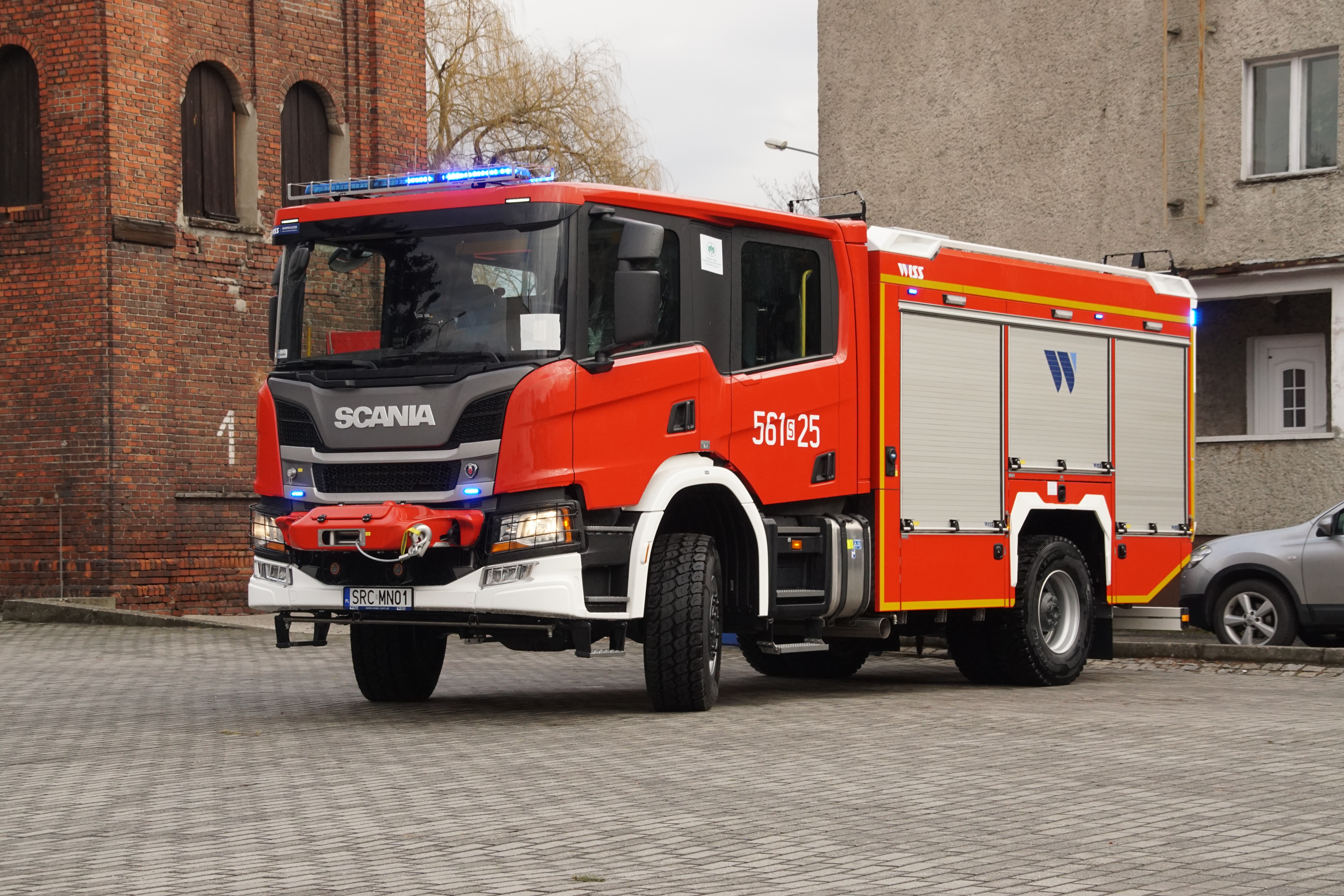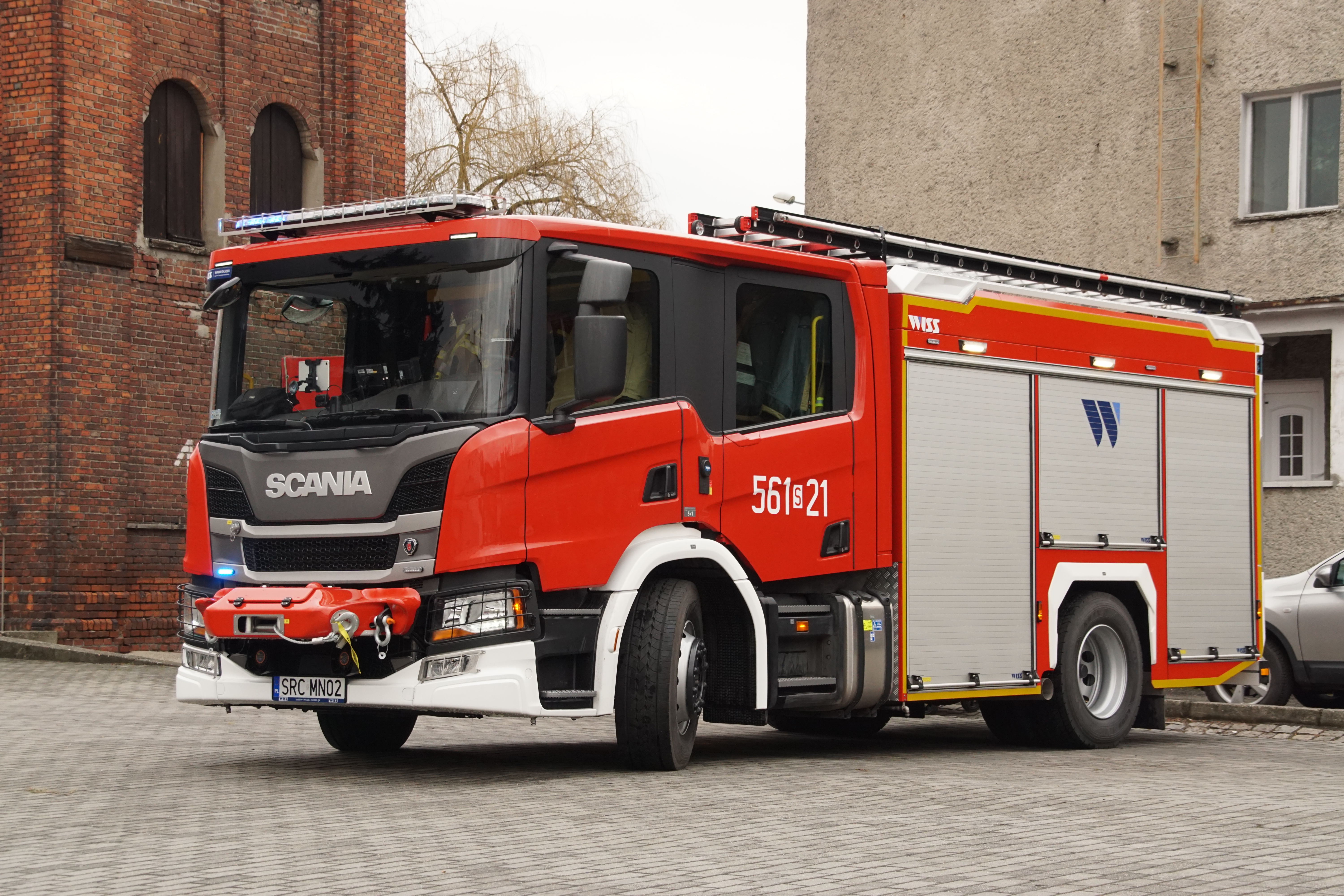 - Scania P410 GCBA 5/38/4,6 - napęd 4×4 z silnikiem o mocy 410 KM, zbiornik wody o pojemności 5000 litrów, zbiornik środka pianotwórczego 500 l, działkiem wodno-pianowym i autopompą o wydajności min. 3800 l/min.