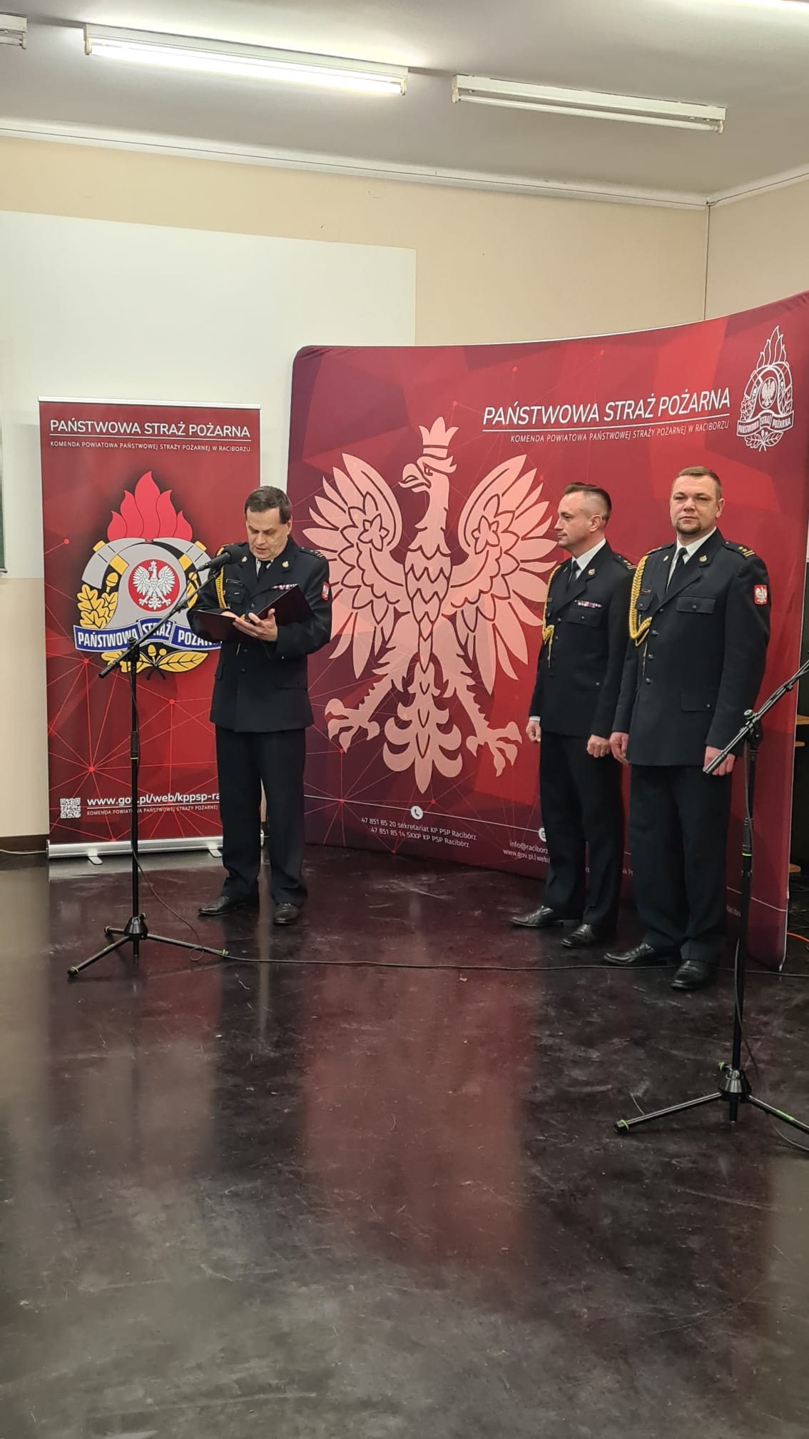 W dniu 5 stycznia 2023 r. w Komendzie Powiatowej PSP w Raciborzu miała miejsce uroczysta zbiórka z okazji przejścia na zaopatrzenie emerytalne bryg. Andrzeja Charuka, Naczelnika Wydziału Operacyjno – Szkoleniowego. Starosta Raciborski Grzegorz Swoboda wraz z pracownikami Powiatowego Centrum Zarządzania Kryzysowego, Komendant Powiatowy PSP bryg. Jarosław Ceglarek, funkcjonariusze oraz koledzy i koleżanki z Komendy Powiatowej PSP w Raciborzu, Prezesi i Komendanci Gminni OSP wyrazili słowa serdecznego podziękowania za wszystkie lata współpracy, oddania i zaangażowania w ratowanie ludzkiego życia, zdrowia i mienia oraz działania na rzecz ochrony przeciwpożarowej w powiecie raciborskim. Jednocześnie życząc dużo zdrowia i wszelkiej pomyślności.