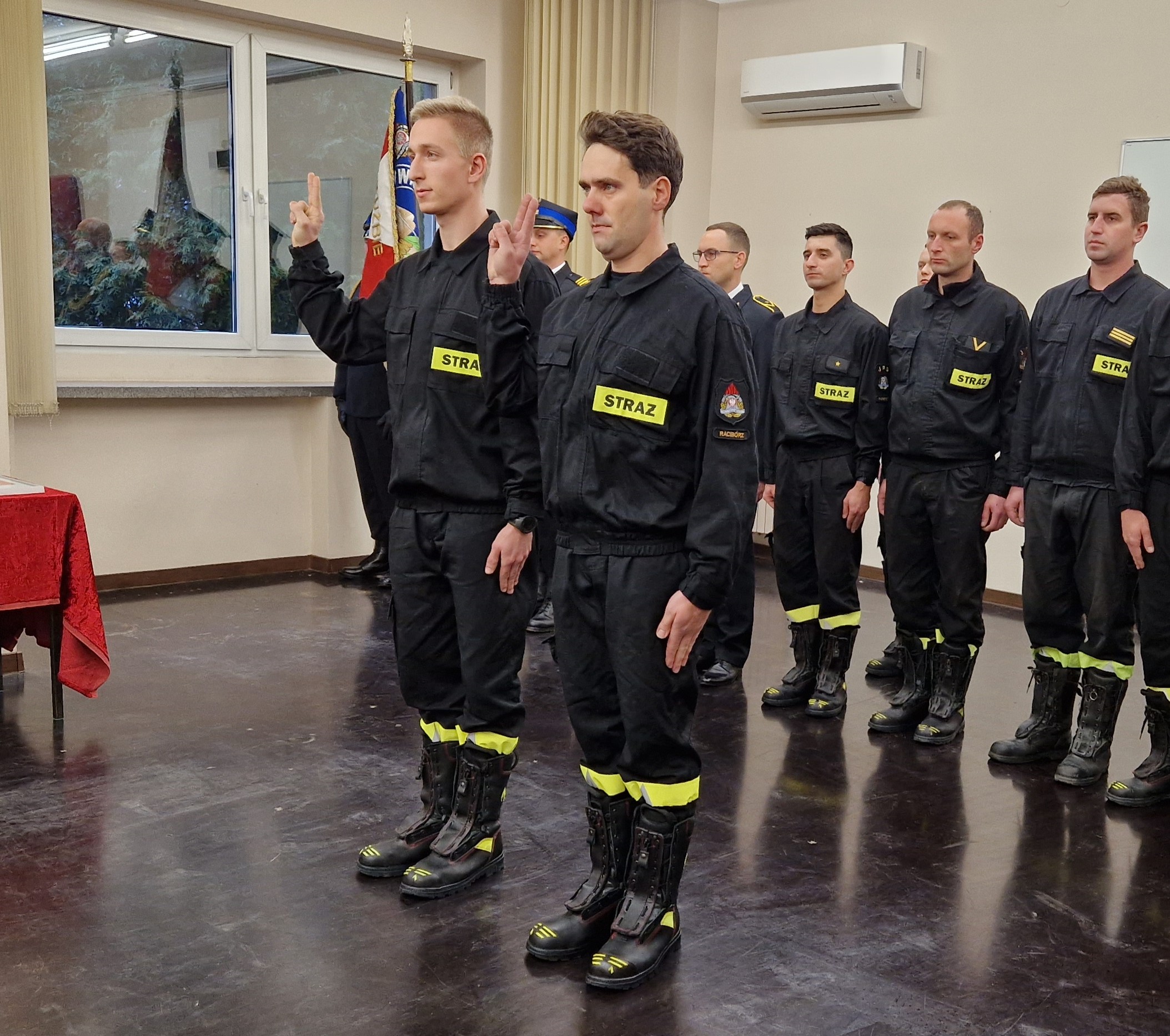 Dnia 14 grudnia 2023 roku w siedzibie Komendy Powiatowej Państwowej Straży Pożarnej w Raciborzu odbyło się uroczyste ślubowanie dwóch nowych funkcjonariuszy przyjętych do służby w Państwowej Straży Pożarnej.