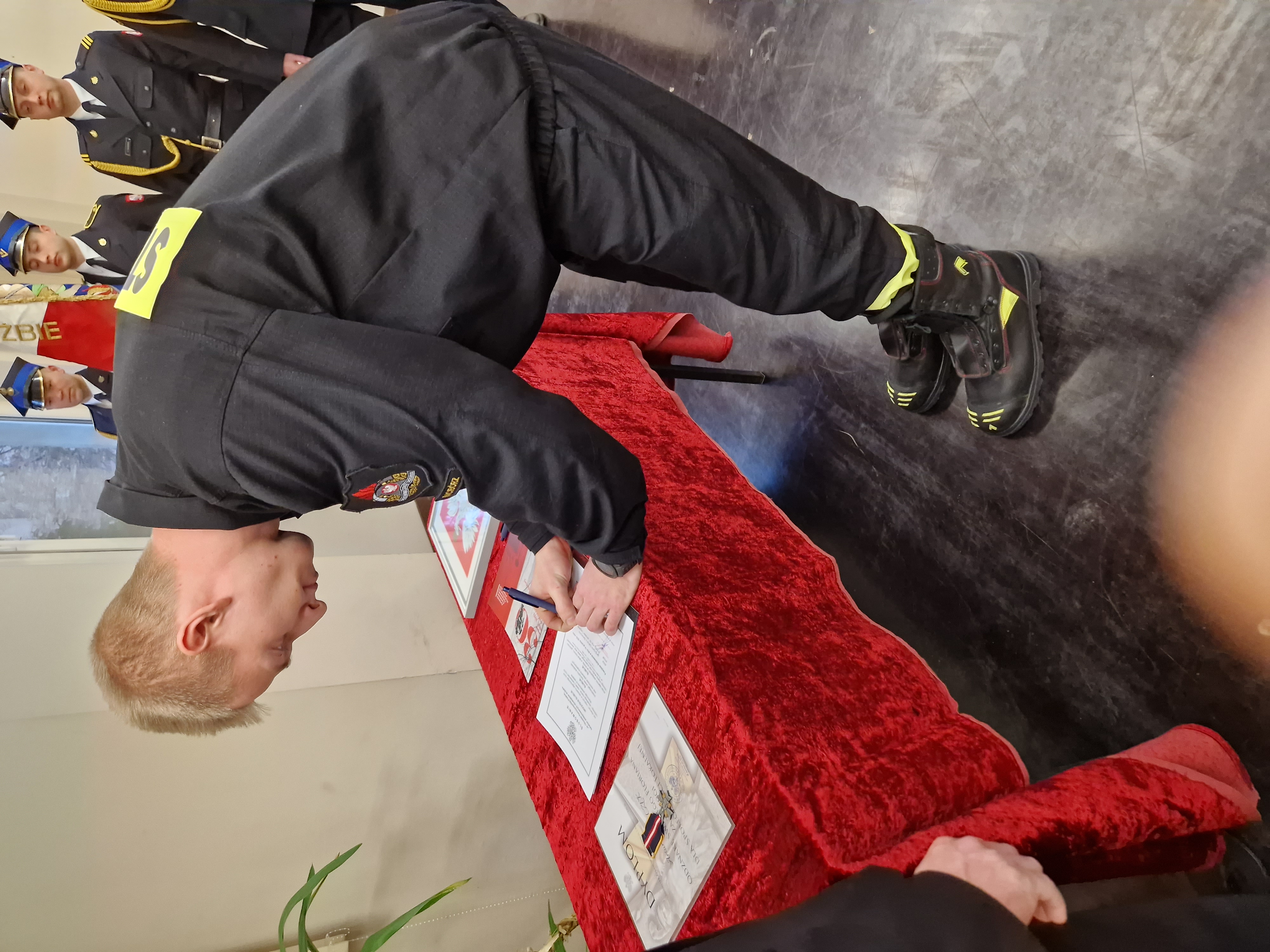 Nowi strażacy złożyli podpisy pod aktami ślubowania, pieczętując ten ważny moment w karierze zawodowej.
